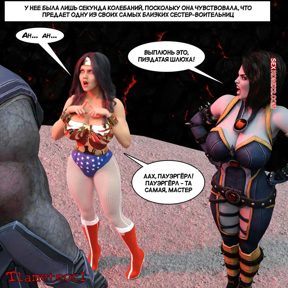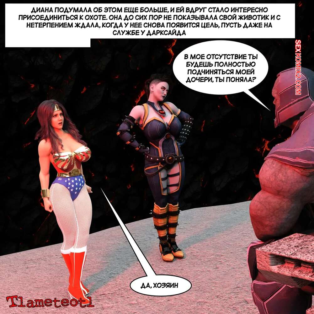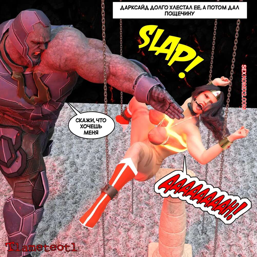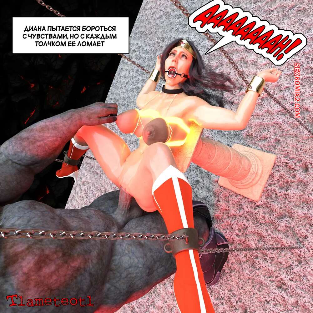 Порно комикс DC. Гарем правосудия. Часть 1. Harem of Justice. Powergirl. Tlameteotl Дарксайд схватил горячую красотку Чудо Женщину и решил насладиться шикарным телом девушки. Он выебал ее во все дырочки, после чего оставил ее своей помощнице для веселья.