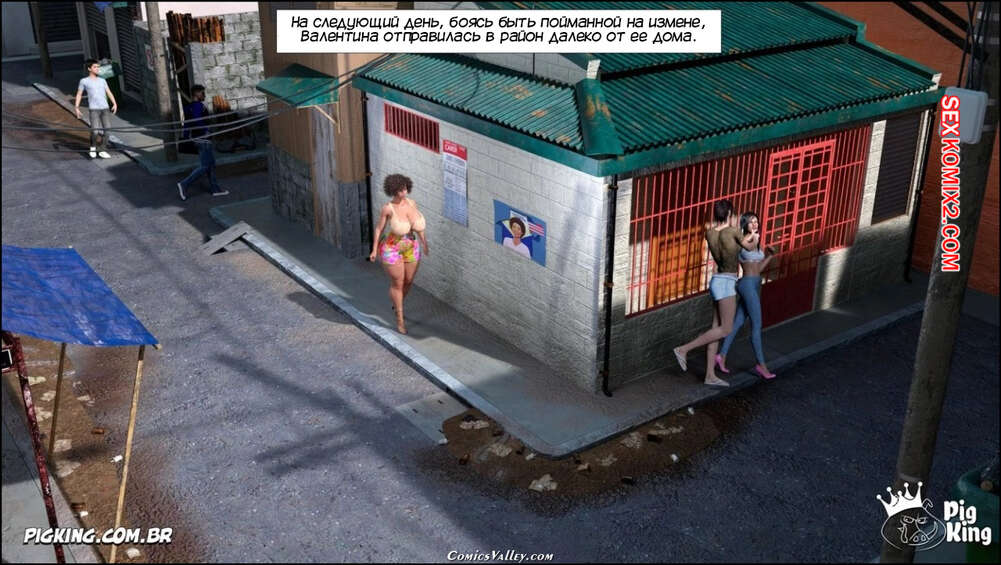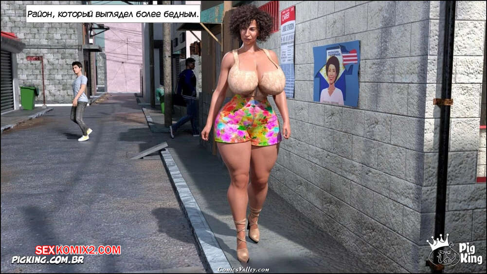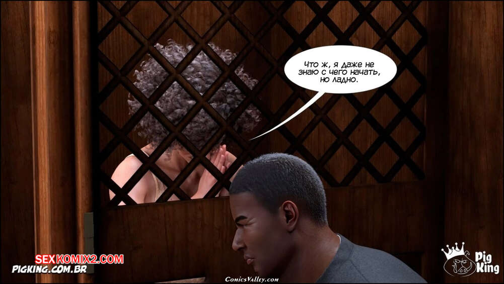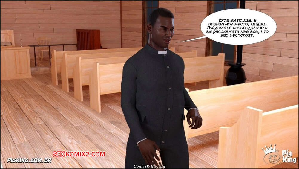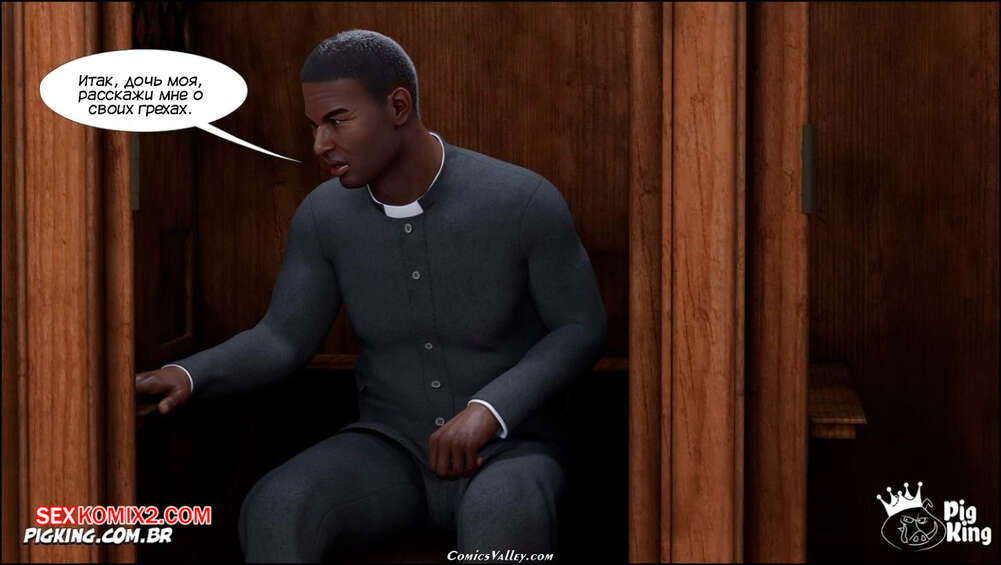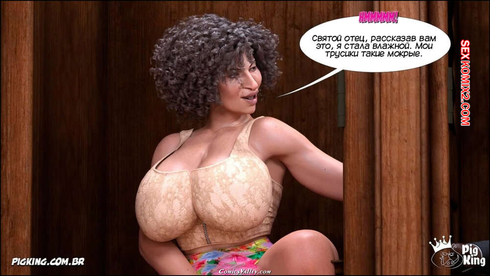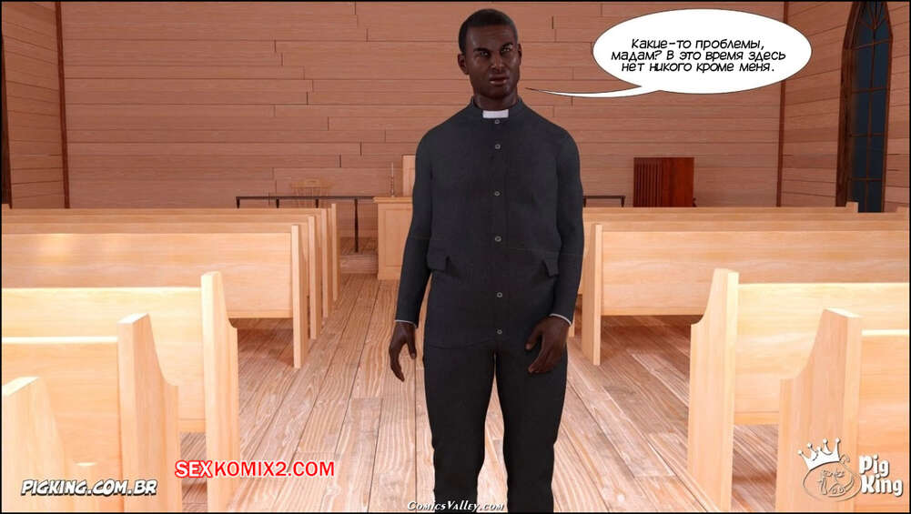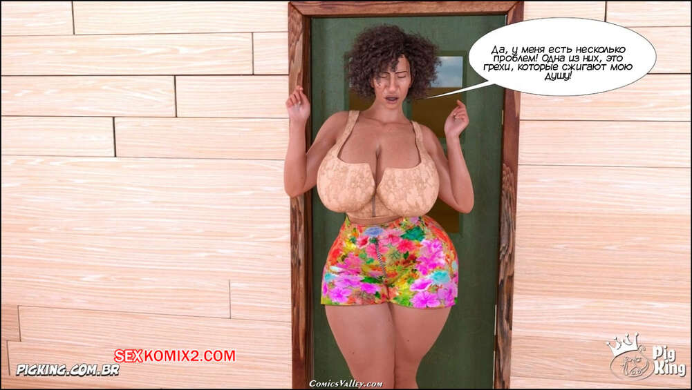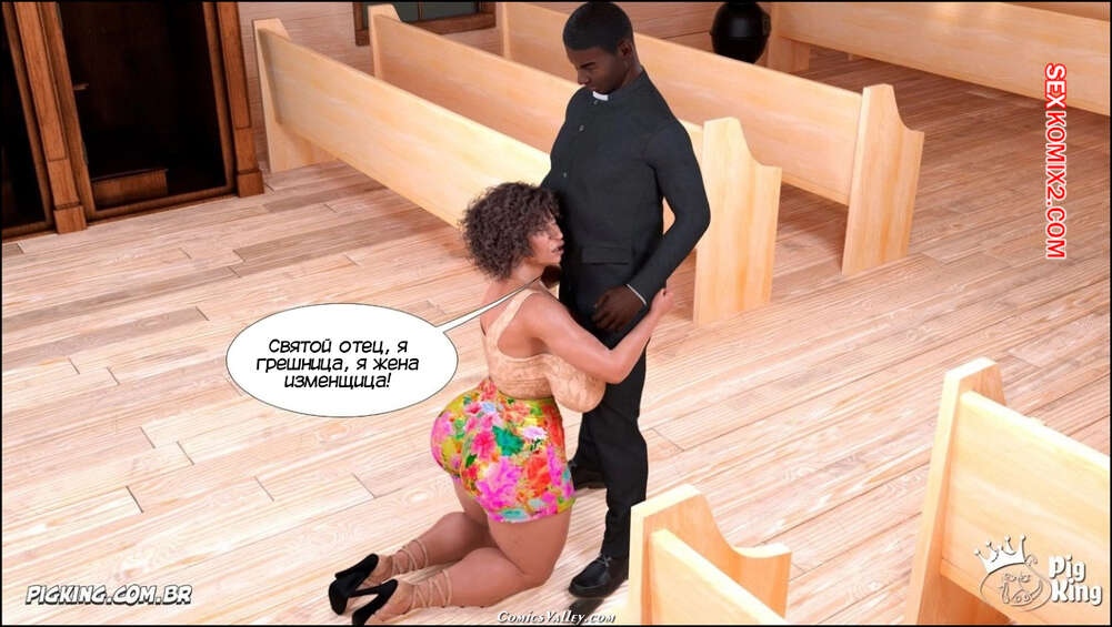 Порно комикс Гаммер. Баттерфейс. Часть 17. Gammer. Butterface. PigKing Валентина отправилась на поиски мужчины, который ее трахнет. Красотка соблазнила темнокожего священника и дала ему отлизать свою пизденку, после чего оседлала его член.