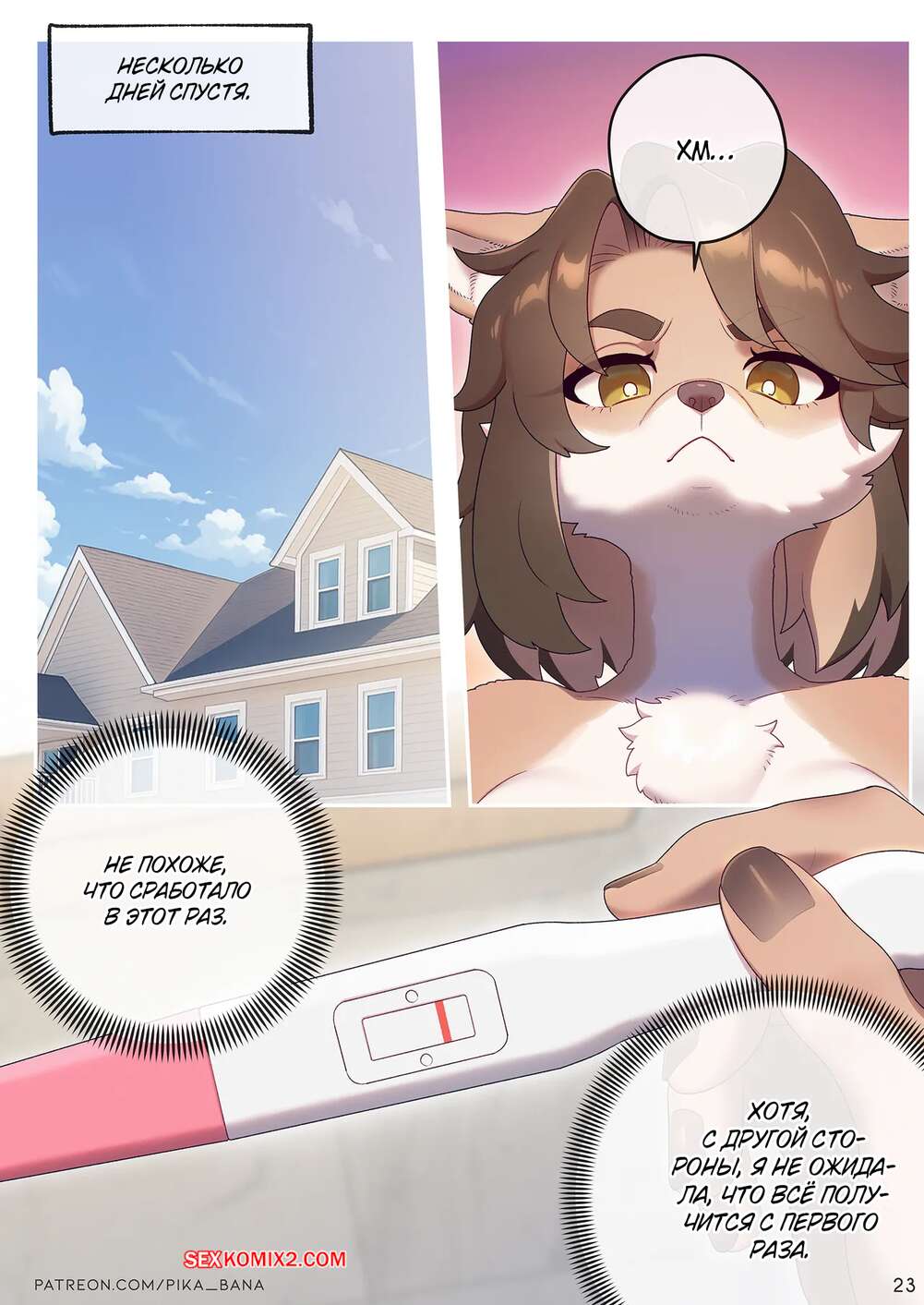 Порно комикс Детская лихорадка. Baby Fever, ON. Strong Bana. Парень и девушка фурри сыграли свадьбу и теперь очень хотят завести ребенка. Они очень любят трахаться и красота с огромным удовольствием скачет на члене мужа, после чего он кончает в нее.
