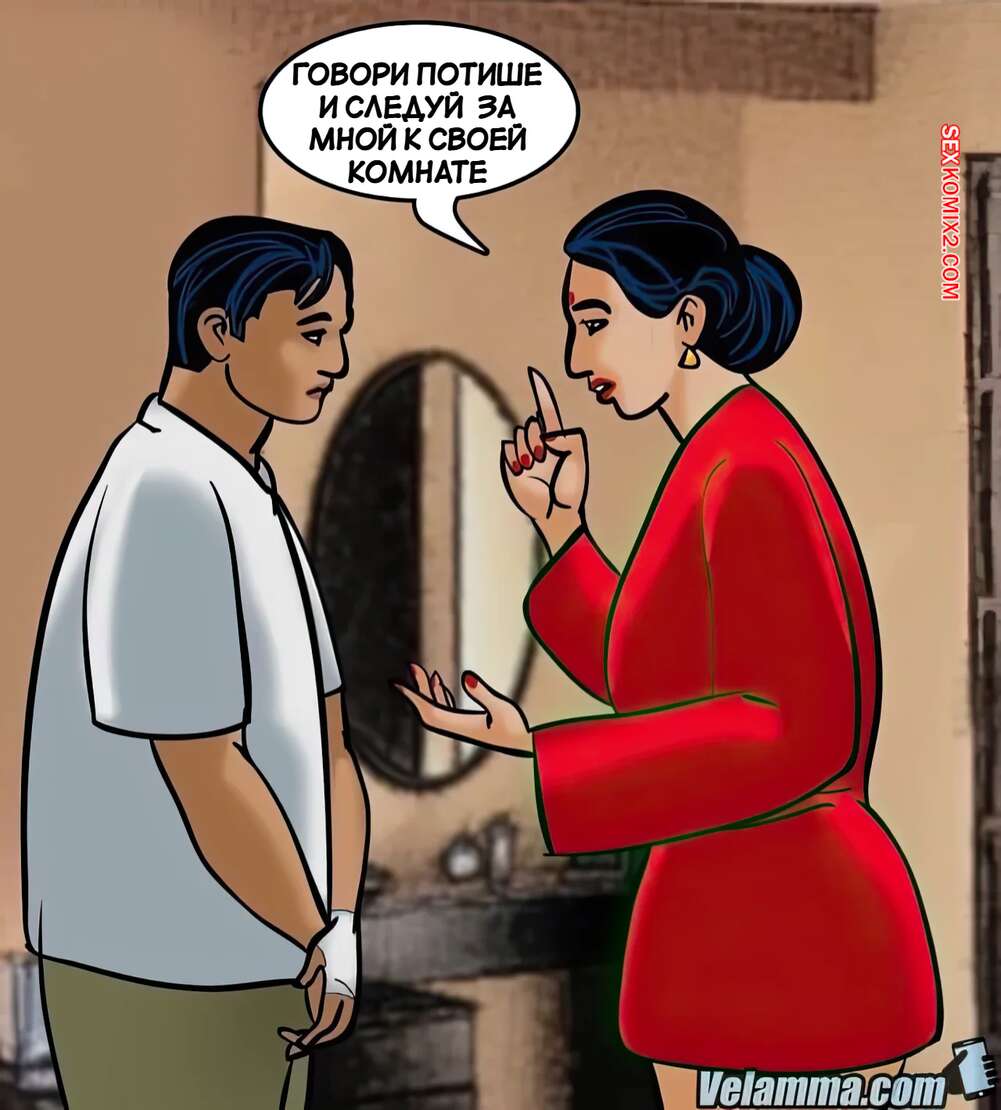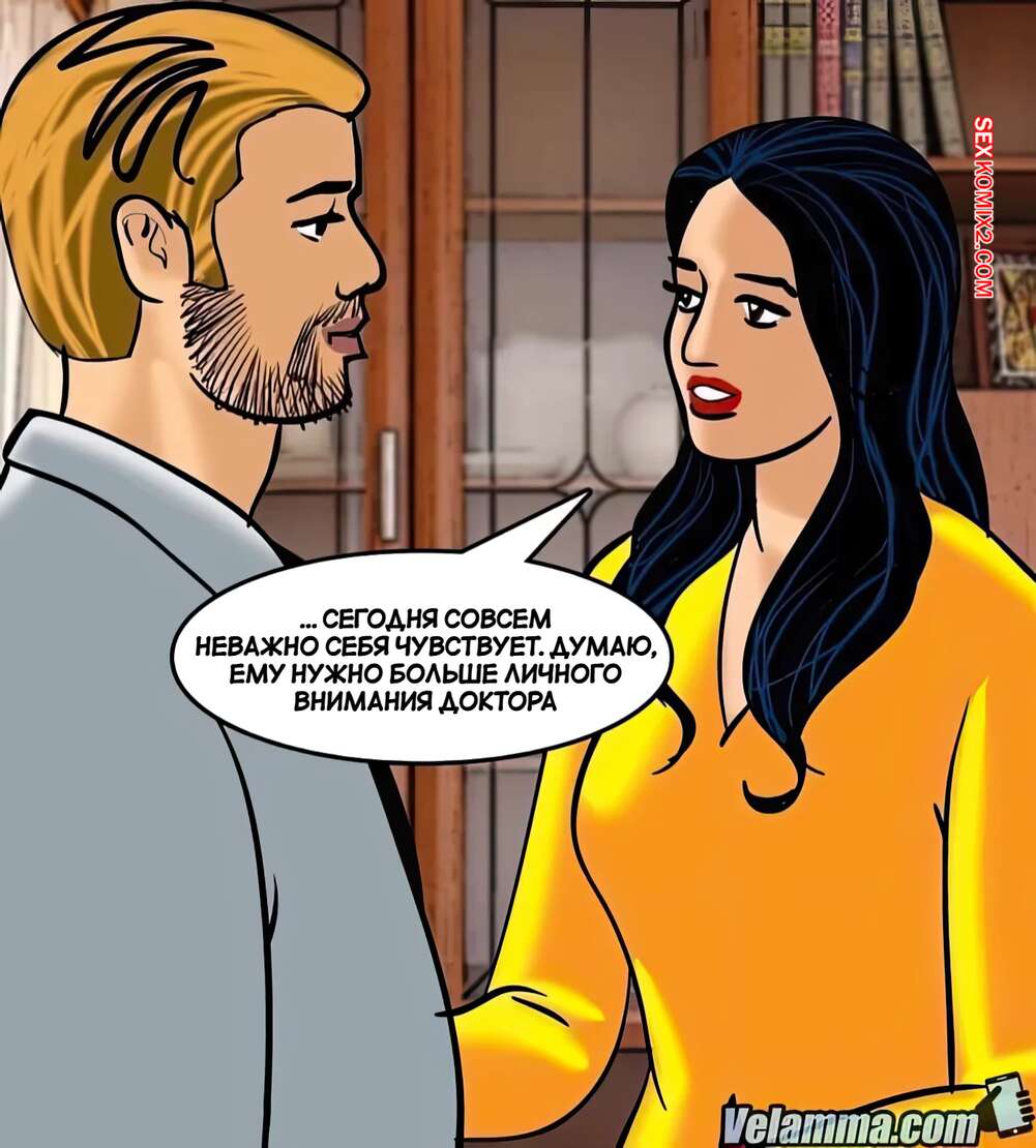 Порно комикс Веламма. Часть 72. Velamma. Velamma Горячая милфа Веламма была очень возбуждена и решила повеселиться с молодым парнем. Она разделась и отсосала его большой хуй, после чего раздвинула ножки и дала ему себя выебать.