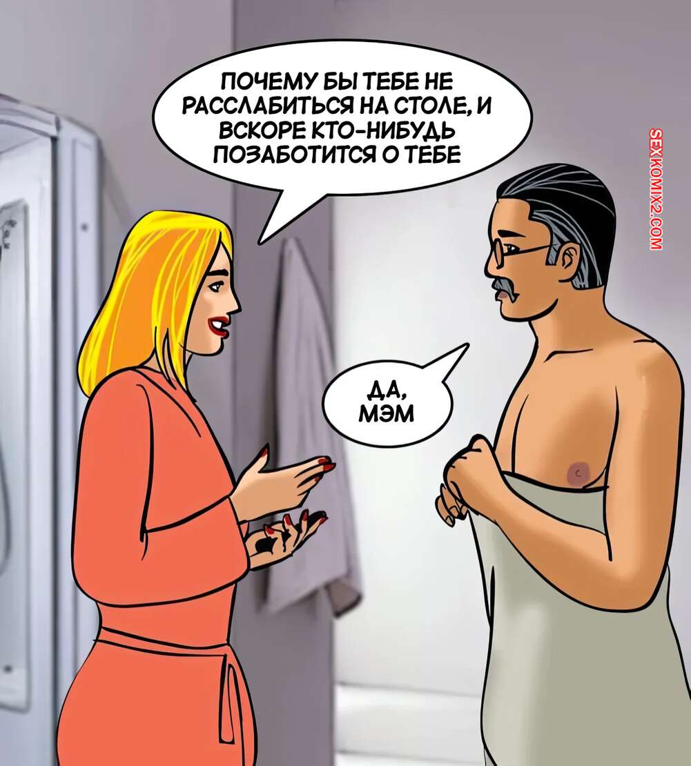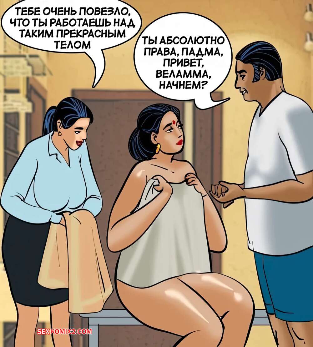 Порно комикс Веламма. Часть 83. Velamma. Velamma Веламма отправилась в спа, где возбудилась от прикосновения массажиста. Красотк стала отсасывать большой хуй парня, после чего дала ему и его коллеге выебать себя во все дырочки.
