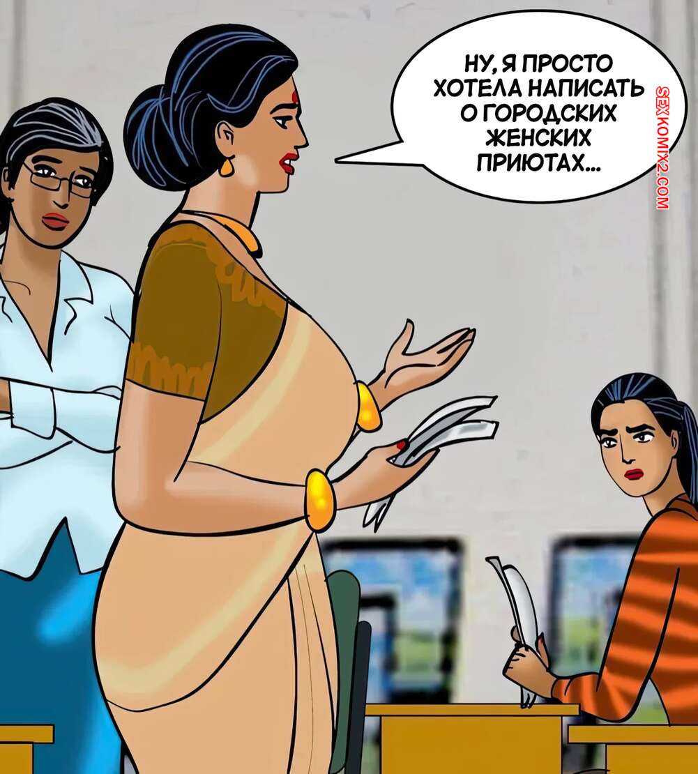 Порно комикс Веламма. Часть 87. Velamma. Velamma Две горячие брюнетки решили повеселиться с симпатичным парнем. Они разделись и соблазнили его, после чего Веламма отсосала хуй парня и дала ему себя выебать.