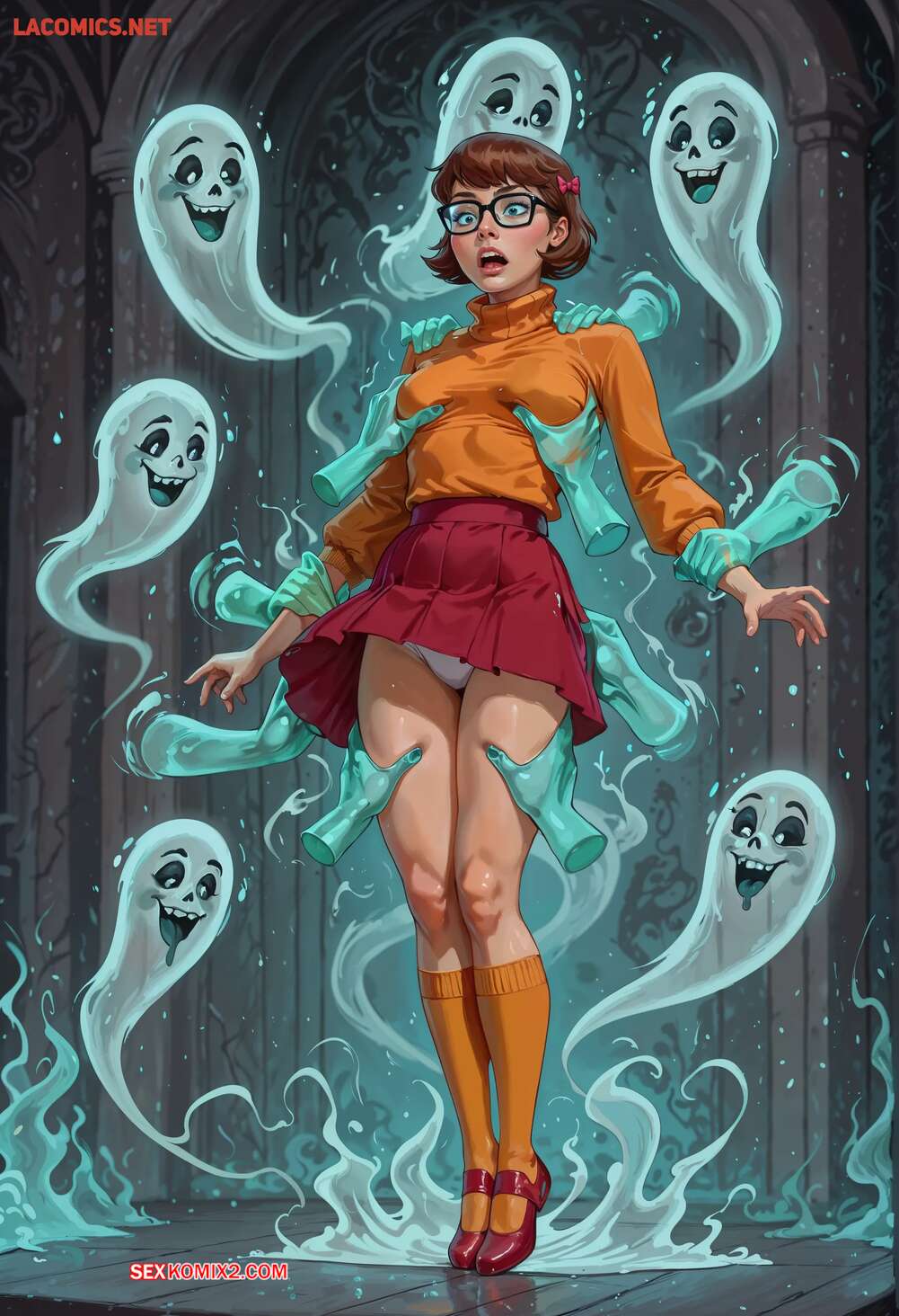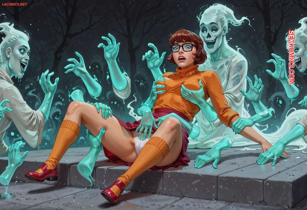Порно комикс Doo Not Disturb. Velma. Shadow Renders Велму окружили призраки, желающие насладиться телом красотки. Они дали ей отсосать свои большие хуи и выебали девушку во все дырочки, заполнив ее своей горячей спермой.
