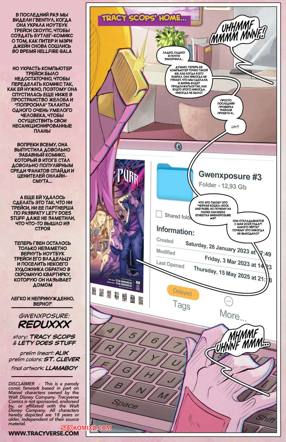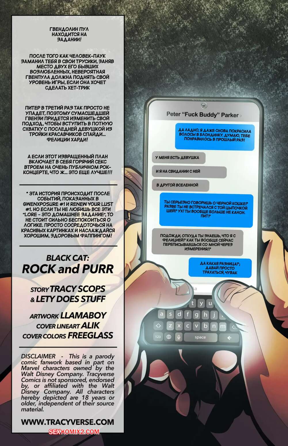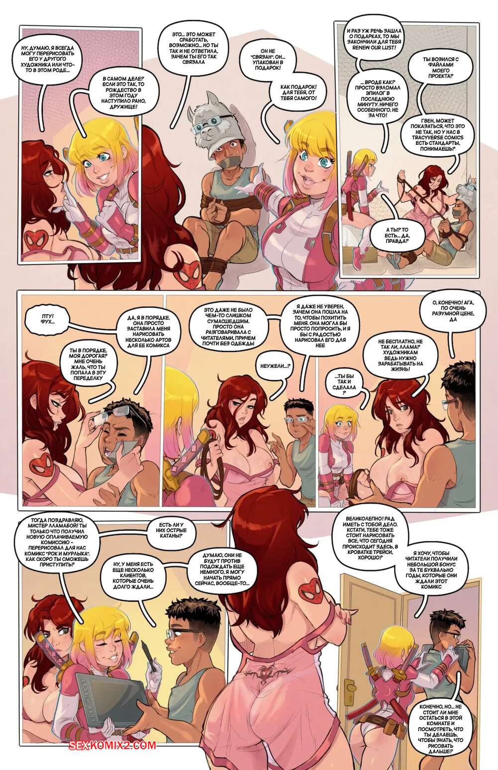 Порно комикс Marvel. Гвен. Gwen Xposure Redux. Tracy Scops. Горячие красотки без ума от большого члена Питера. Они раздеваются и соблазняют парня, после чего раздвигают ножки и дают ему себя выебать во все дырочки.