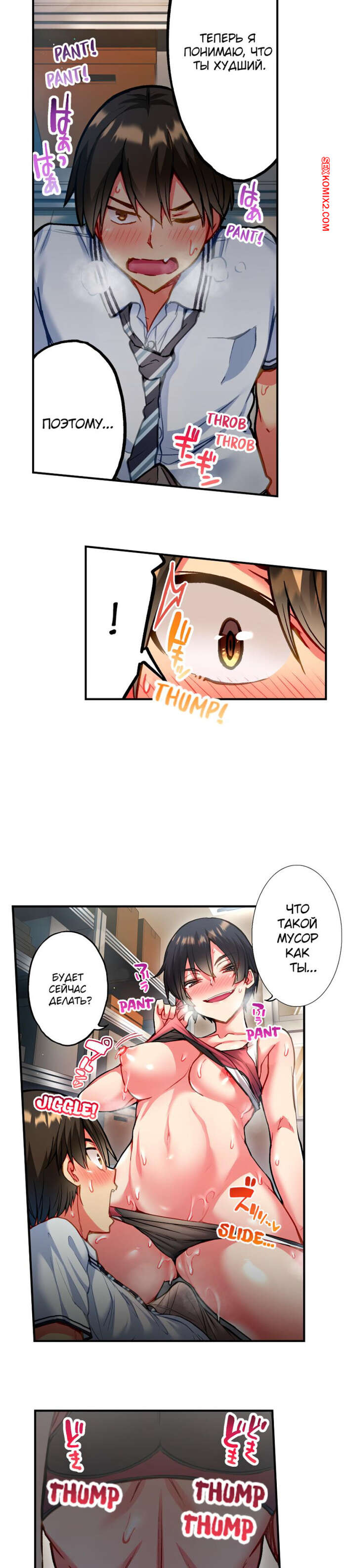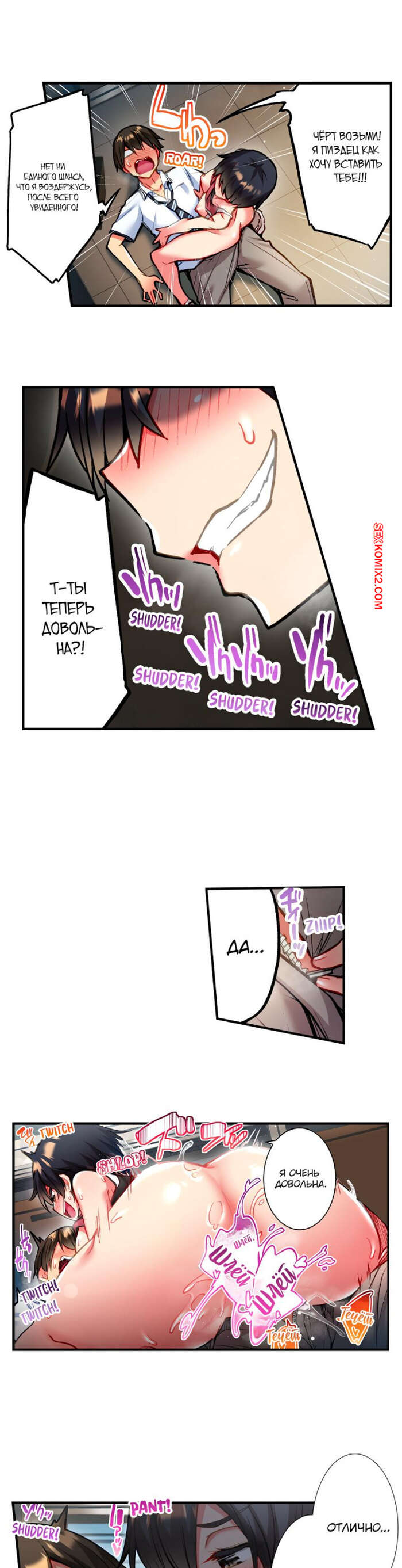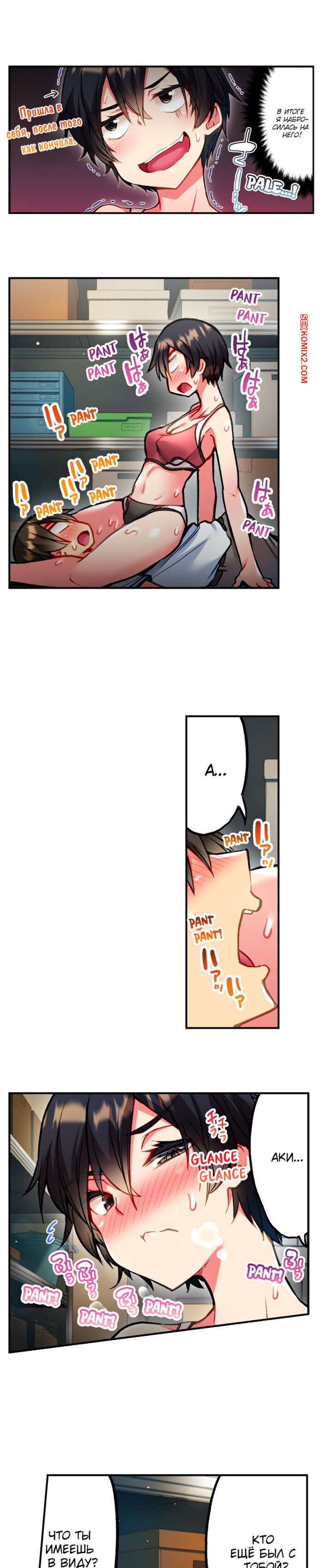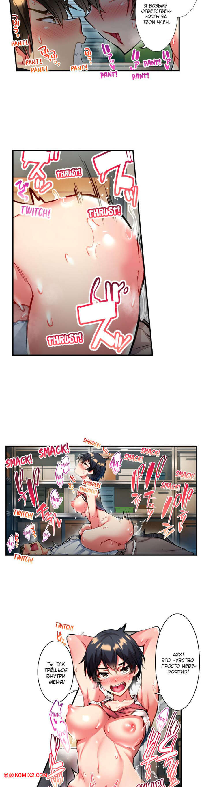 Порно комикс Сладкие муки Адама. Часть 46. Modaete yo, Adam kun. Toyo Горячая брюнетка уложила парня на пол и села на него сверху. Красотка сняла трусики, после чего вставила в себя его член и дала пареньку себя хорошенько выебать.