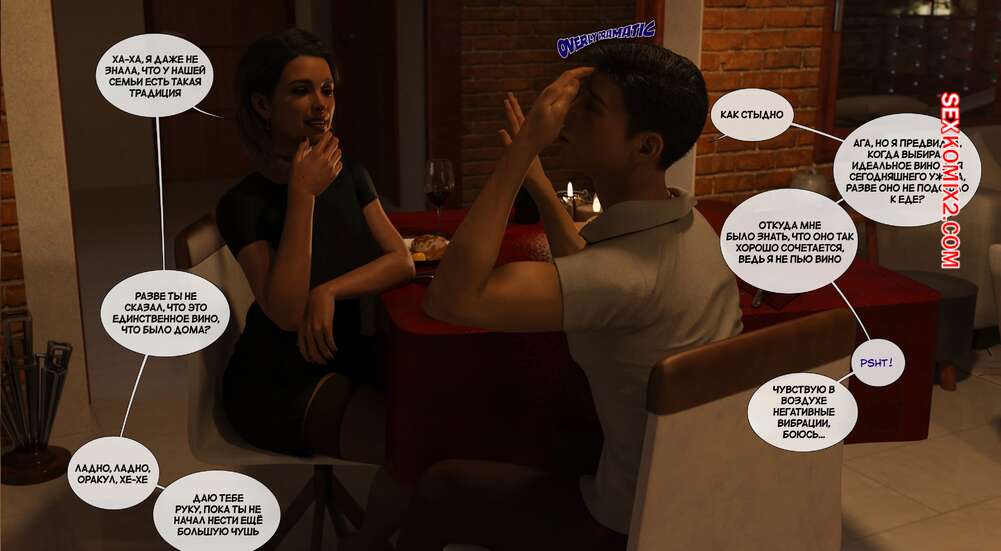 Порно комикс Материнский стыд. Часть 4. A Mothers Shame. Tal3s of Debauchery Дилан устроил романтический ужин для своей горячей мамочки, чем сильно ее удивил. Затем парнишка повела мамочку в спальню, где отлизал ее пизденку и затем хорошенько ее выебал.