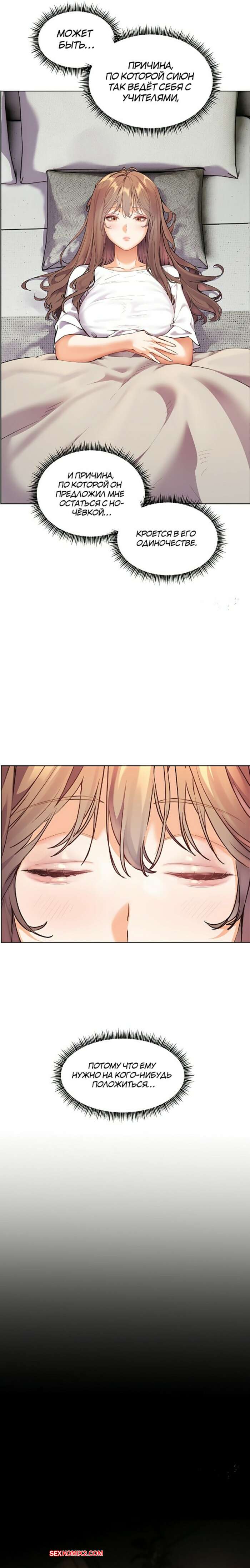 Порно комикс Усилия учителя. Часть 31 и 32 и 33 Парень с девушкой легли вместе спать и решили немного повеселиться. Красотка встала на колени и стала сосать хуй своего дружка, желая поскорее ощутить его в пизденке.
