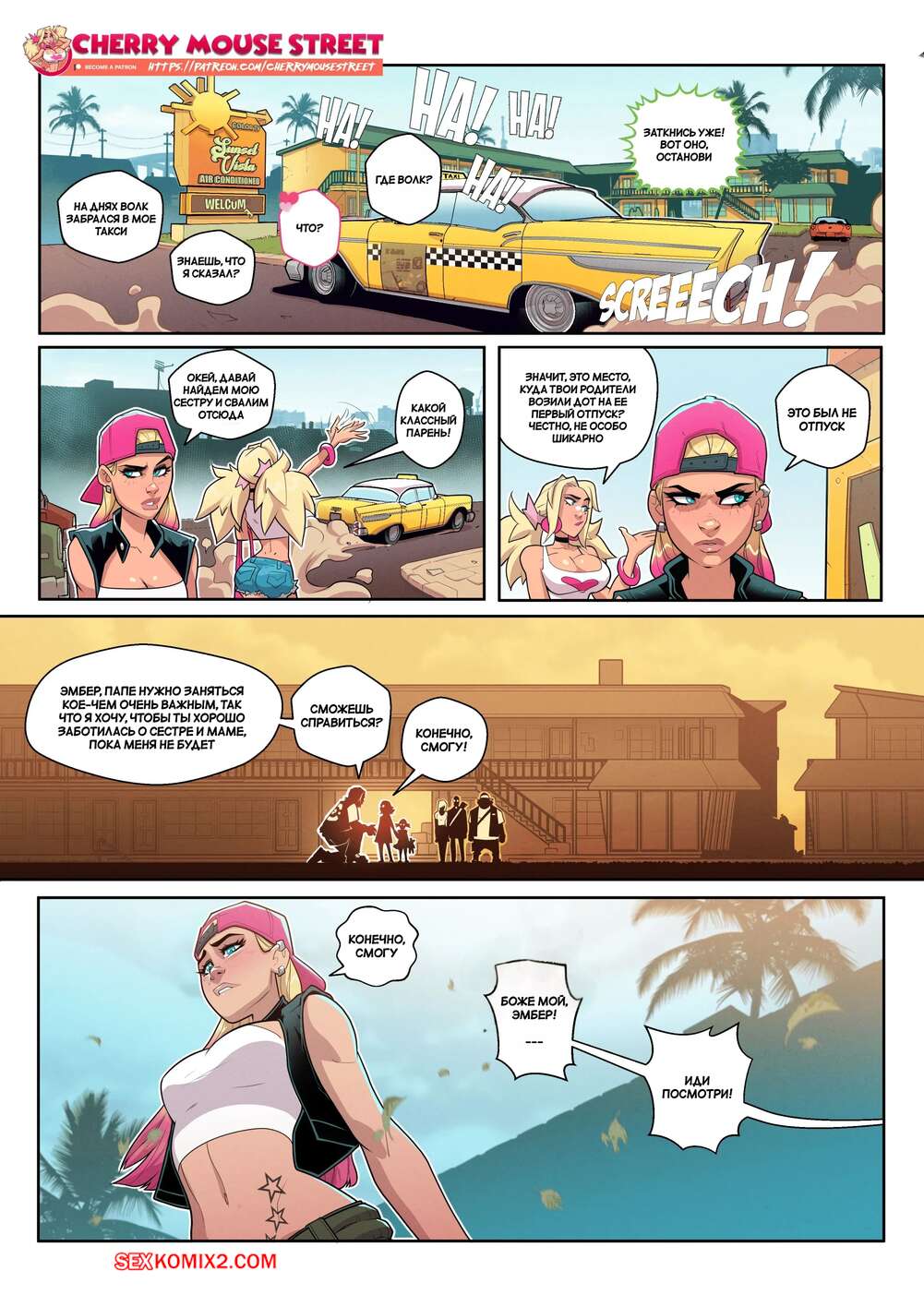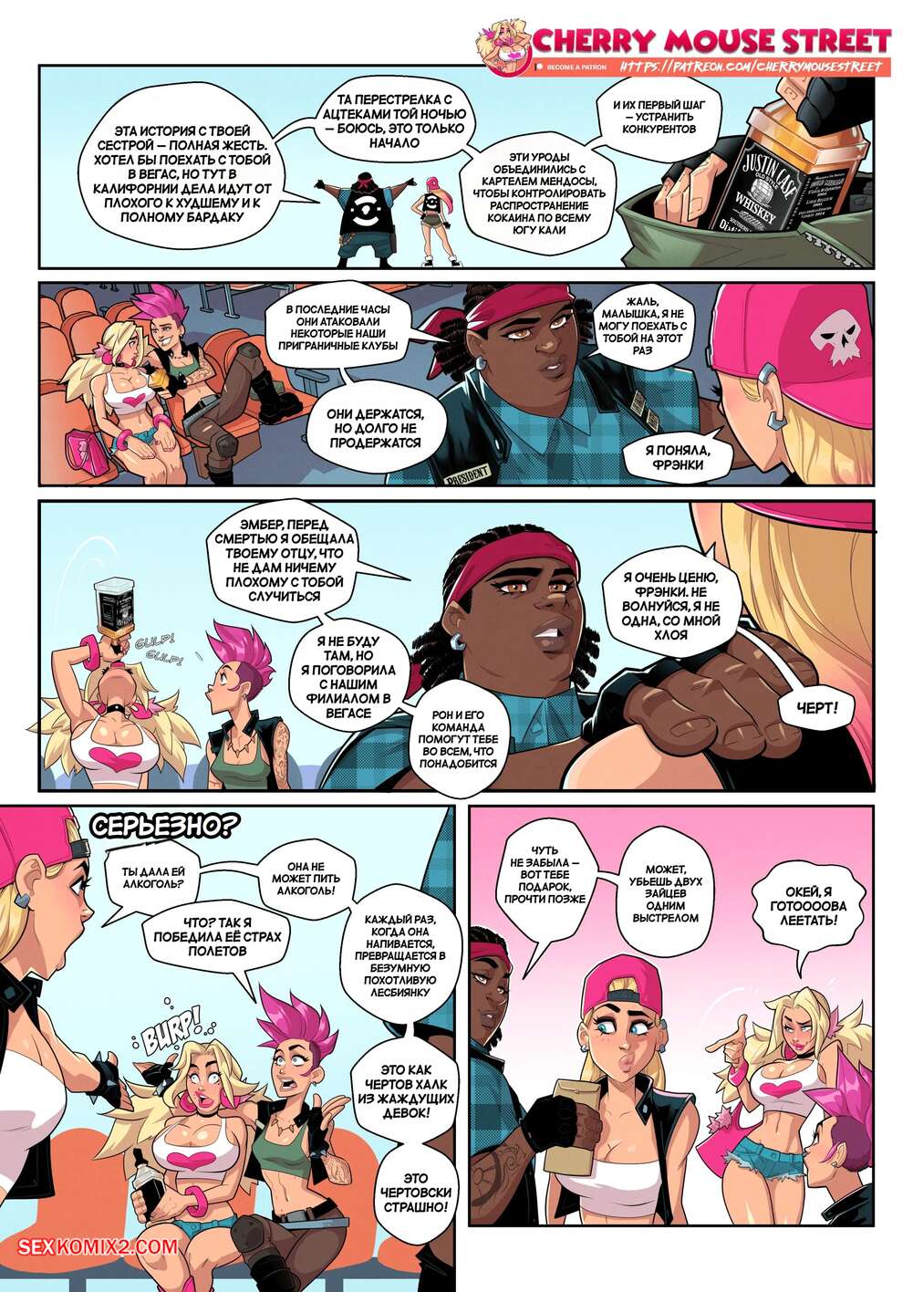 Порно комикс Хлоя и Эмбер. Езжай или умри. Часть 2. Ride or die. Cherry Mouse Street Подруги отправились на самолете в другую страну, чтобы выполнить свою миссию. Там им предстояла встреча с местной бандой, которая угрожала им оружимем, но девушкам удалось справиться со всеми проблемами.