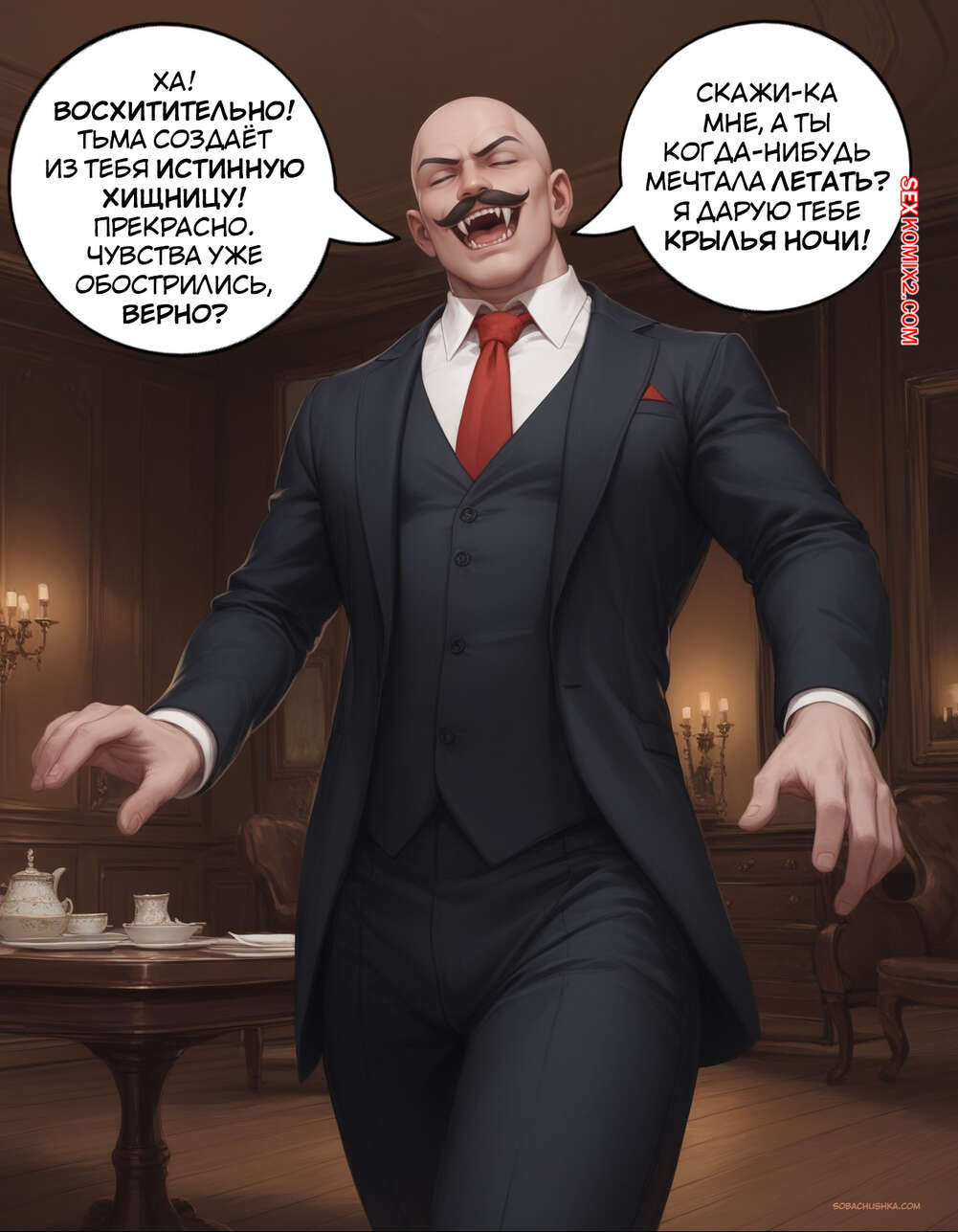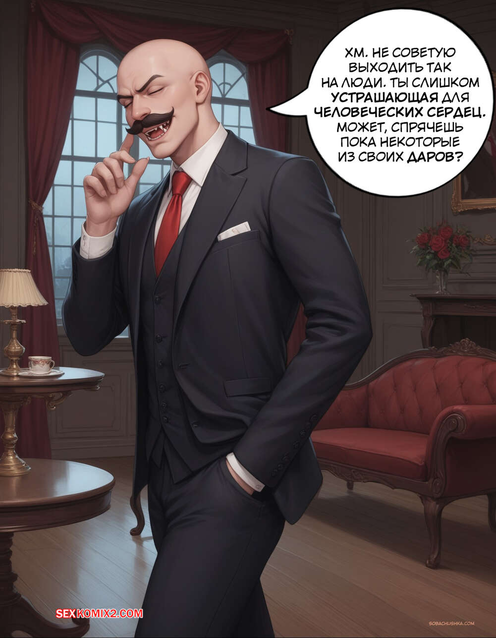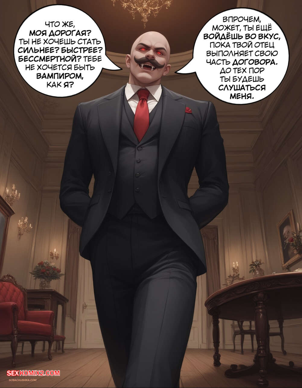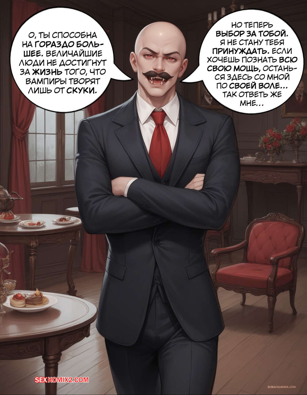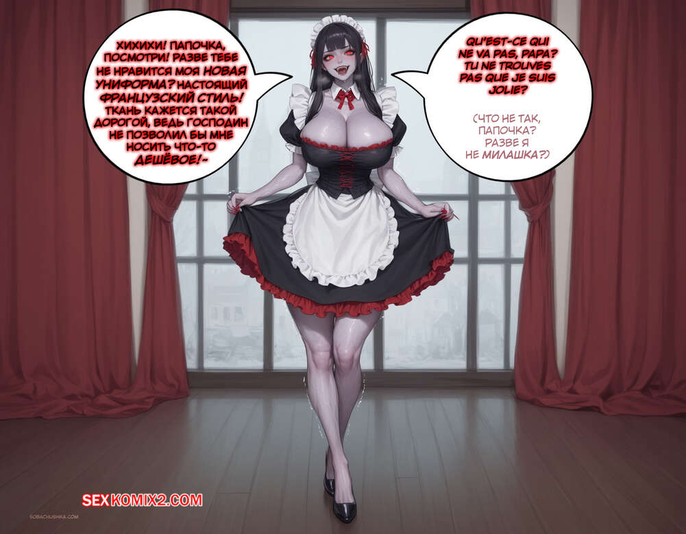 Порно комикс Очарованный. Часть 2. Enthralled. AlwaysOlder Юный парень превратился в сексуальную вампиршу с шикарным телом. Красотка рада преображению и стала горничной богатого мужика, готовая сделать для него что угодно.