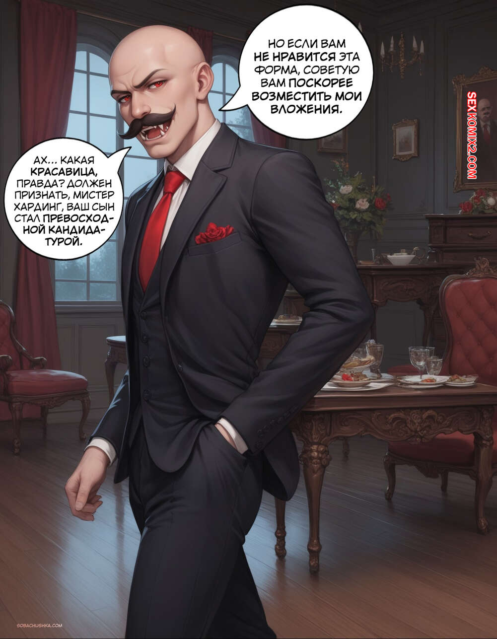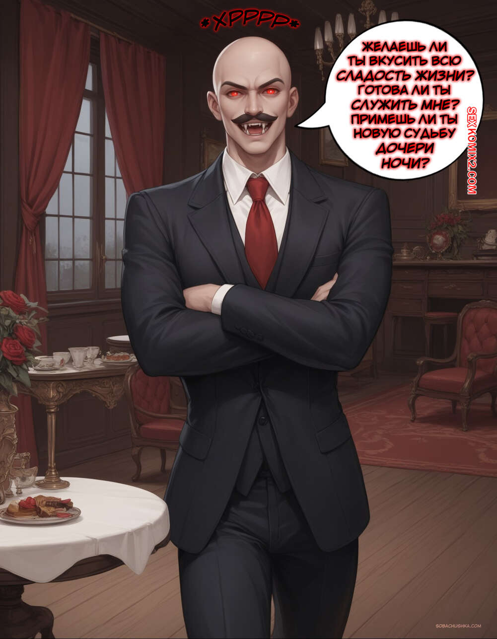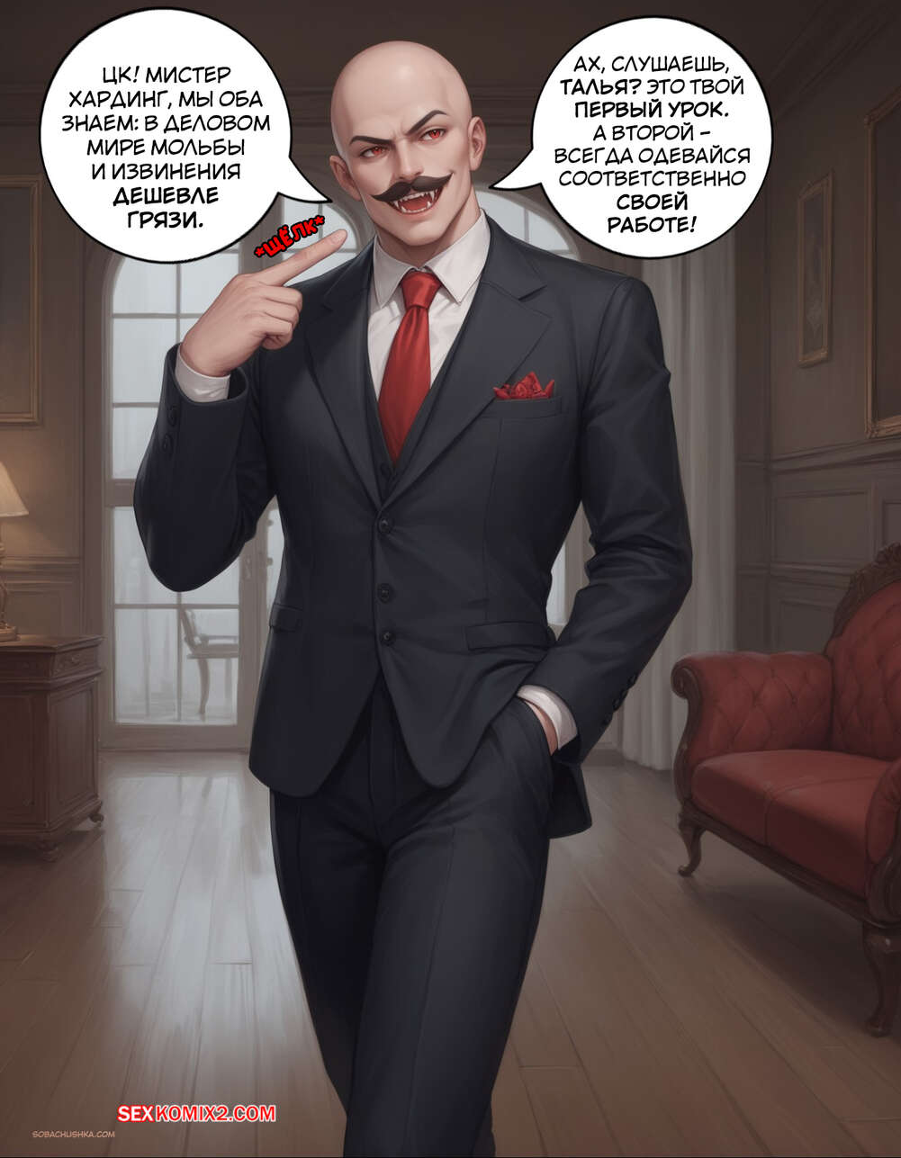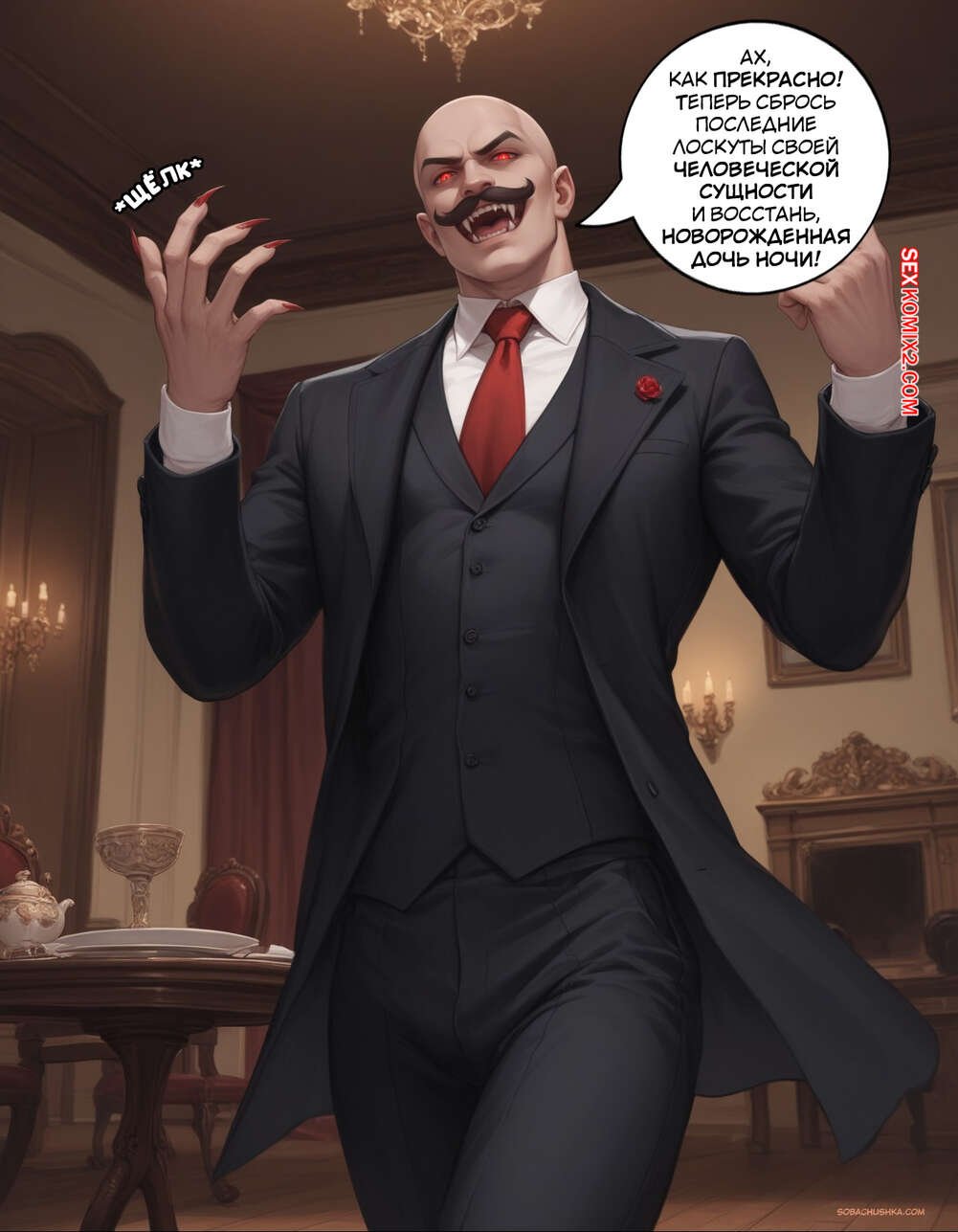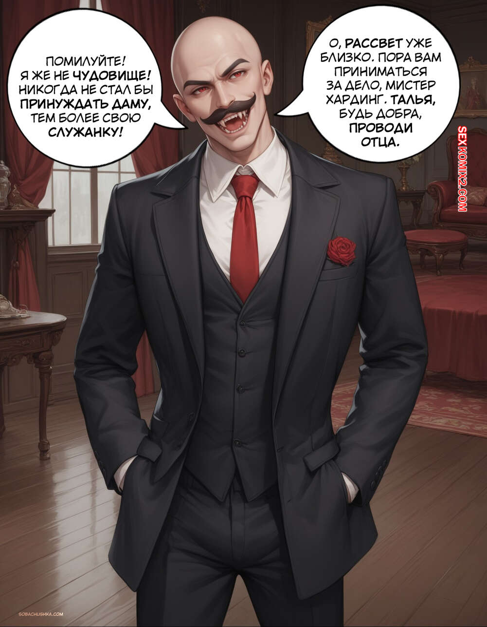 Порно комикс Очарованный. Часть 2. Enthralled. AlwaysOlder Юный парень превратился в сексуальную вампиршу с шикарным телом. Красотка рада преображению и стала горничной богатого мужика, готовая сделать для него что угодно.