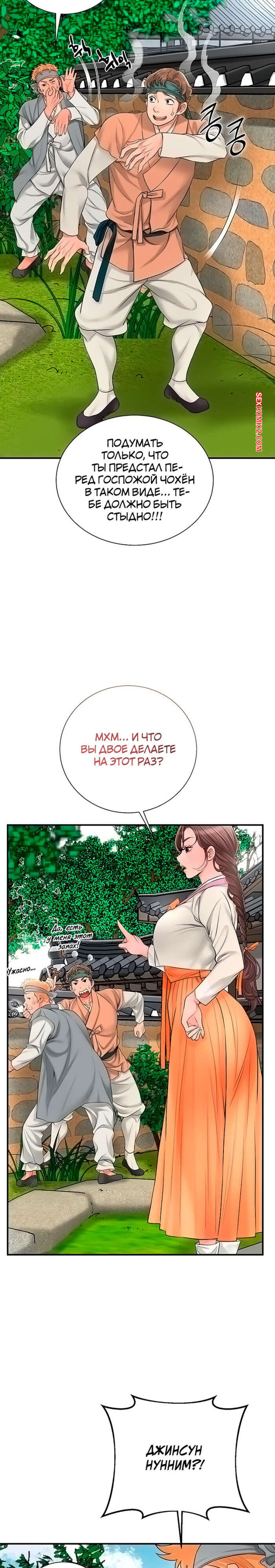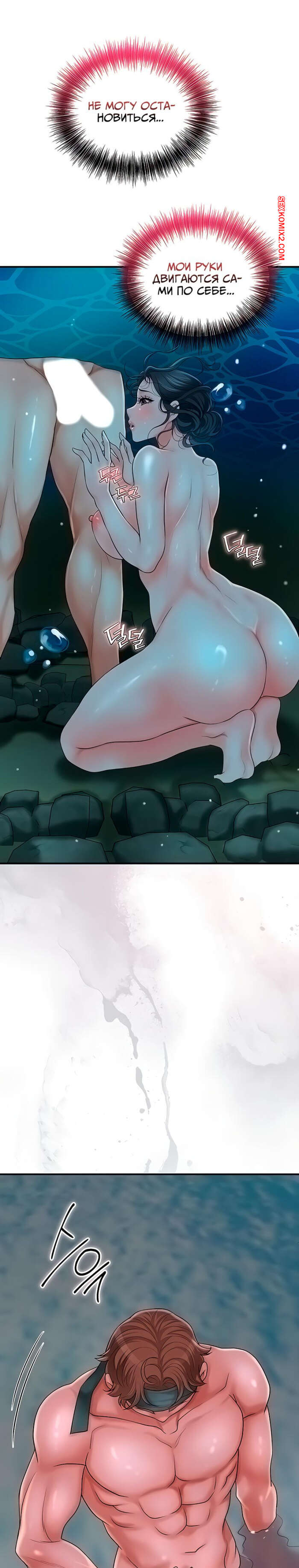 Порно комикс Бордель. Часть 19 и 20 и 21. chwihwajeom Горячая брюнетка пришла на озеро искупаться и встретила там парня с твердым членом. Это очень возбудило девушку и она стала отсасывать хуй парня, желая ощутить его в себе.