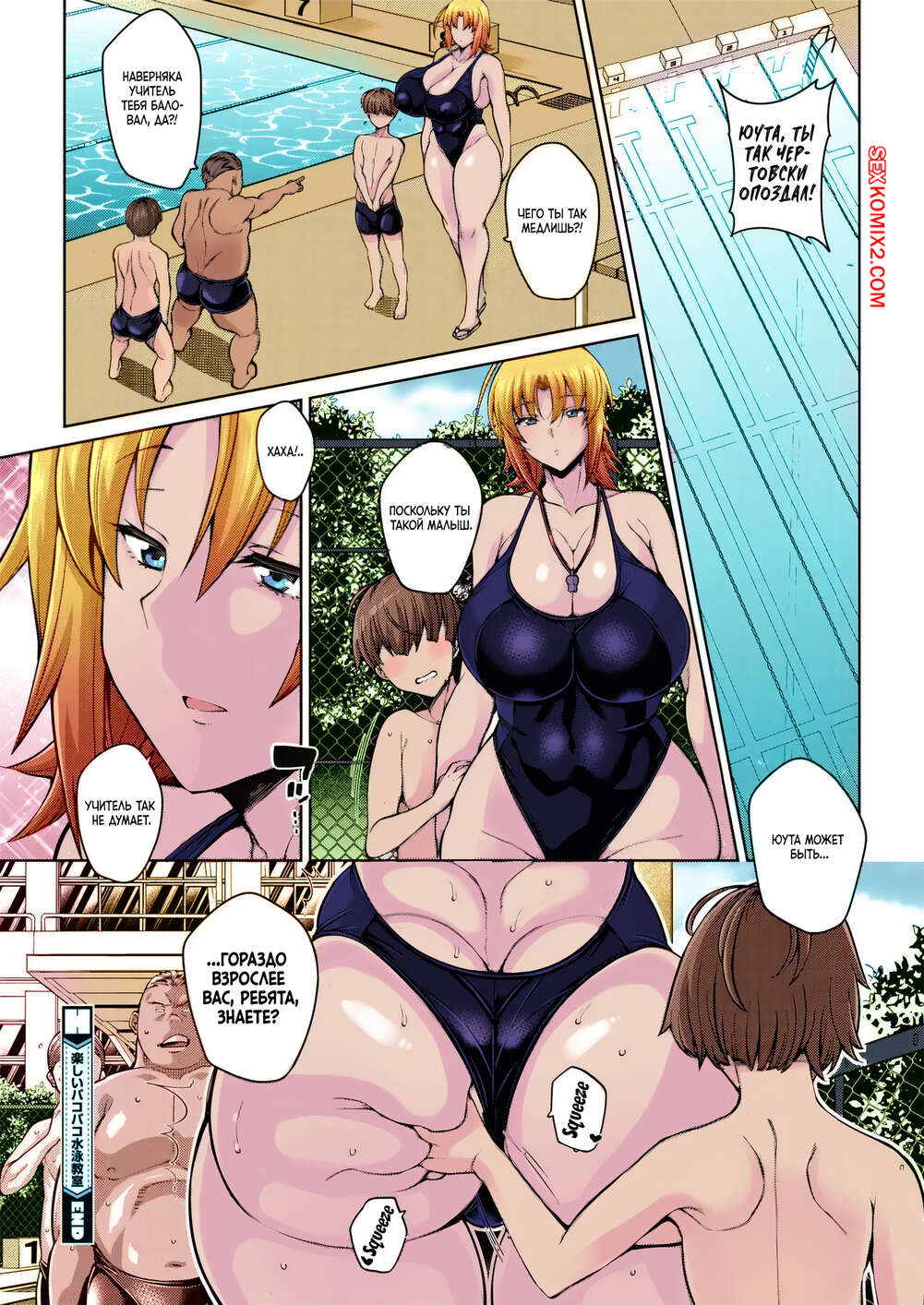 Порно комикс Веселый трах трах на уроке плавания. Fun Paco Paco Swimming Class. Drachef Возбужденная блондинка решила повеселиться со своим учеником. Она затащила его в раздевалку и отсосала хуй парня, после чего дала ему себя хорошенько выебать.