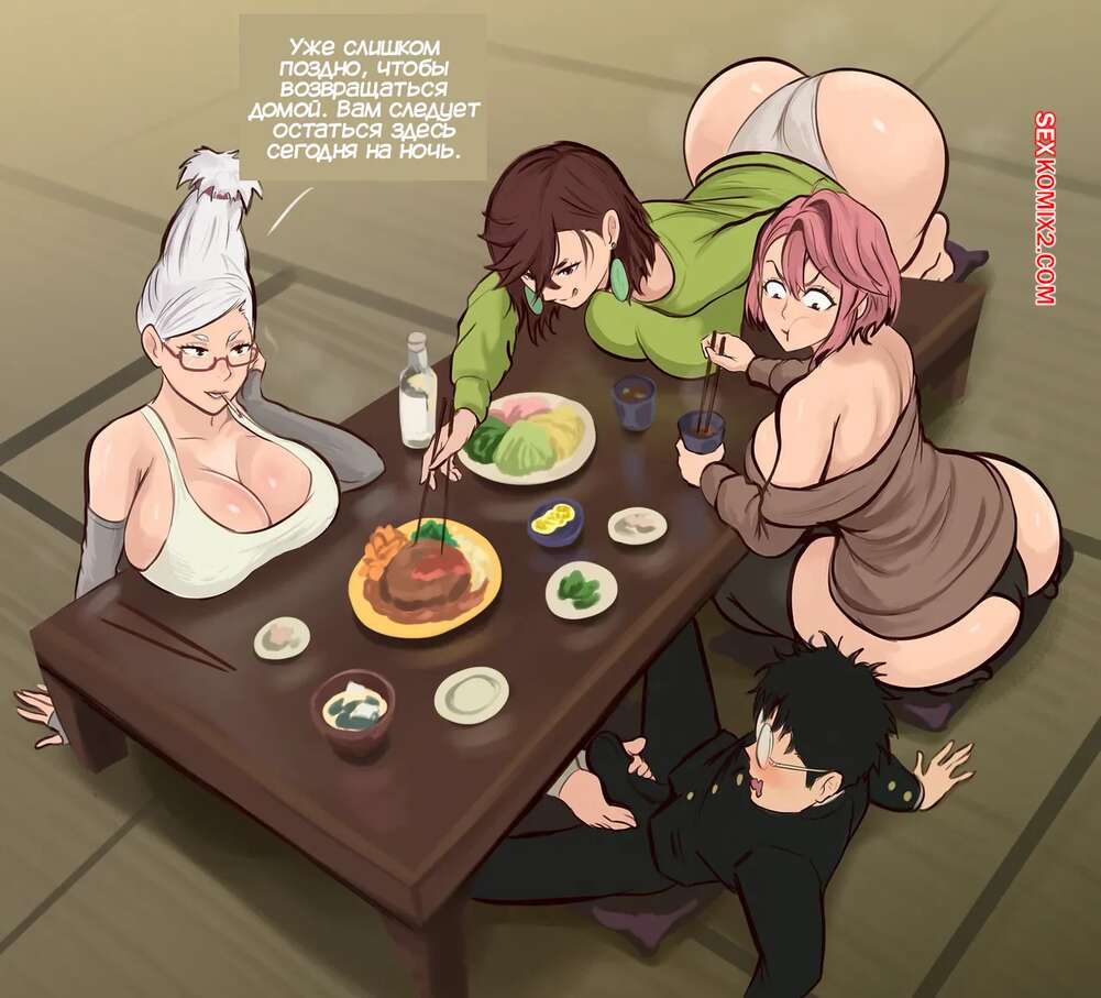 Порно комикс Dandadan. Сейко Айасе, Момо Айасе, Айра Ширатори. Arachnart Горячая милфа предложила молодым ребятам переночевать у нее. Красотки решили повеселиться с молодым парнем и стали сосать его член, после чего дала выебать свои попки.