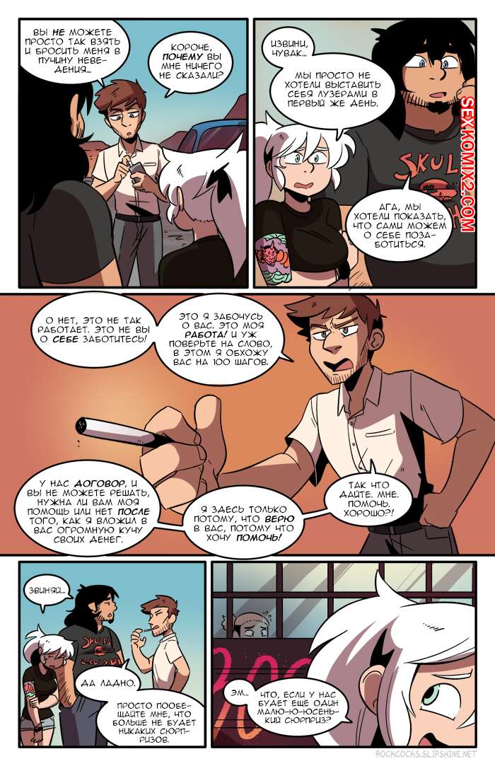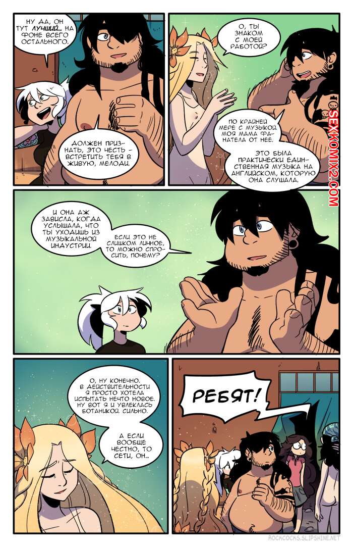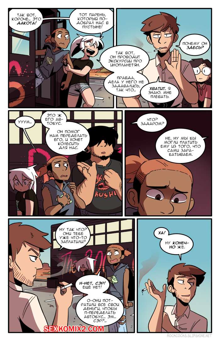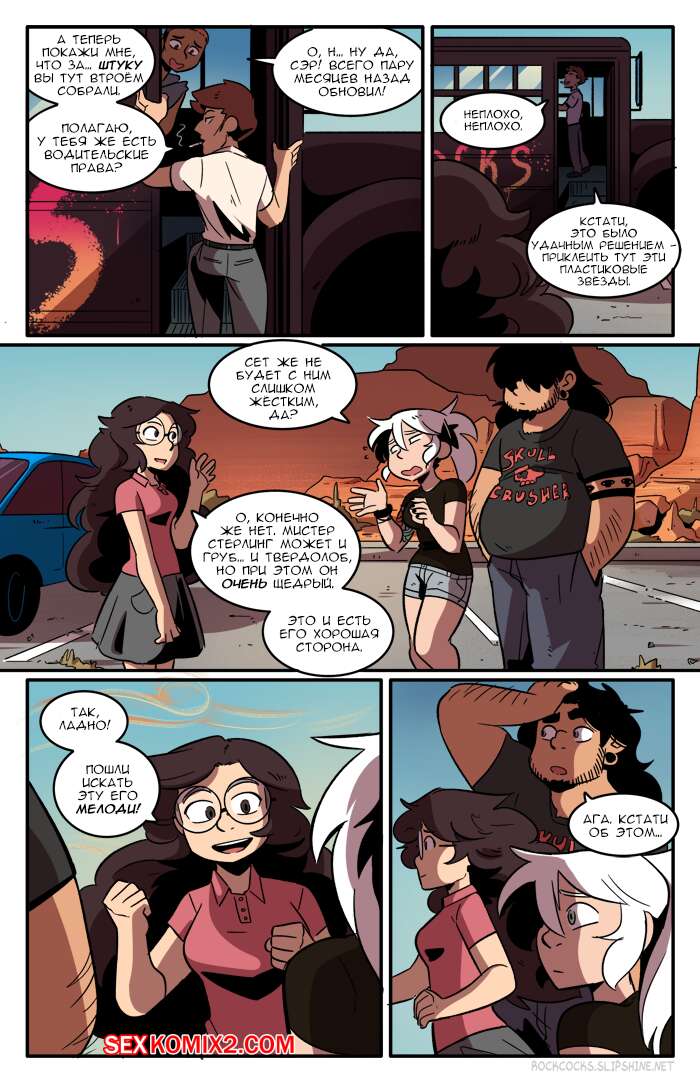 Порно комикс Рок хуй. The Rock Cocks. Часть 9. Плохие вибрации Починив автобус наша банда отправилась дальше в путешествие и они остановились в мотеле, где оказалось, что все люди ходят голые. Нашим ребятам это абсолютно понравилось, ведь перед их глазами предстали прекрасные горячие тела, которые точно возбуждают.