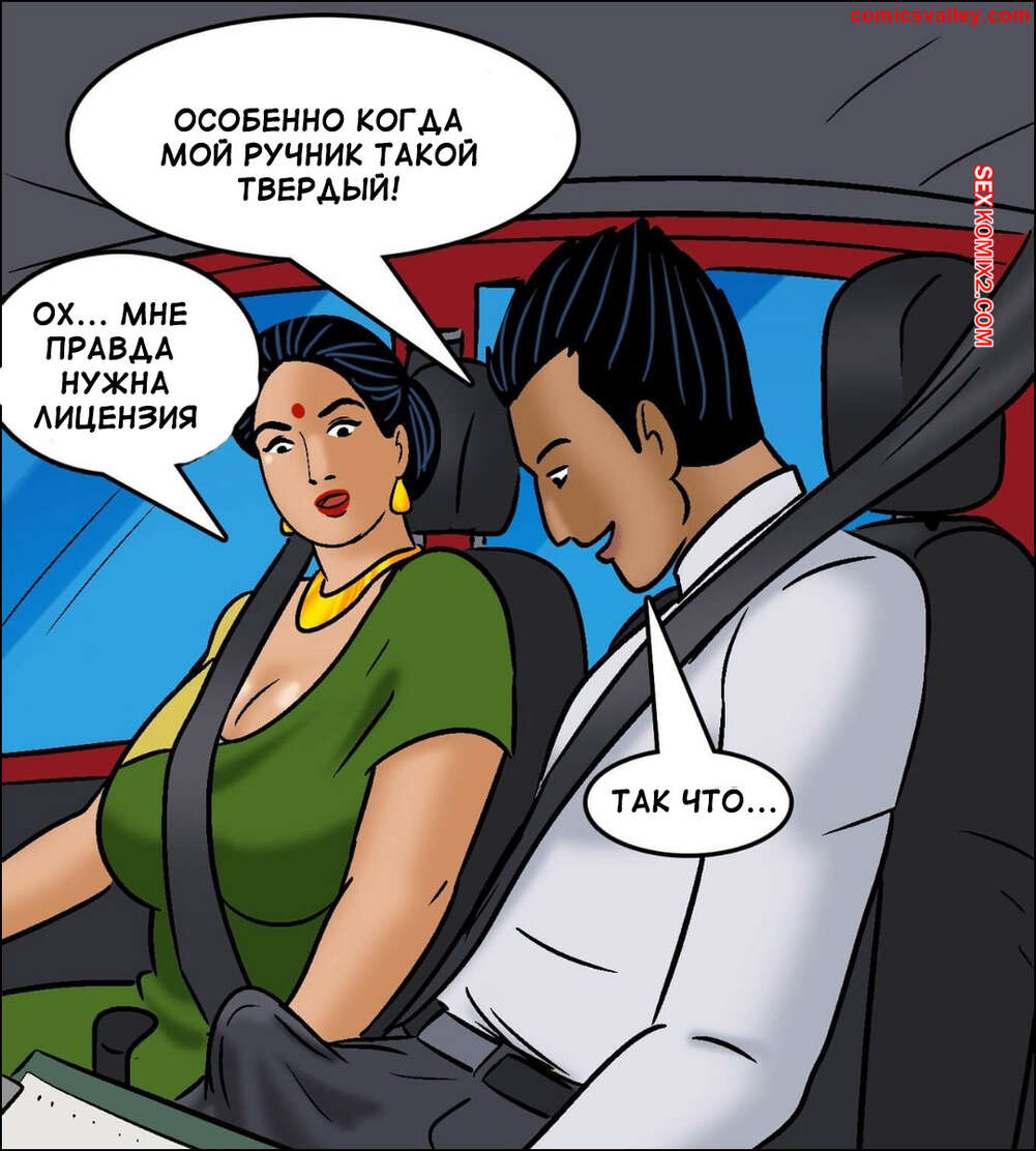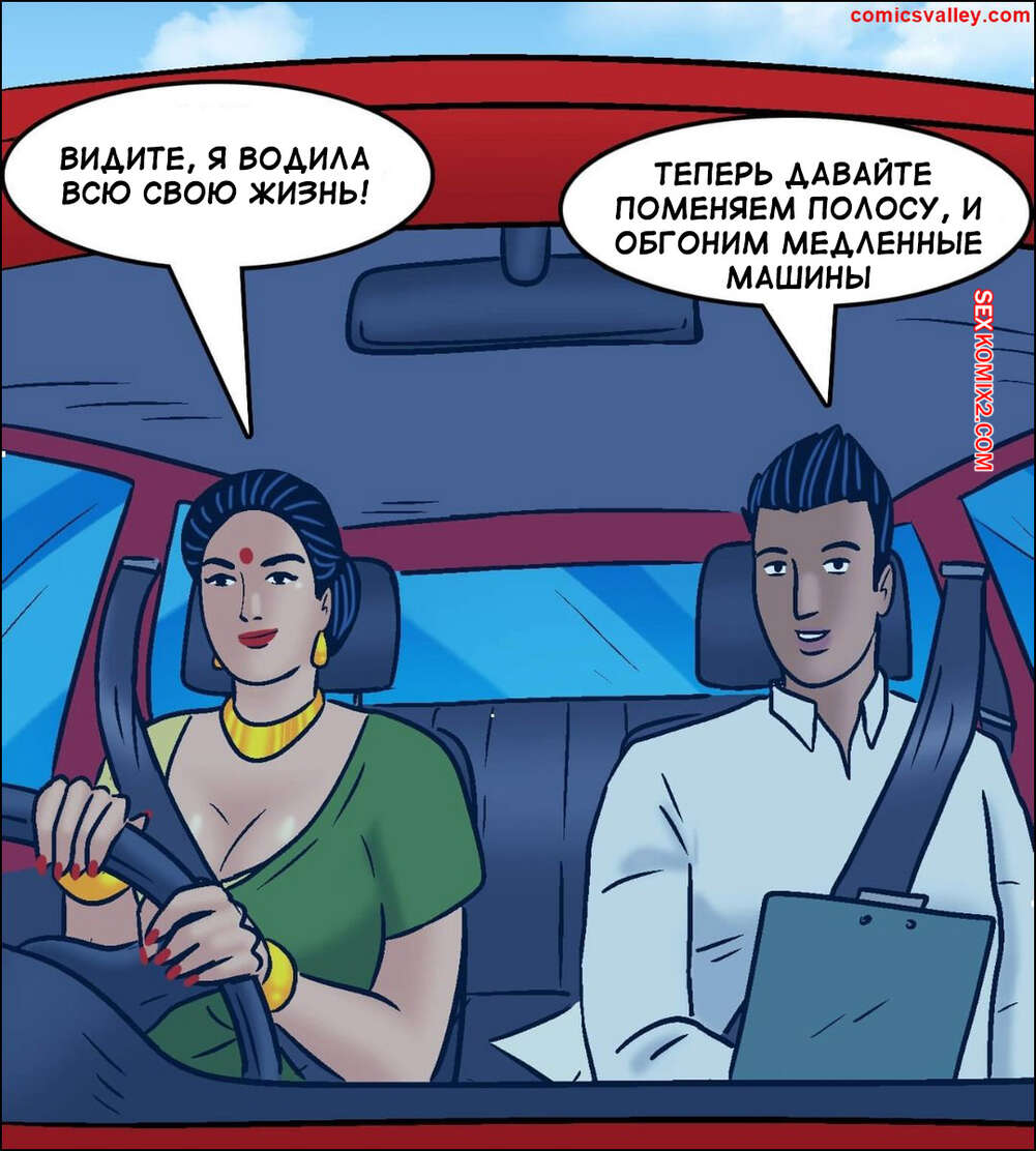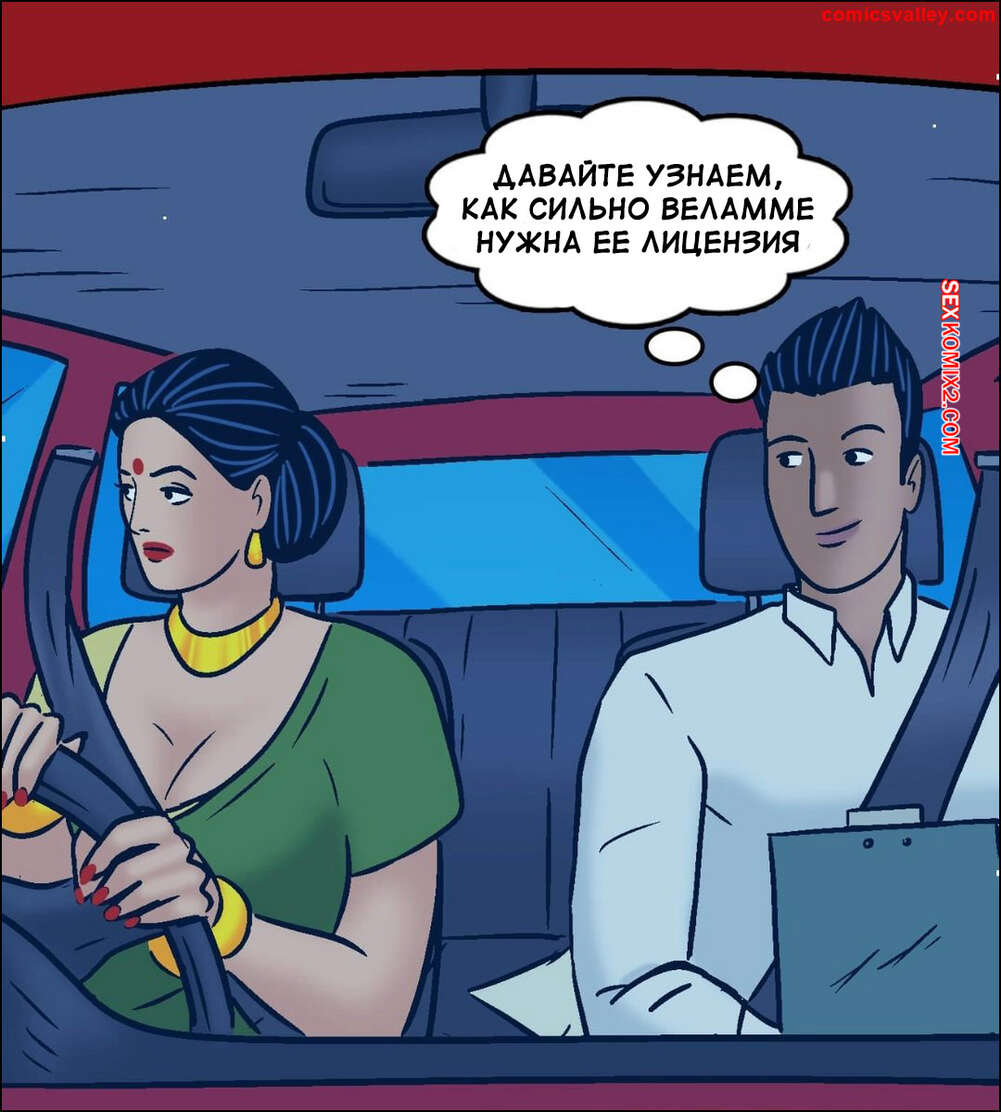 Порно комикс Веламма. Часть 104. Velamma. Velamma Веламма сдавала экзамен по вождению и заметила на себе похотливые взгляды инструктора. Красотка хочет сдать с первой попытки, поэтому она трахнулась с молодым парнем, получив наконец права.