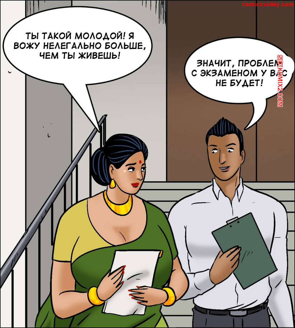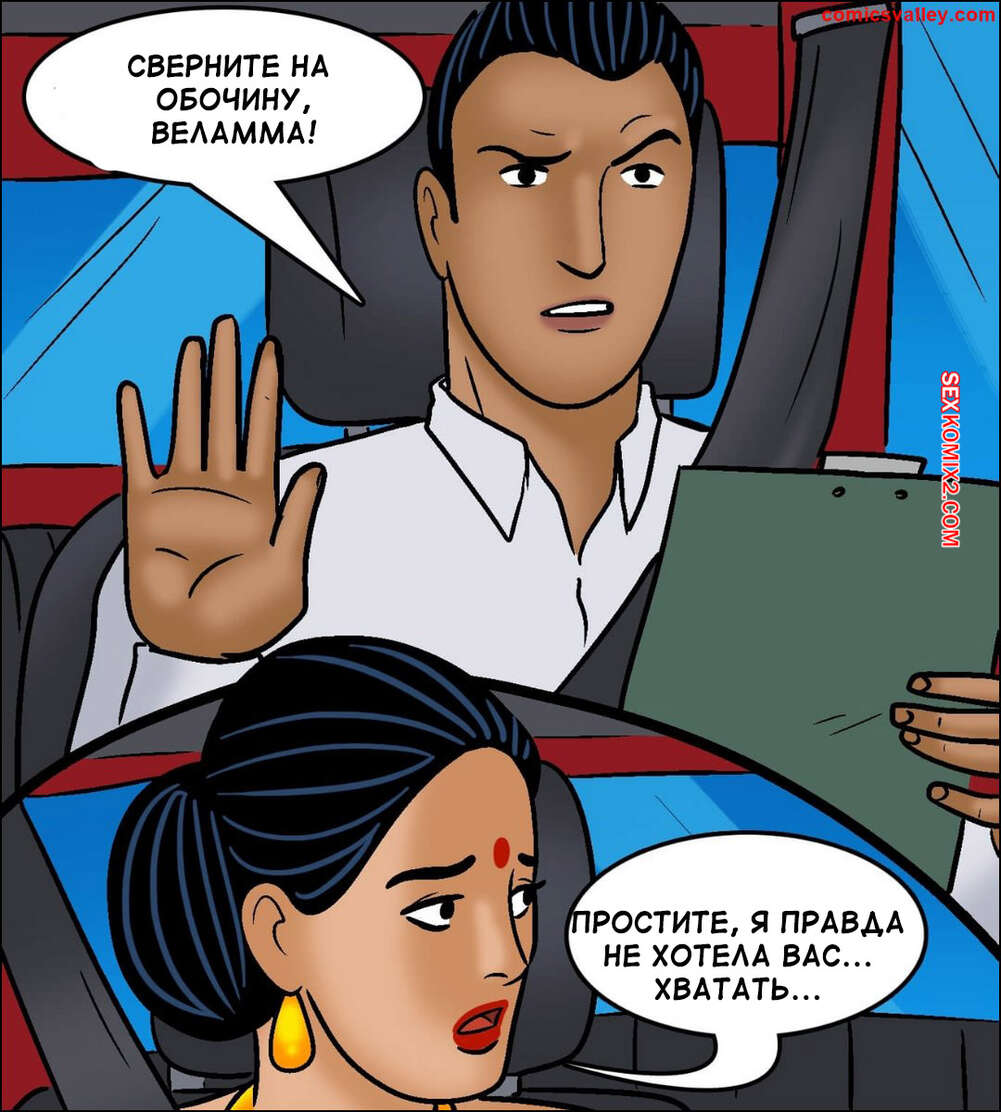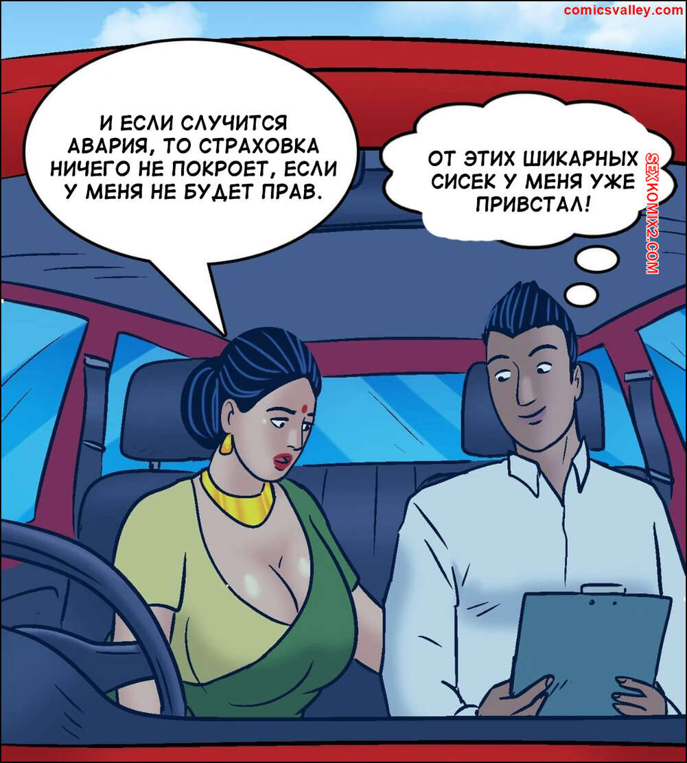 Порно комикс Веламма. Часть 104. Velamma. Velamma Веламма сдавала экзамен по вождению и заметила на себе похотливые взгляды инструктора. Красотка хочет сдать с первой попытки, поэтому она трахнулась с молодым парнем, получив наконец права.