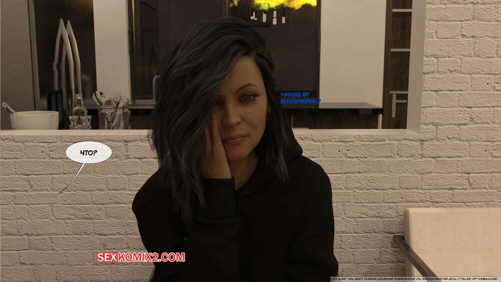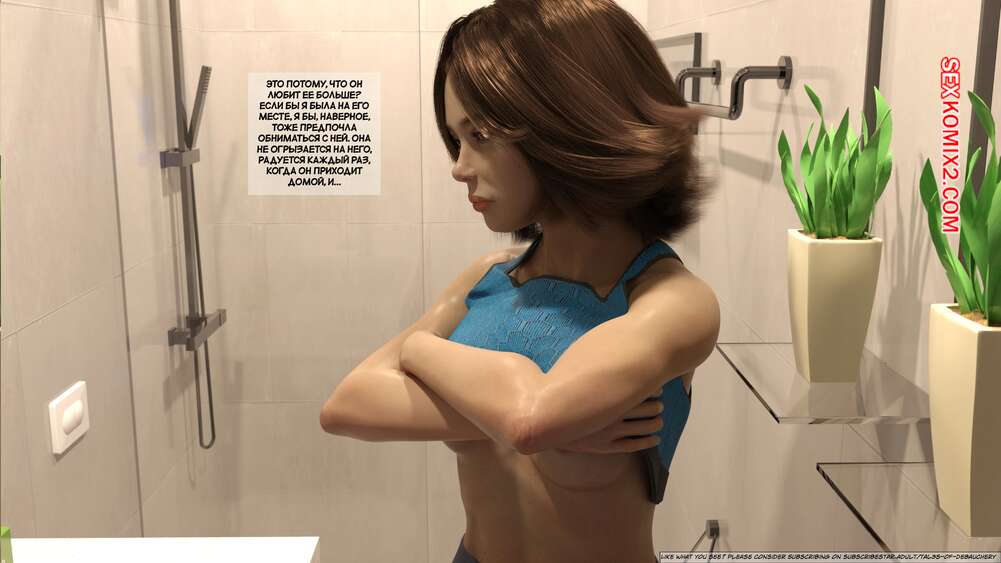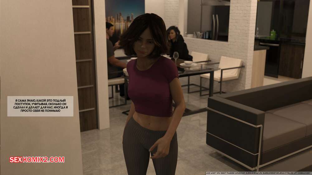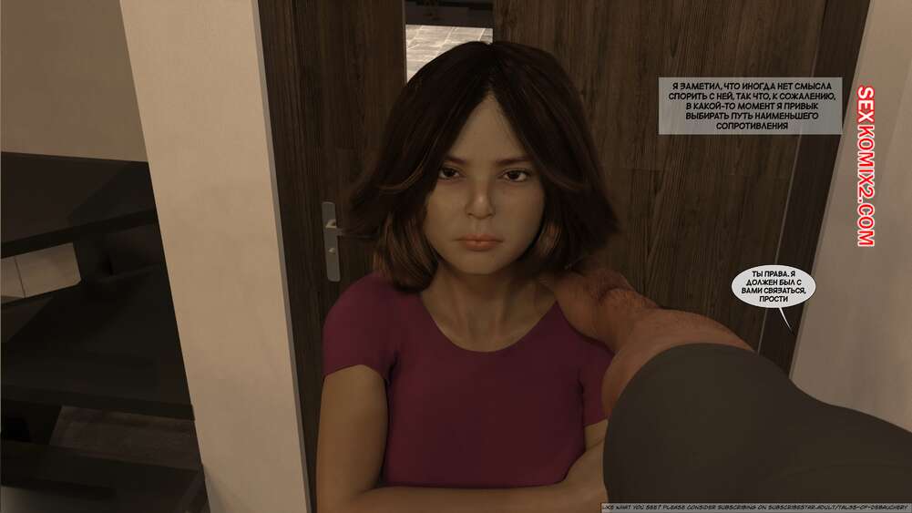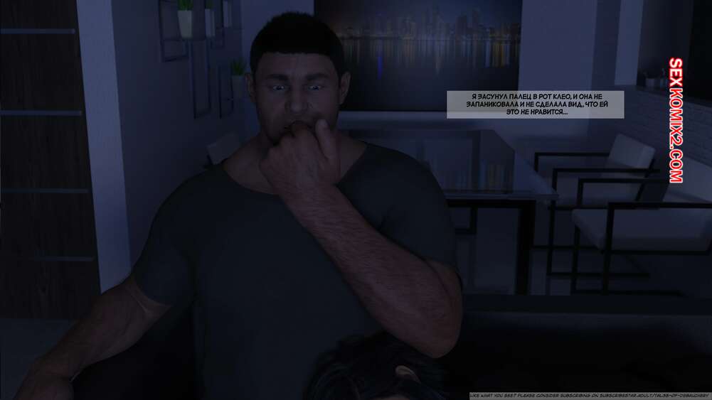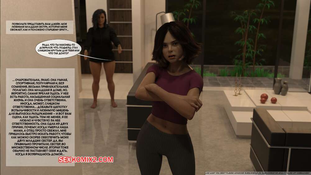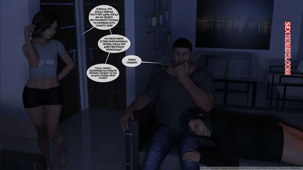 Порно комикс Запретные плоды. Часть 1. Forbidden Fruits. Tal3s of Debauchery. Мужик живет в одном доме со своими горячими сестрами. Красотки ходят перед ним в сексуальных нарядах и постоянно вызывают у него возбуждение. Одна из девушек решила подразнить братика и легла ему на колени, после чего стала сосать его палец.