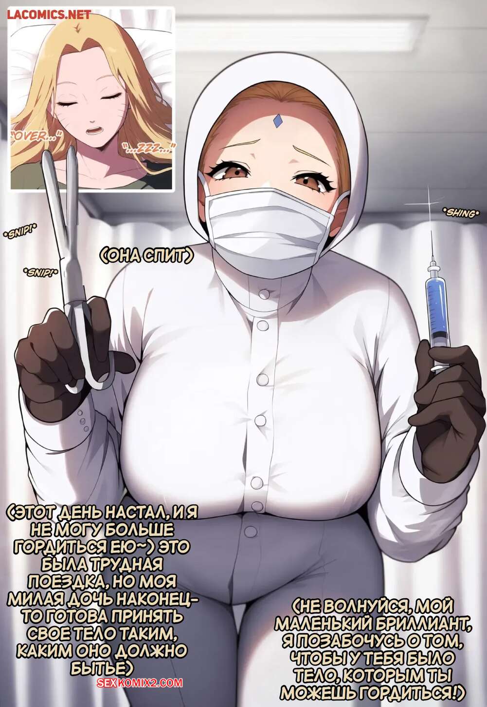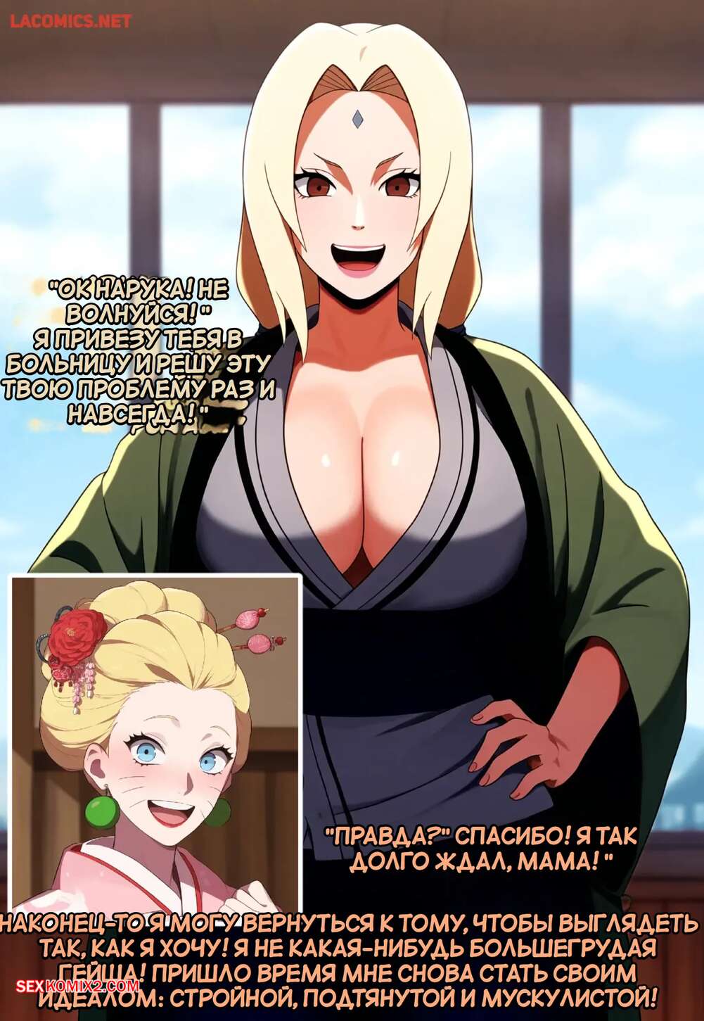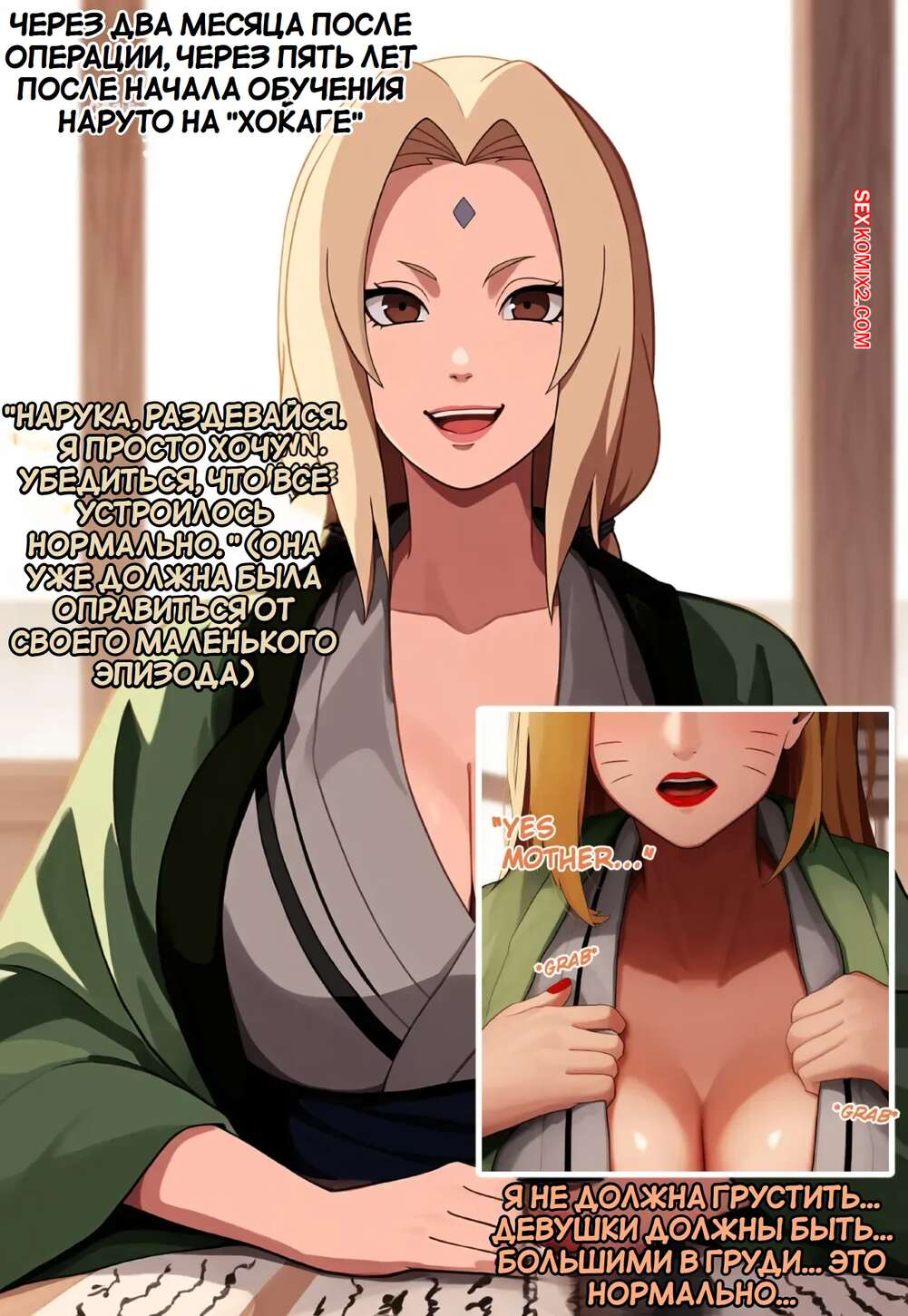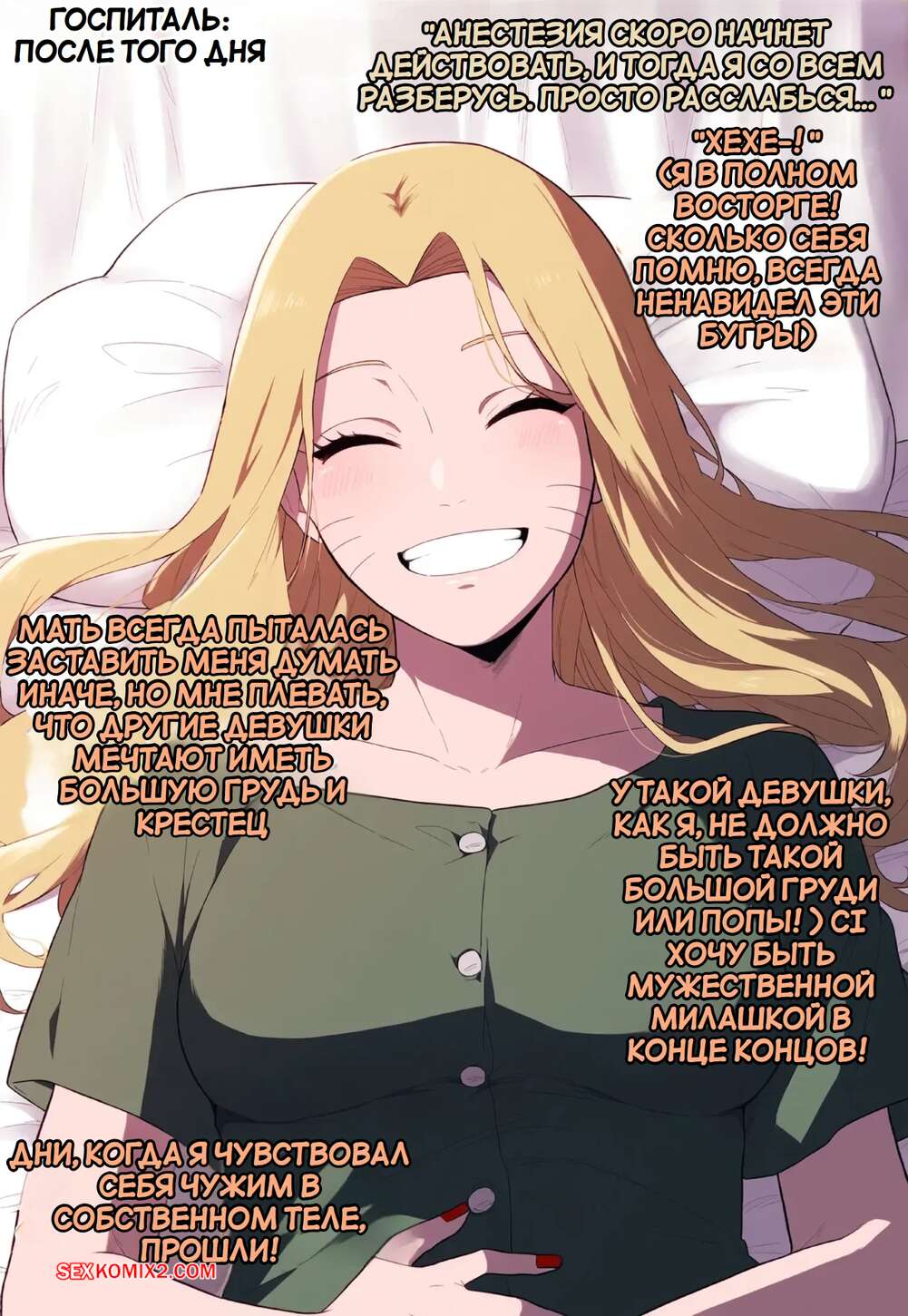 Порно комикс Наруто. Специальная тренировка Цунадэ. Часть 5. Novel Chef Трансформация Наруто в сексуальную девушку продолжается. Ему купили одежду и сделали прическу, после чего девушка отправилась на прием к врачу, которая увеличила Наруто сиськи.