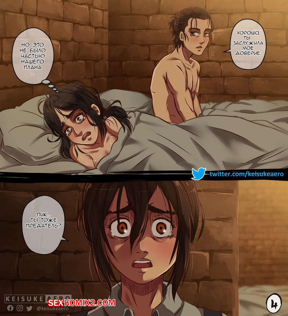 Порно комикс Атака Титанов. Эрен и Пик. Девушка захотела перейти на сторону парня, но он должен был проверить ее, чтобы ей доверять. Тогда он потребовал от нее, чтобы она ему отсосала, а затем для полного доверия он еще ее и выебал в обе дырочки, а затем обильно кончил на ее лицо.