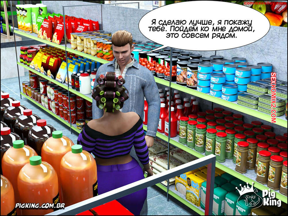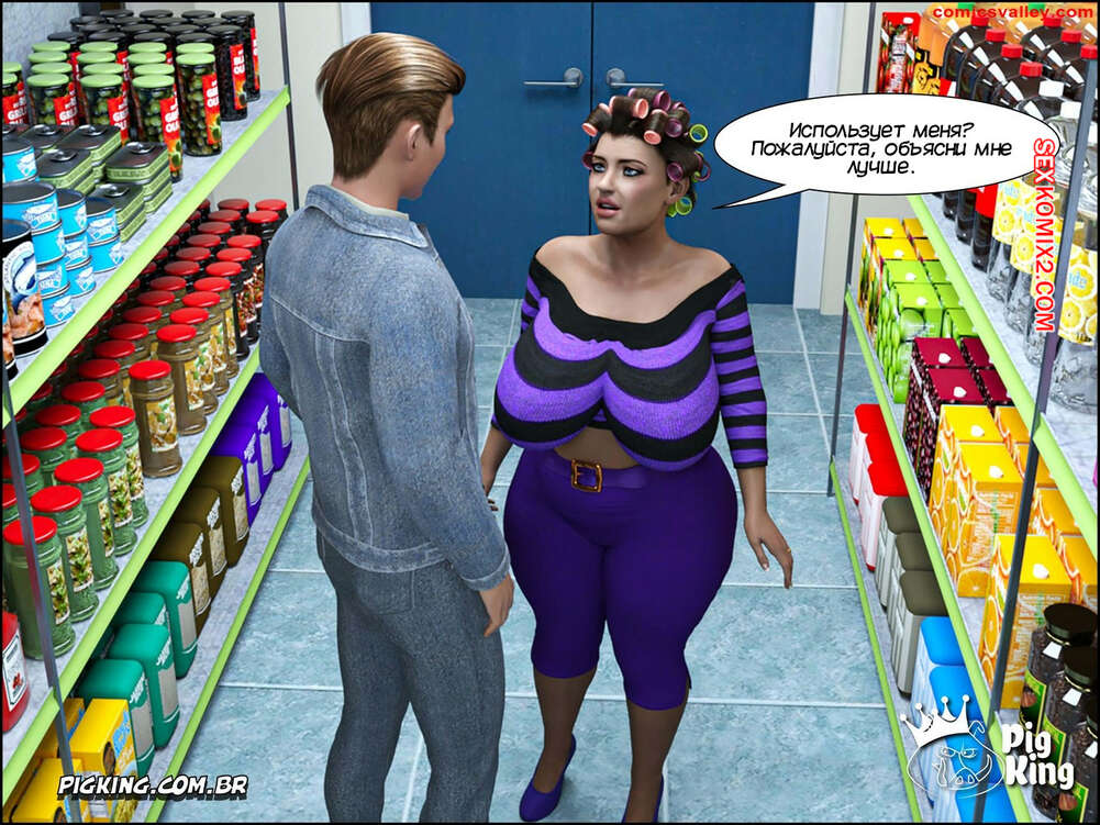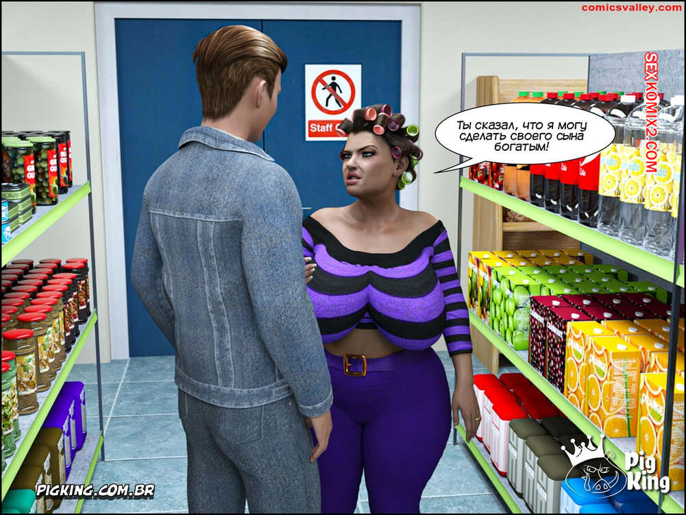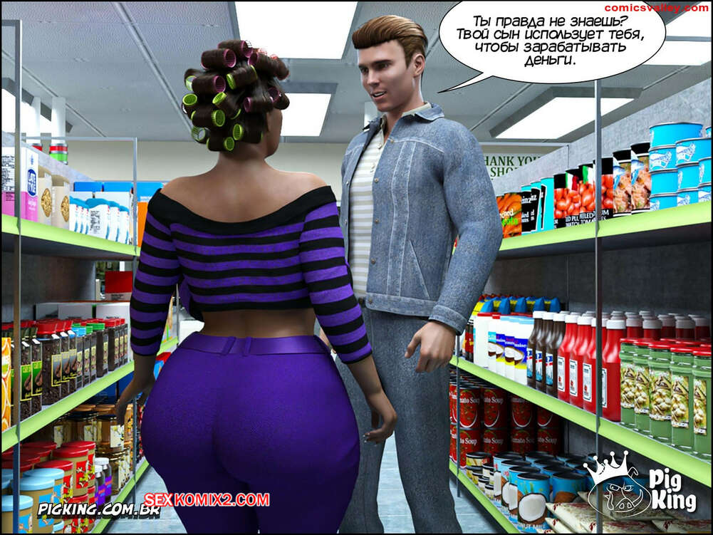 Порно комикс Гаммер. Часть 23. Gammer. PigKing Ольга отправилась в магазин, где ее узнал очередной фанат. Он рассказал красотку о проекте ее сына, а она его отблагодарила, позволив пареньку трахнуть свою пизденку.