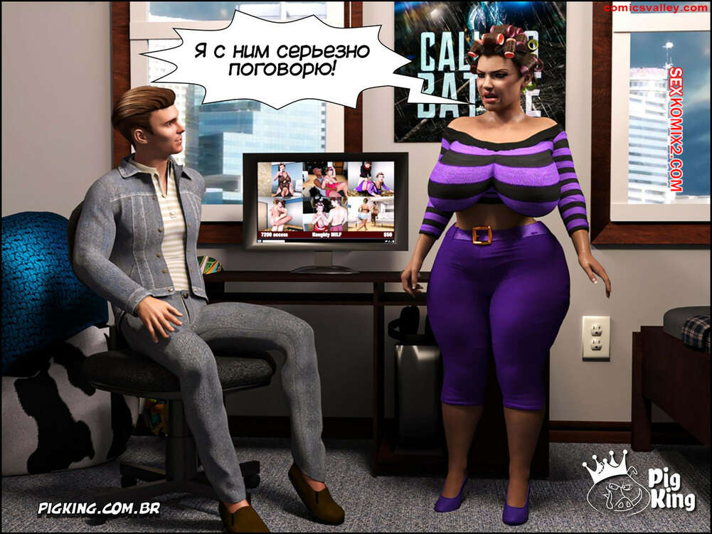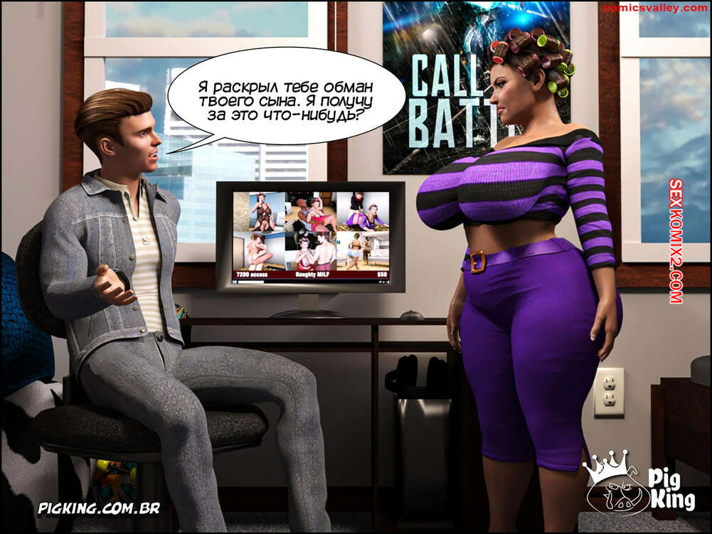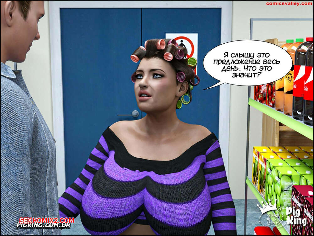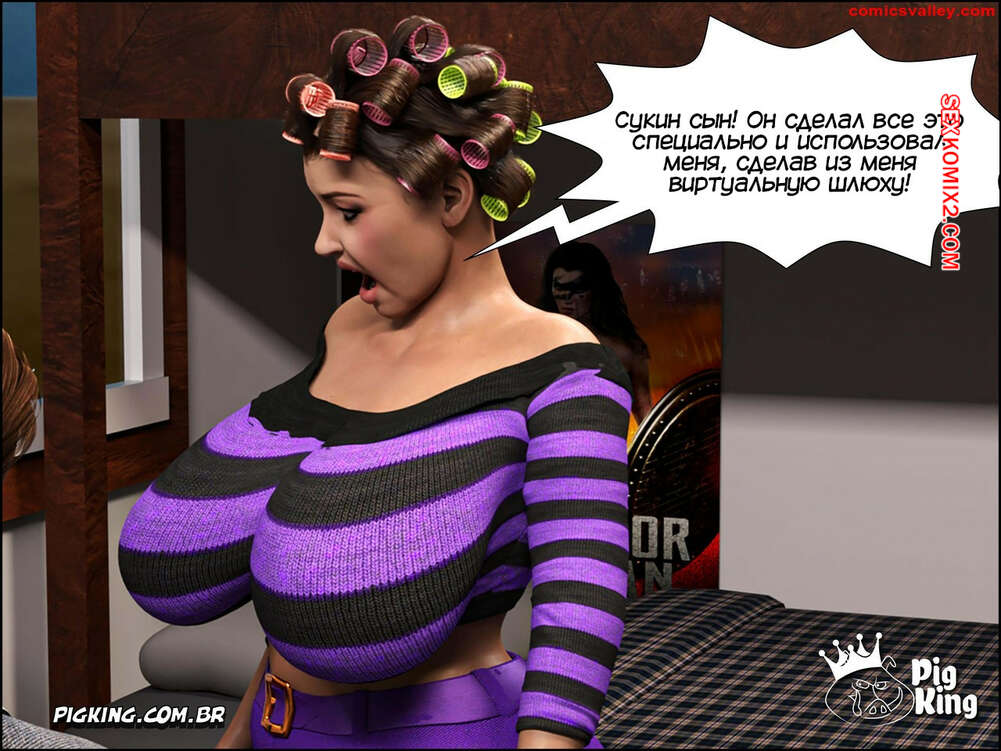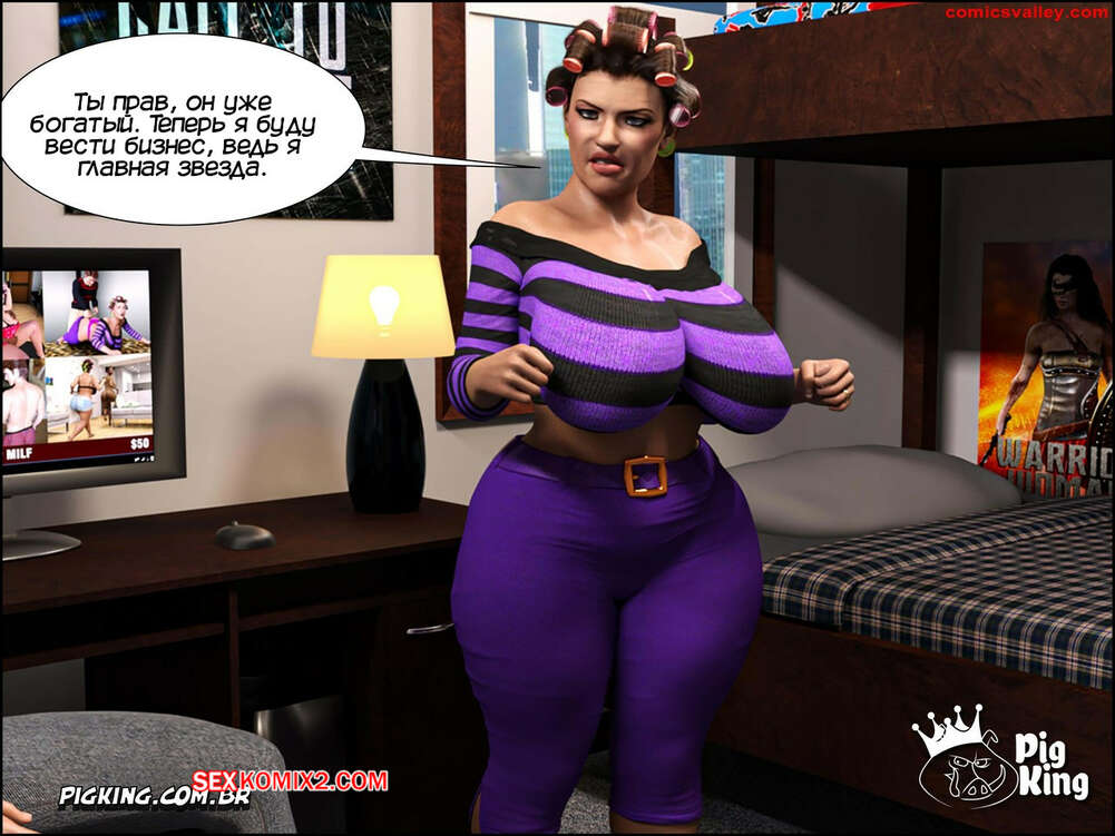 Порно комикс Гаммер. Часть 23. Gammer. PigKing Ольга отправилась в магазин, где ее узнал очередной фанат. Он рассказал красотку о проекте ее сына, а она его отблагодарила, позволив пареньку трахнуть свою пизденку.