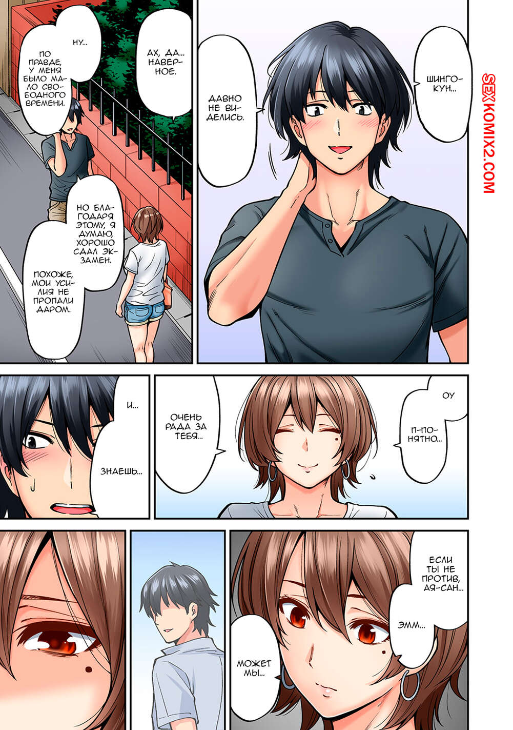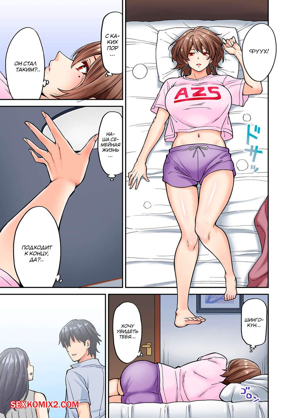 Порно комикс Массаж. Hatsujou Munmun. Часть 7 Милфа с утра готовила завтрак своему мужу, но он спешил на работу. Она отправилась в свою комнату, размышляя о ее семейной жизни. Она стала думать о своем юном соседе, с которым незабываемо трахалась. Не заметив этого, зрелая красотка стало яростно дрочить свою пизду, представляя в ней огромный член юного соседа.