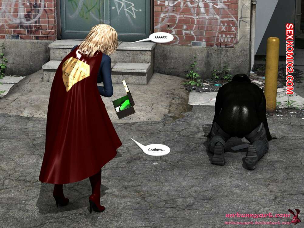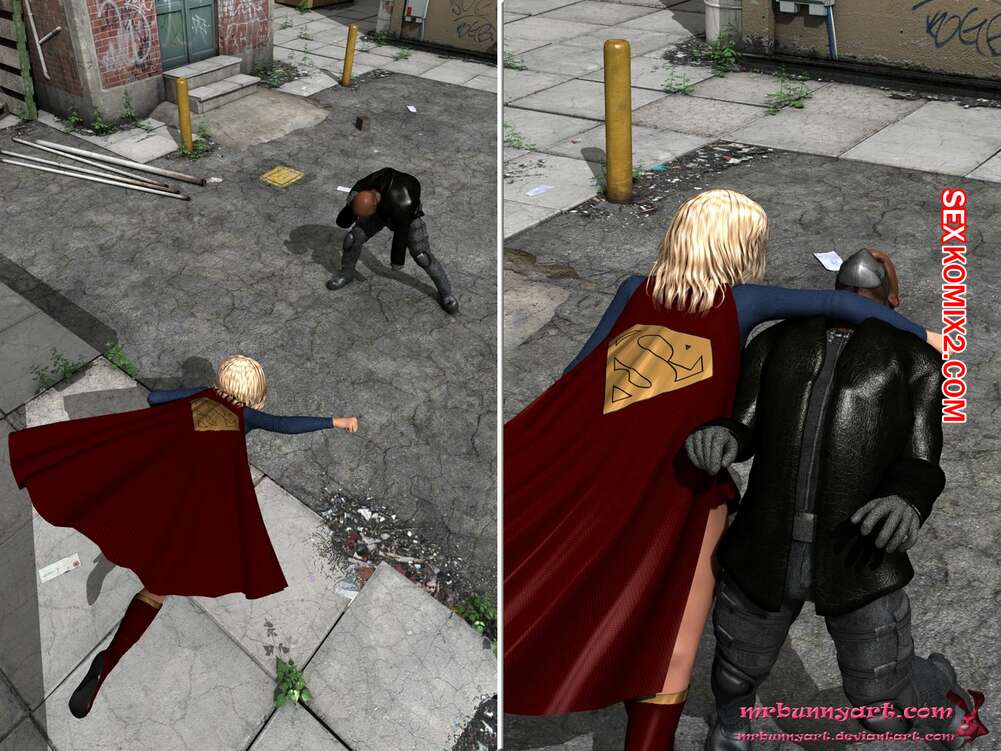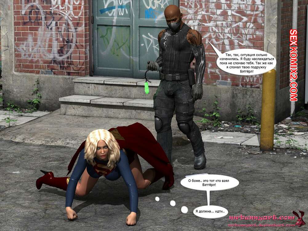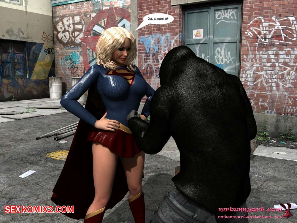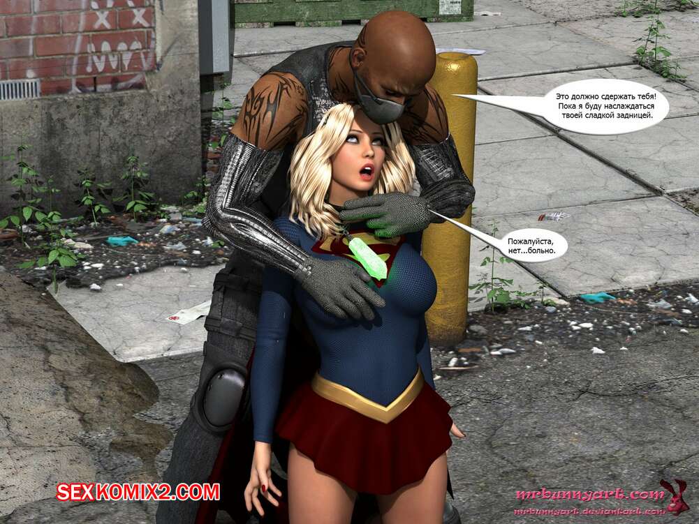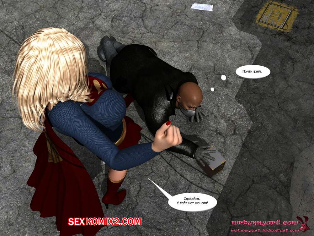 Порно комикс Supergirl vs Cain. MrBunnyArt Черный парень подстроил нападение на девушку, чтобы сразиться с Супергерл и ослабить ее при помощи криптонита. Он взял ее в плен и выебал ее своим огромным хуем, кончив ей на сиське. Затем он продал ее Лексу Лютору за огромные бабки и наслаждался шикарной жизнью.