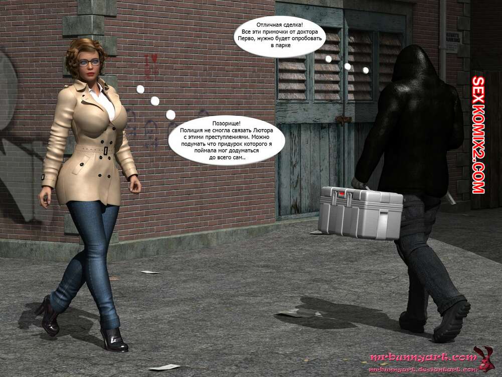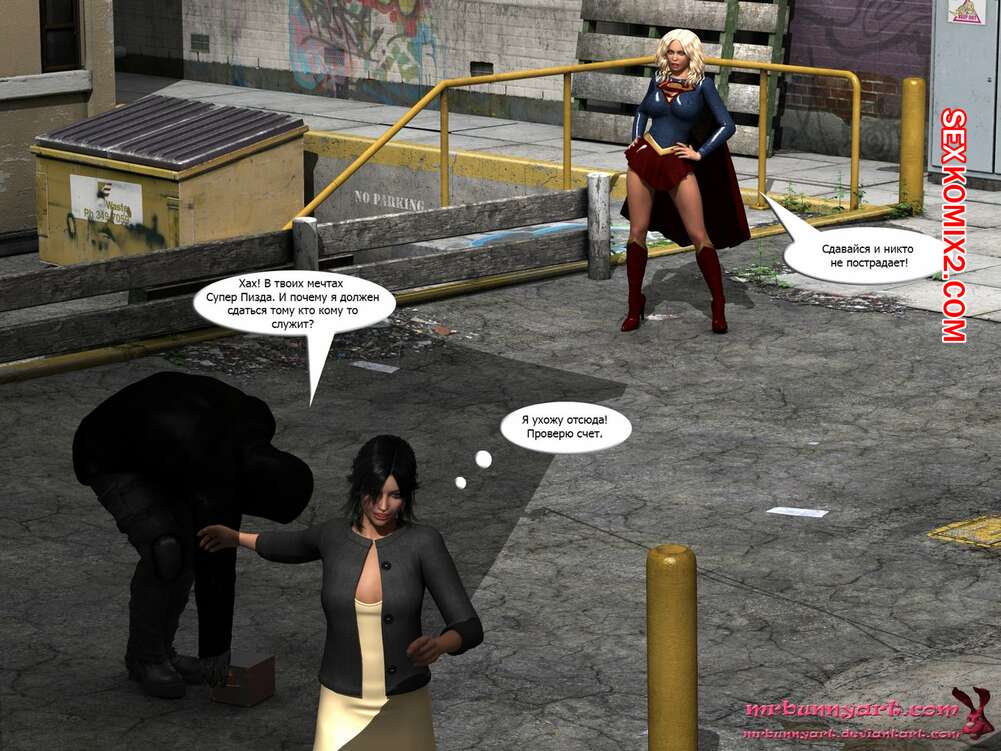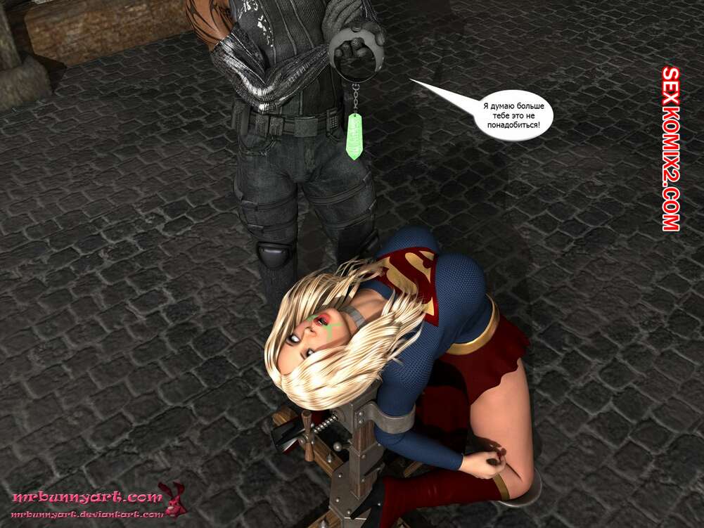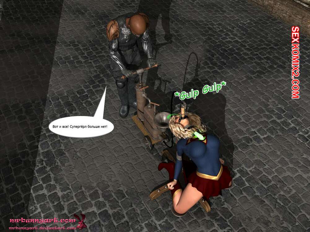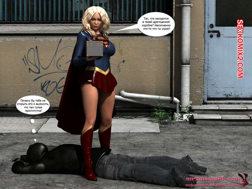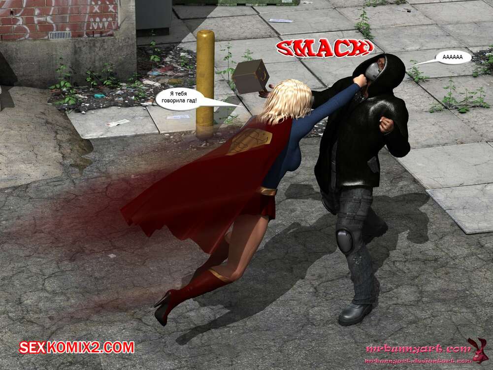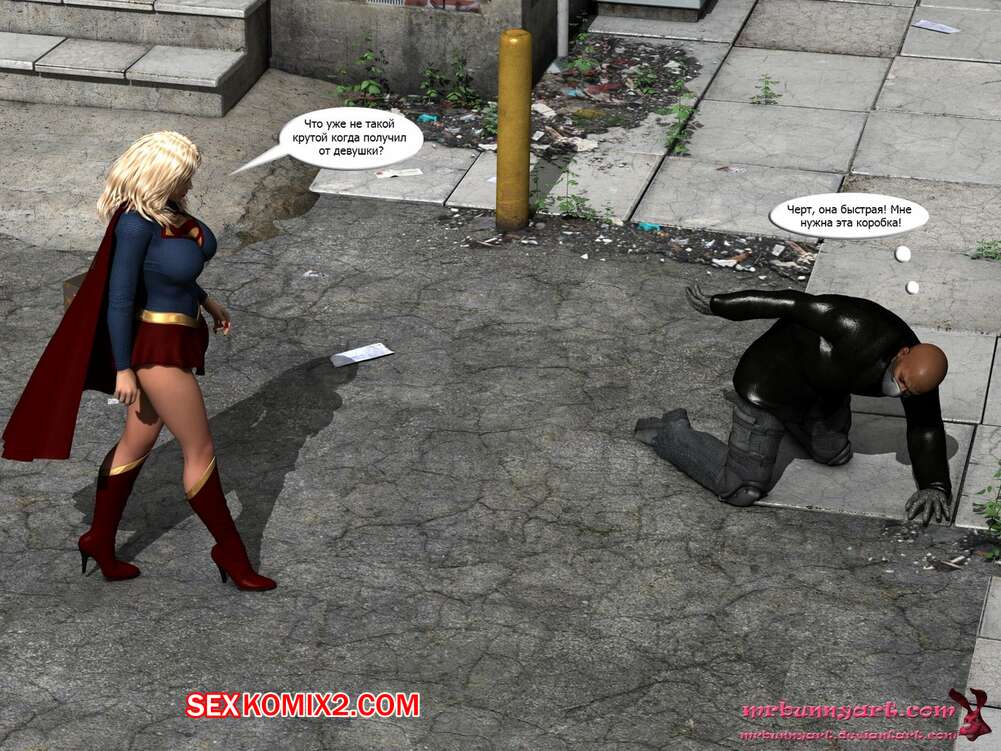 Порно комикс Supergirl vs Cain. MrBunnyArt Черный парень подстроил нападение на девушку, чтобы сразиться с Супергерл и ослабить ее при помощи криптонита. Он взял ее в плен и выебал ее своим огромным хуем, кончив ей на сиське. Затем он продал ее Лексу Лютору за огромные бабки и наслаждался шикарной жизнью.