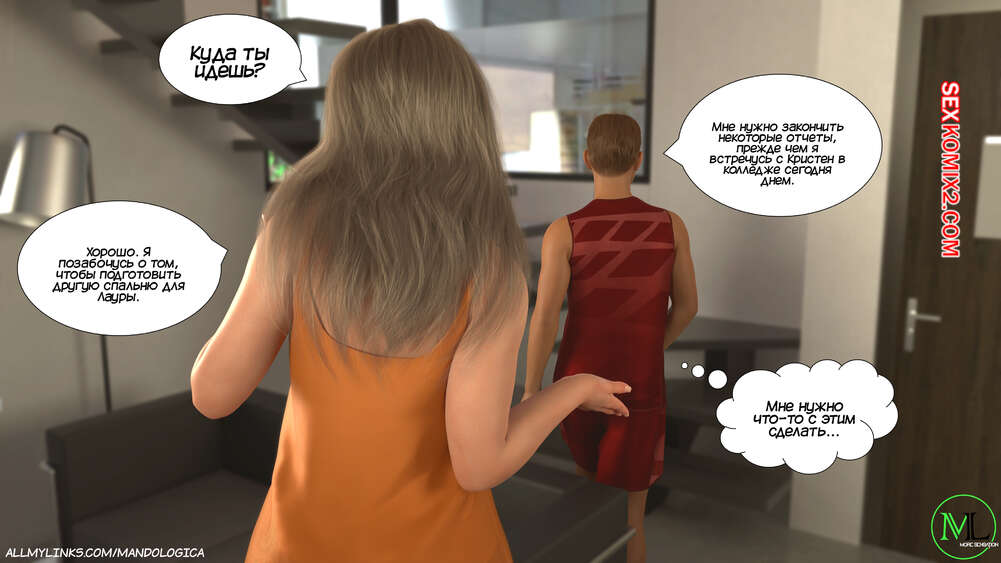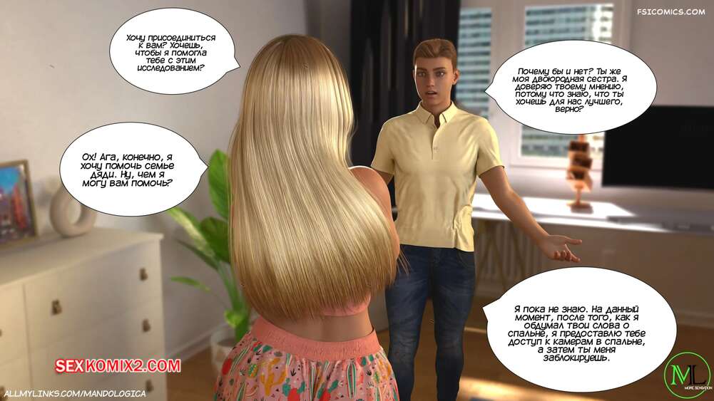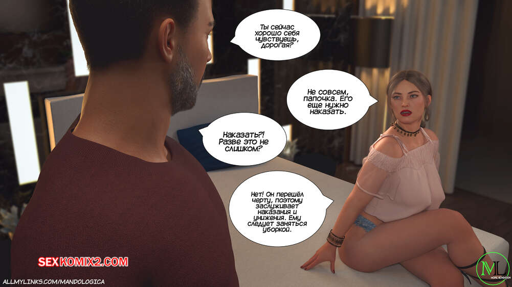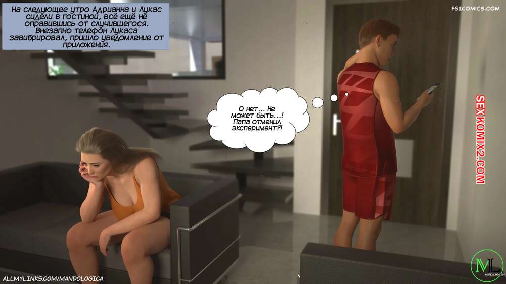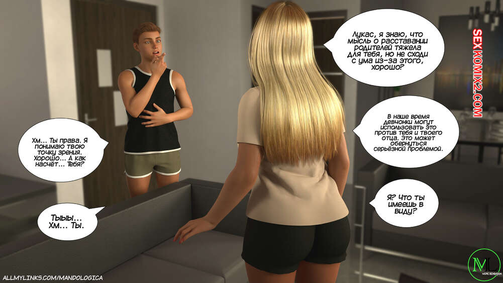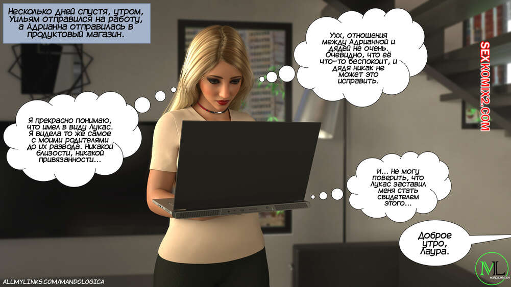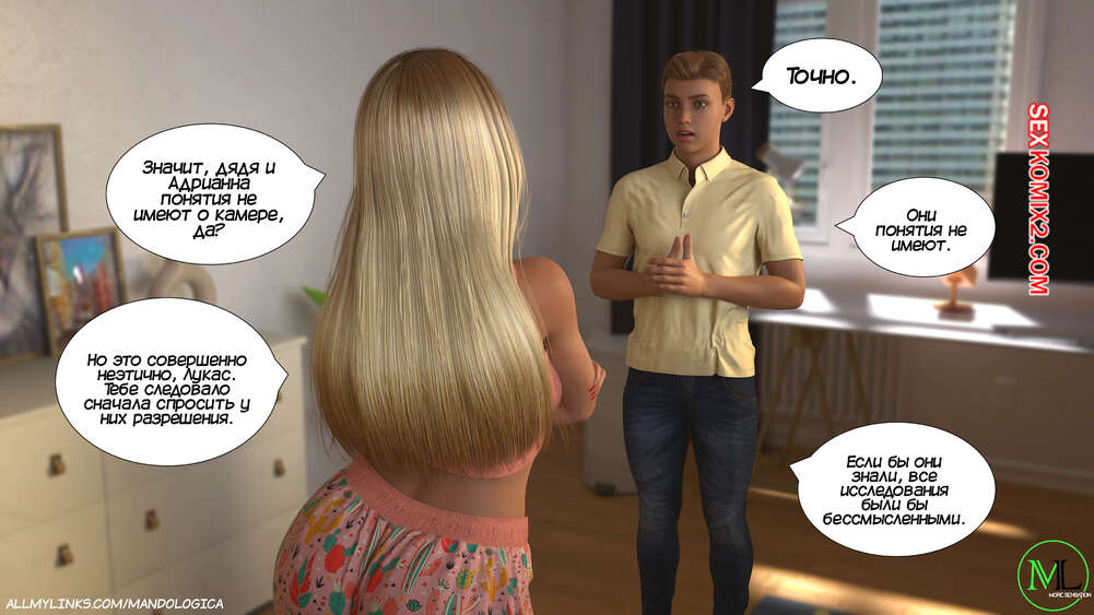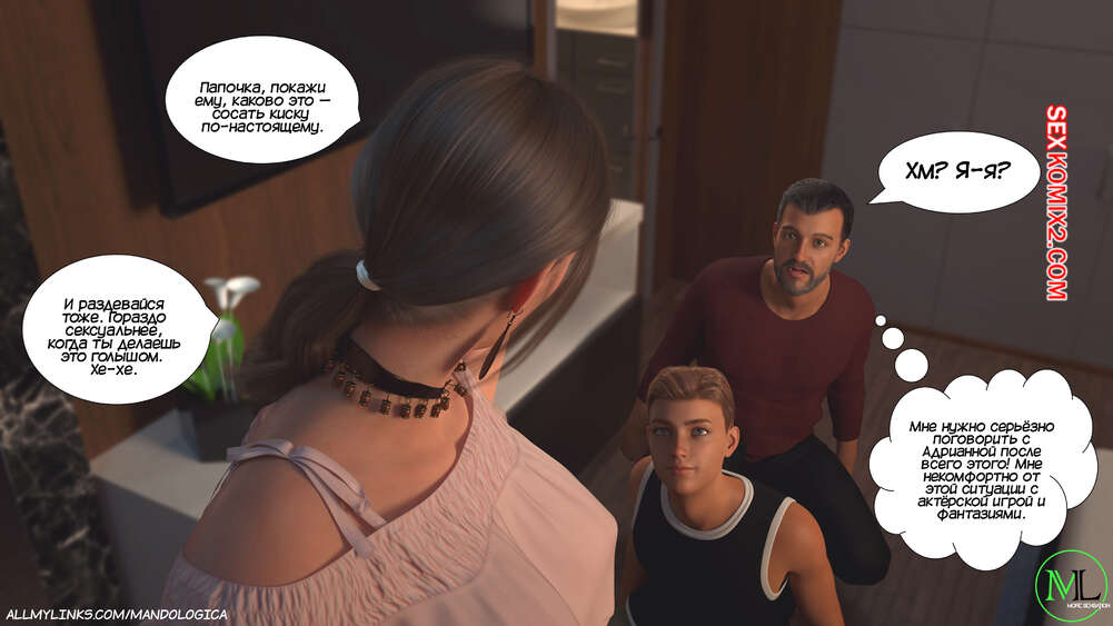 Порно комикс Разрушение границ. Часть 11. Breaking Boundaries. MandoLogica Лукас беспокоится о том, что приезд его кузины может помешать их семейным отношениям. Он придумаывает план, как убедить отца продолжить эксперимент. Когда Уильям вернулся домой с работы, его горячая жена Адрианна ждала мужа в комнате в сексуальном образе девушки подростка.