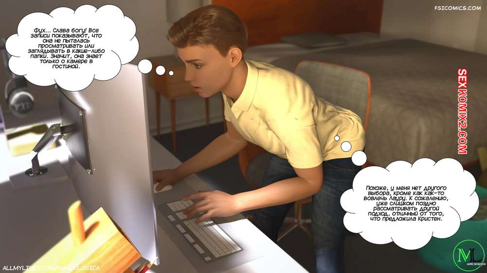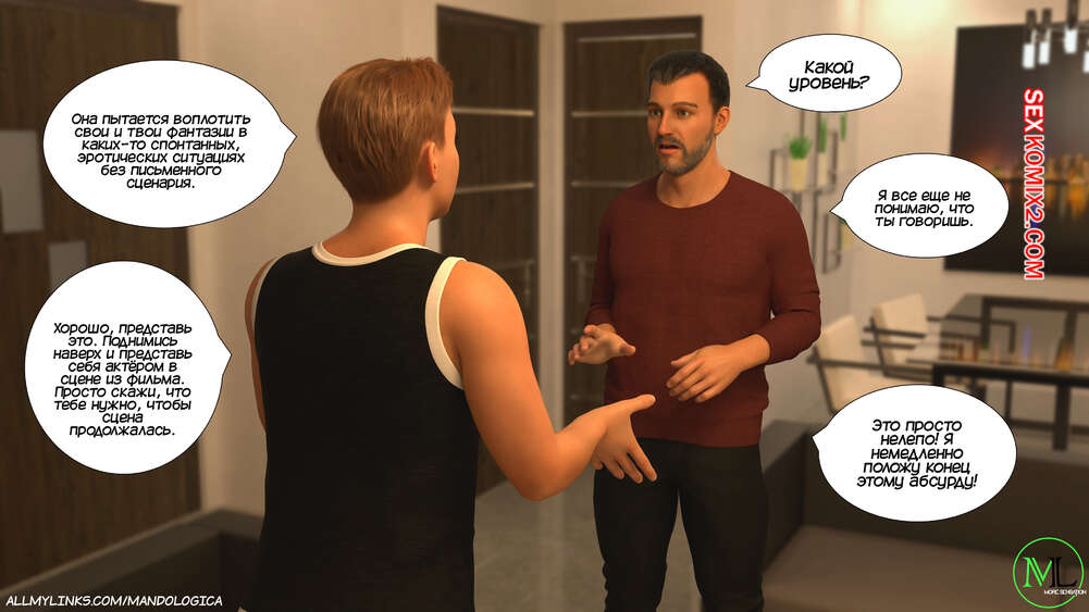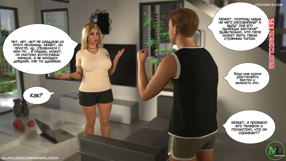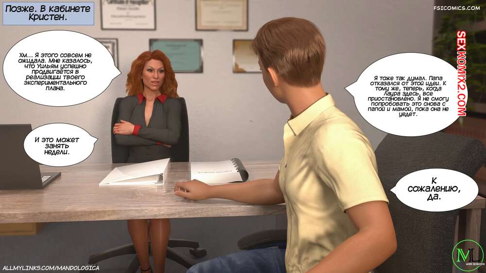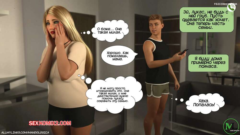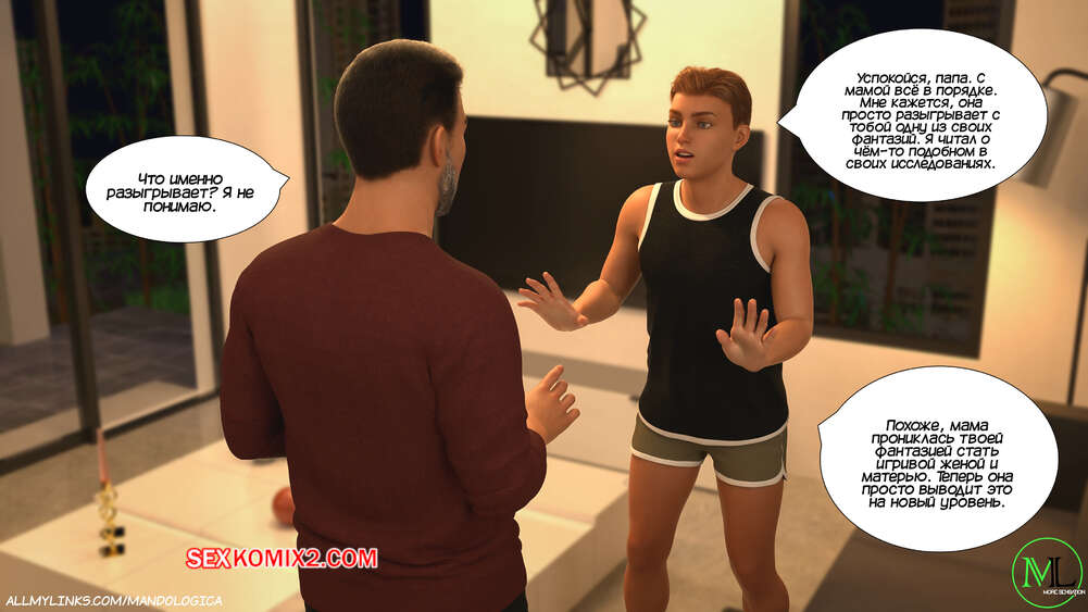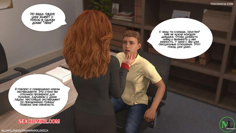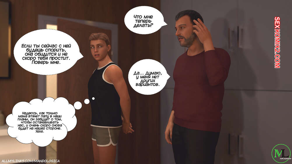 Порно комикс Разрушение границ. Часть 11. Breaking Boundaries. MandoLogica Лукас беспокоится о том, что приезд его кузины может помешать их семейным отношениям. Он придумаывает план, как убедить отца продолжить эксперимент. Когда Уильям вернулся домой с работы, его горячая жена Адрианна ждала мужа в комнате в сексуальном образе девушки подростка.
