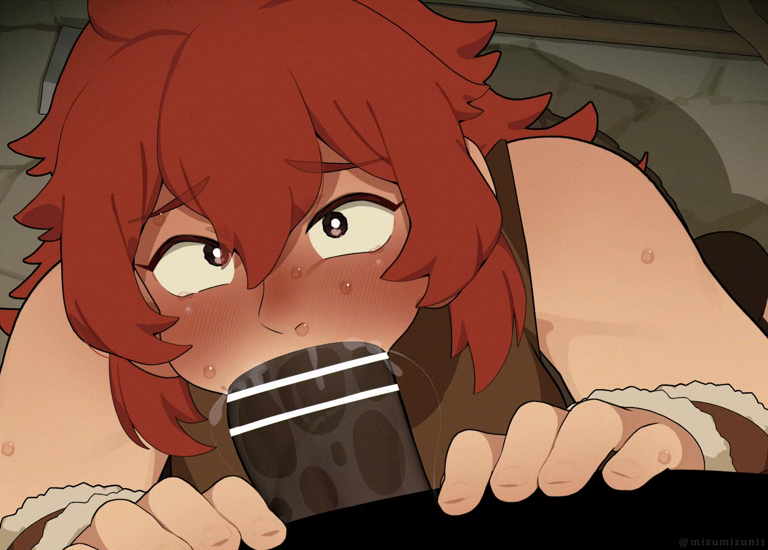 Порно комикс Mizumizuni. Namari. Намари Рыжая красотка не смогла устоять перед огромным членом своего дружка. Она встала на колени и стала у него отсасывать, после чего он кончил ей в ротик, получив наслаждение.