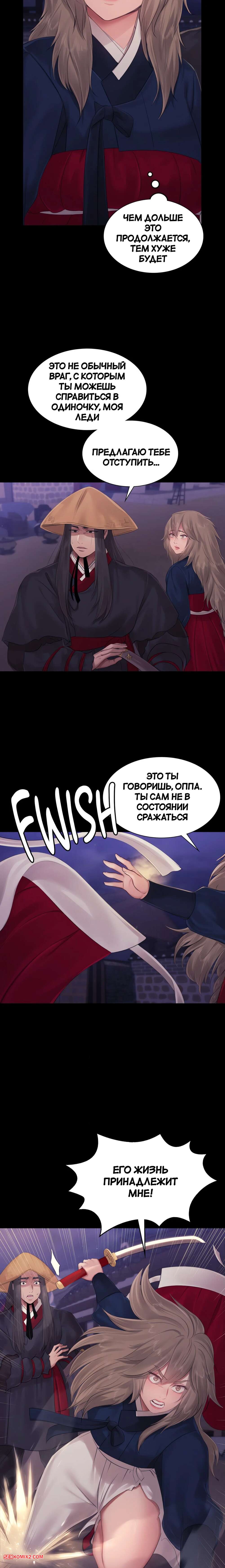 Порно комикс Госпожа. Часть 131. Madam Горячая брюнетка не может оставить паренька одного в битве против злодея. Она берет в руки меч и тоже начинает сражение, но парень просит ее остаться в стороне.
