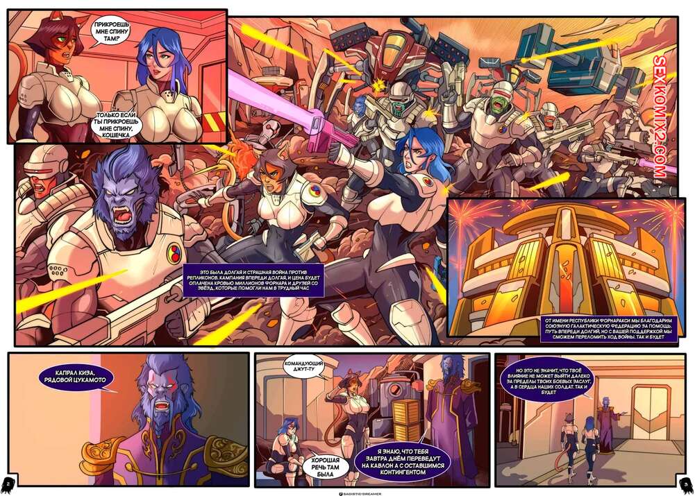 Порно комикс Yuki Space Assassin. Секс бомбы. Bombshells. SkyFantasy. Две горячие подруги решили расслабиться после тяжелой космической миссии. Они разделись и позвали к себе в каюту толпу парней, чтобы устроить оргию с окончанием внутрь.