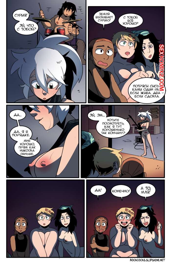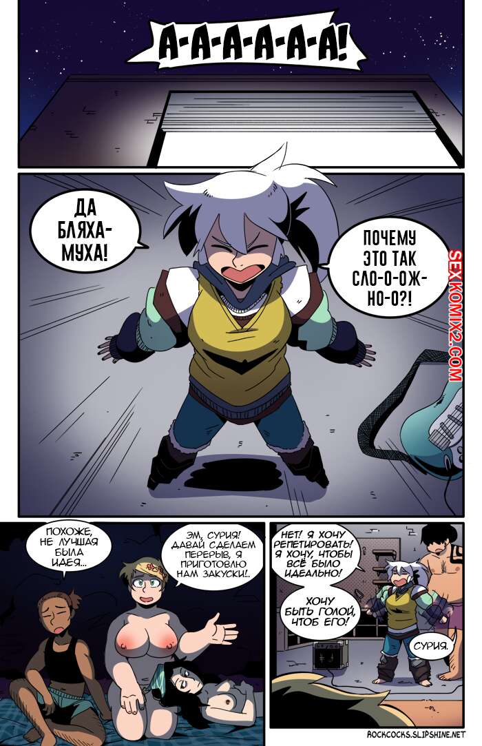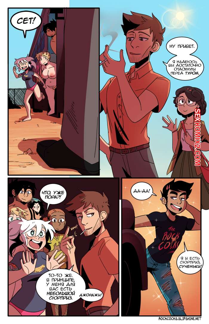 Порно комикс Рок хуй. The Rock Cocks. Часть 11. Облом В перерыве от своих музыкальных дел ребята искали способ хорошенько повеселиться. Две парочки нашли его и решили устроить парную еблю любуясь тем, как ебутся другие. Пока они ебались, за ними следил их дружок, наслаждаясь и подрачивая свой хуй, будучи в полном восторге от увиденного.