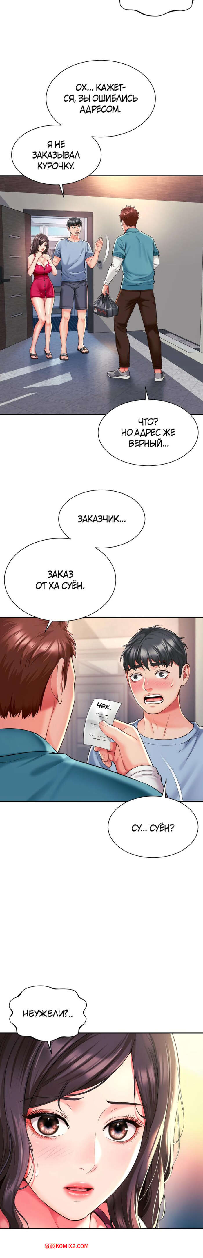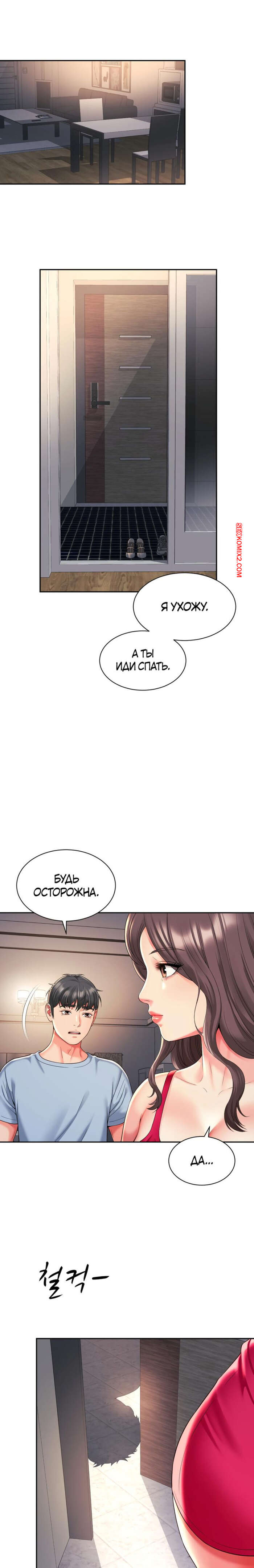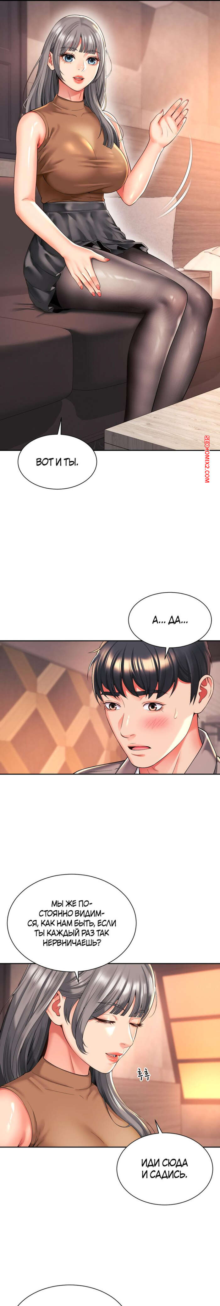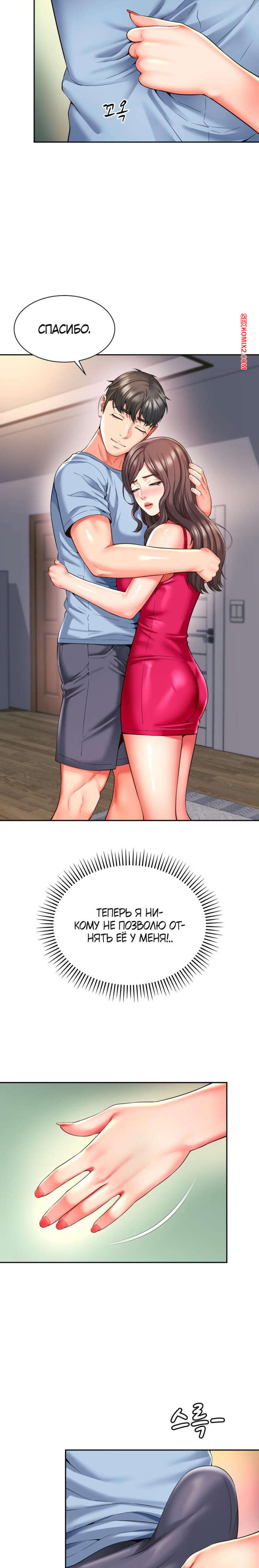 Порно комикс Его мама моя. Часть 45 и 46 и 47. Friend Mom and friend fuck Парнишка увидел горячую брюнетку в сексуальном красном платье и у него быстро возник стояк. Девушка это заметила и стала ласкать руками хуец парня. Брюнеточка уложила партнера на кровать и стала сосать его член, после чего села на него влажной киской и дала себя выебать.