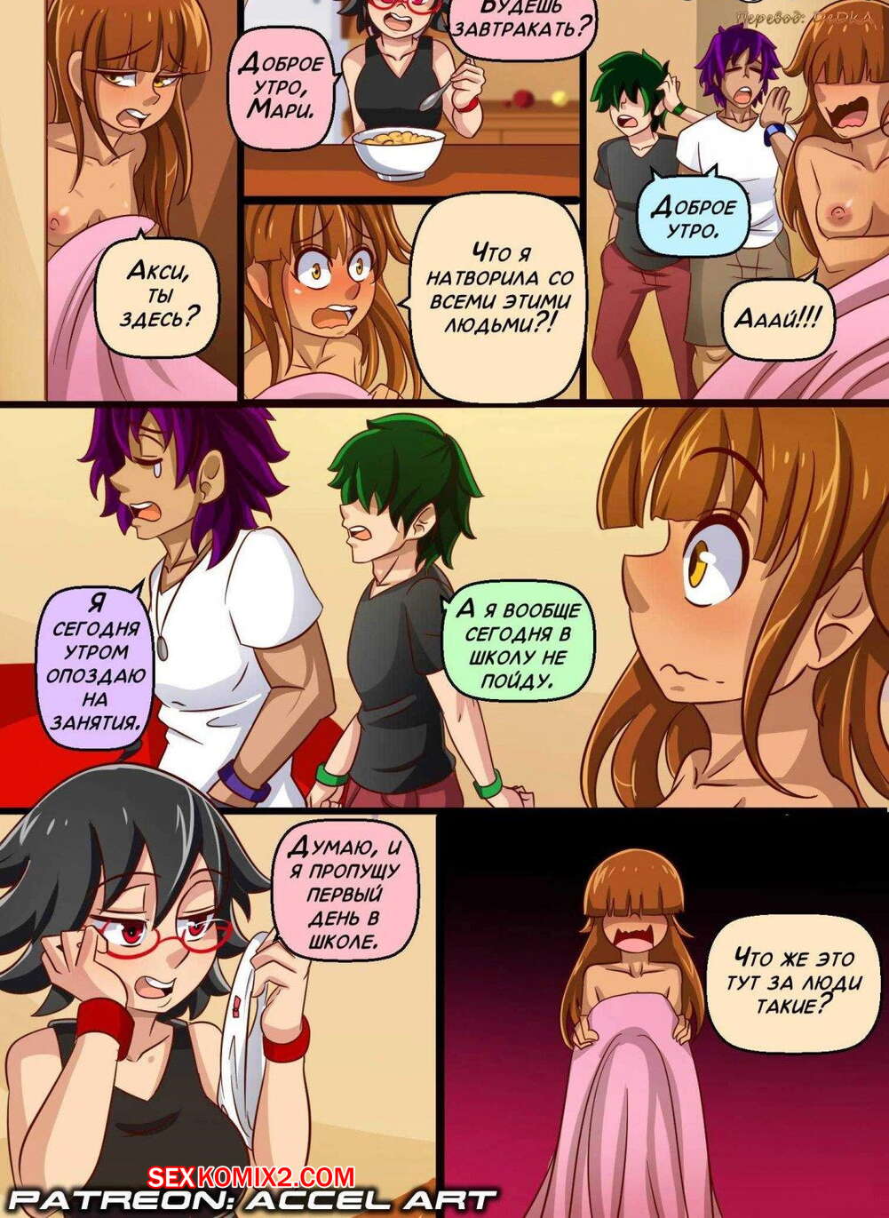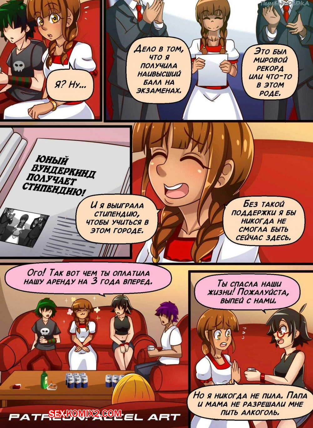 Порно комикс Истории Акси. Часть 1. Студентка Невинную девушку поселили в общежитие, где кроме нее жили еще два парня и две девушки. В первую ночь они решили познакомиться и выпить пива. В итоге все это переросло в групповуху из пяти человек и юная красотка наконец лишилась девственности.