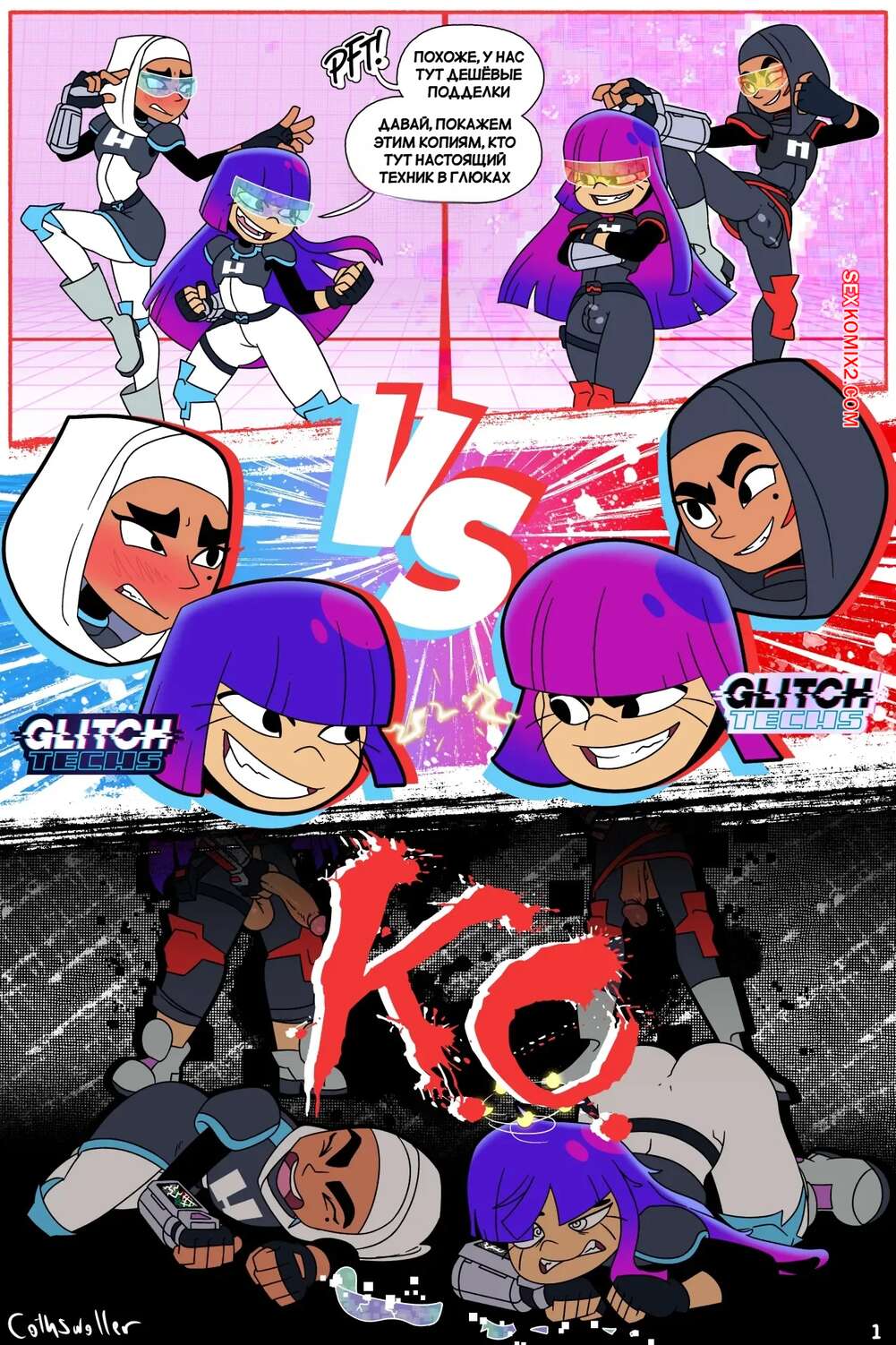 Порно комикс Glitch Techs. Зеркальный матч. Победитель получает все. cothswoller. Две пары девушек вступили в схватку, чтобы выяснить кто из них сильнее. Две девушки с большими хуями уложили на пол свои меньшие копии и хорошенько их выебали, доставив множество оргазмов и оставив их без сил.