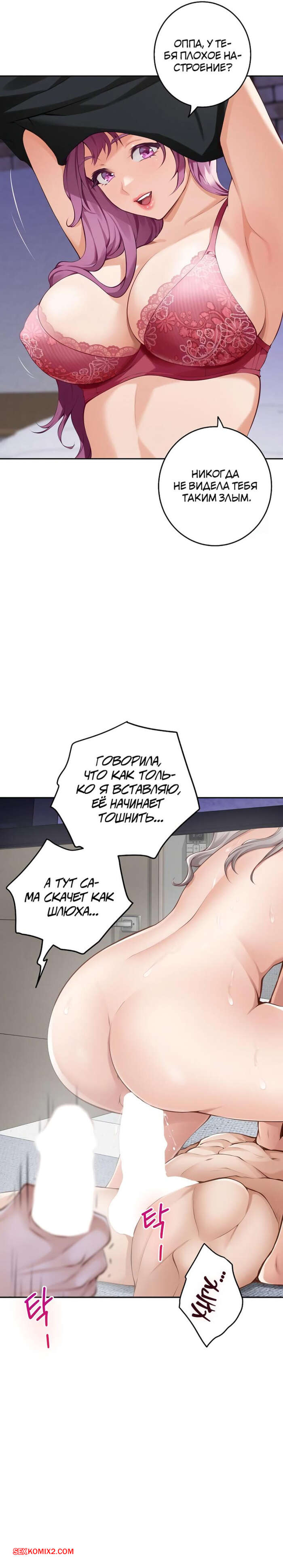Порно комикс Бог удовольствий. Часть 45 и 46 и 47. kwaelag ui sin Парень с девушкой встретились после долгой разлуки и поспешили наверстать упущенное. Красотка осталась в белье и парень стал ласкать ее большие сиськи, посел чего все с нее снял и усадил девушку на свой член.