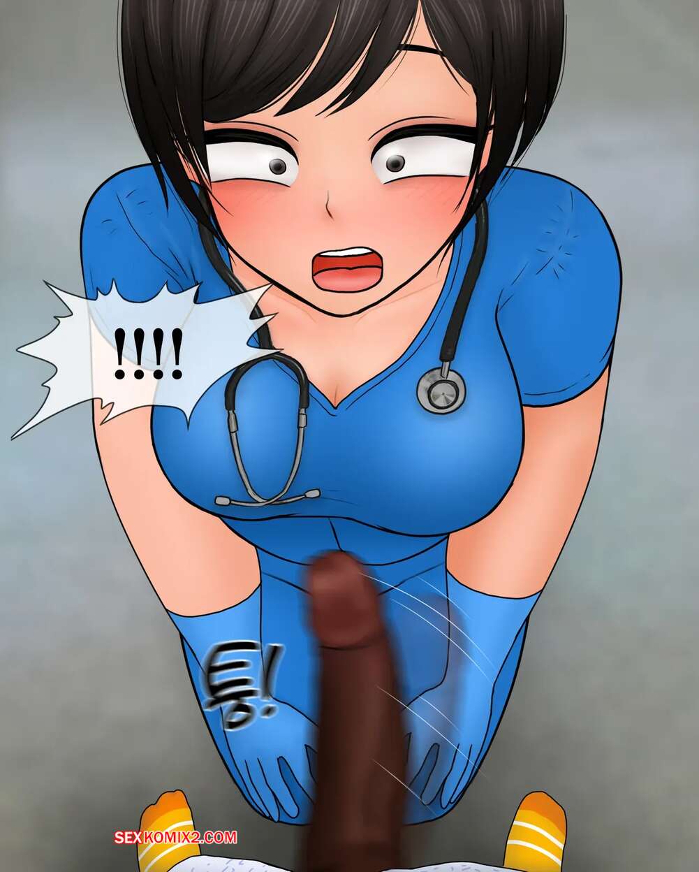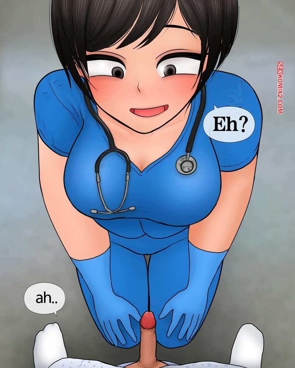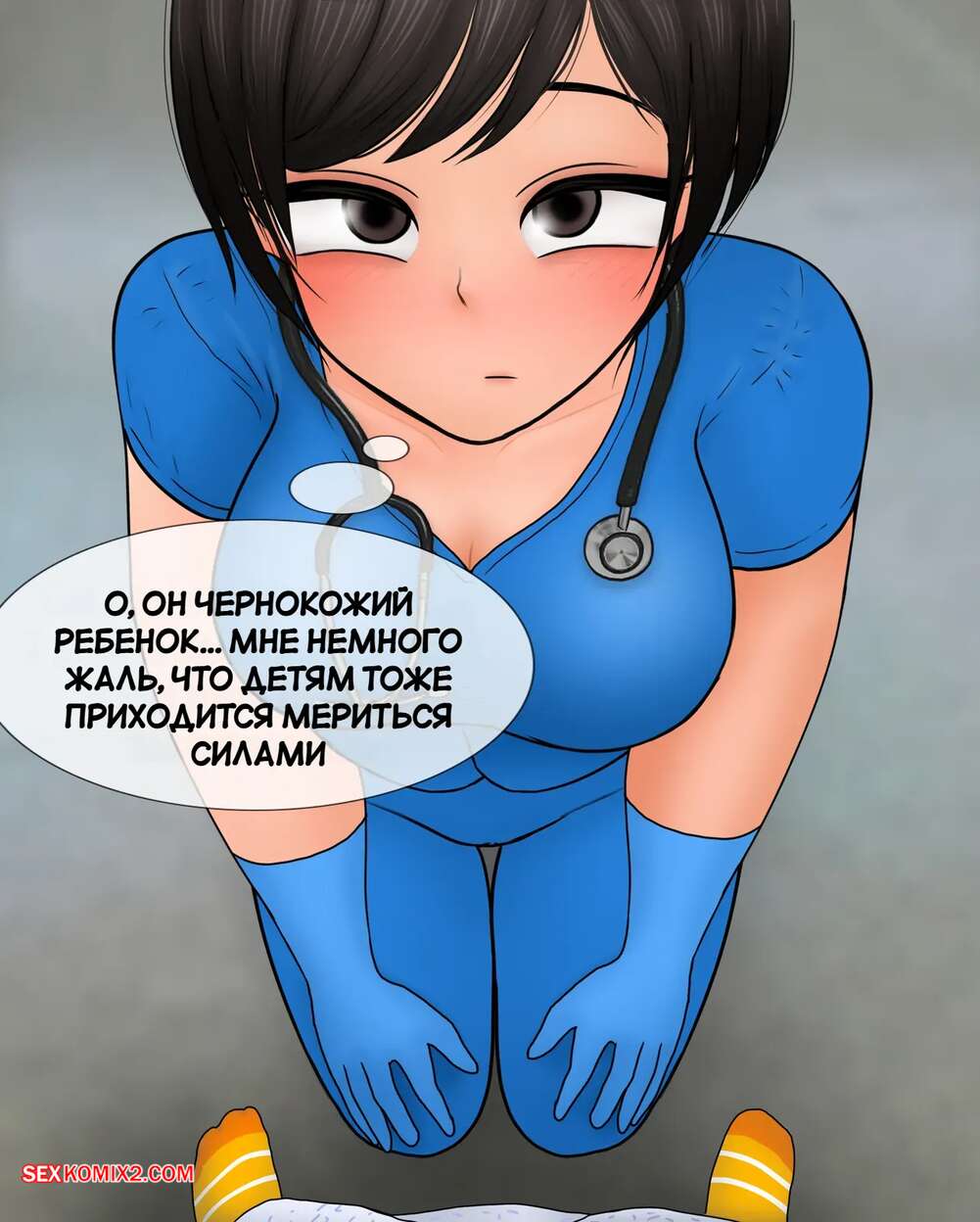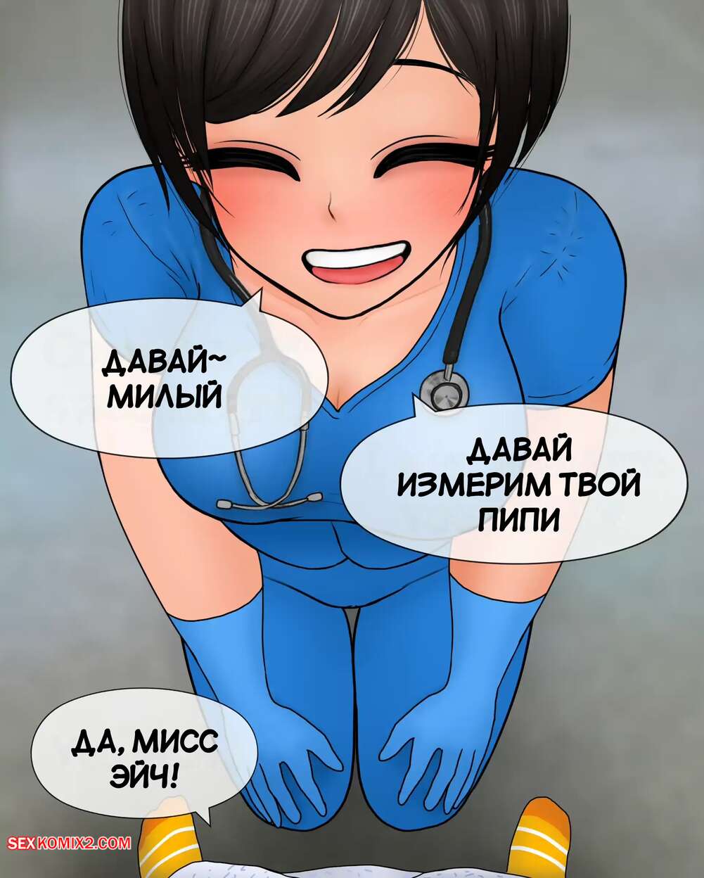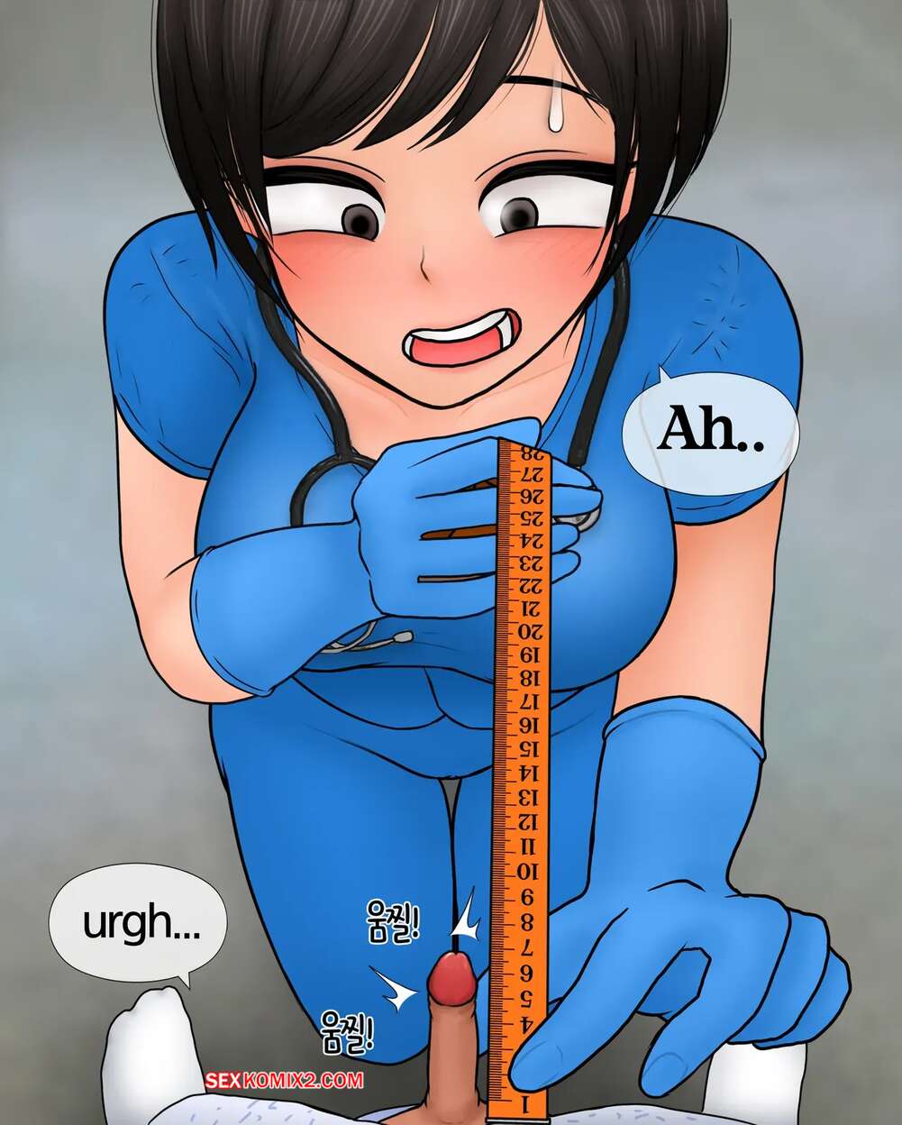 Порно комикс Медсестра замеряет размер пениса. Nurse measures penis size. Philia К горячей медсестре приходят молодые парни, чтобы измерить размер члена. Первый парнишка ее ничем не удивил, но когда к ней зашел темнокожий пацан, он вывалил перед красоткой свой огромный стояк, от чего у девушки потекли слюнки.