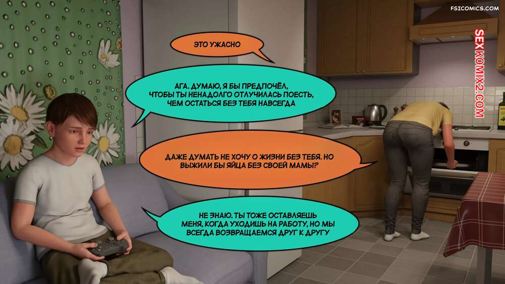 Порно комикс Безусловная любовь. Часть 1. Unconditional Love. Santo Fabbro Сексуальная брюнетка в одиночку воспитывает своего сына, который болен астмой. Парень много переживает изза своего состояния, но мамочка готова на все, чтобы утешить сына.