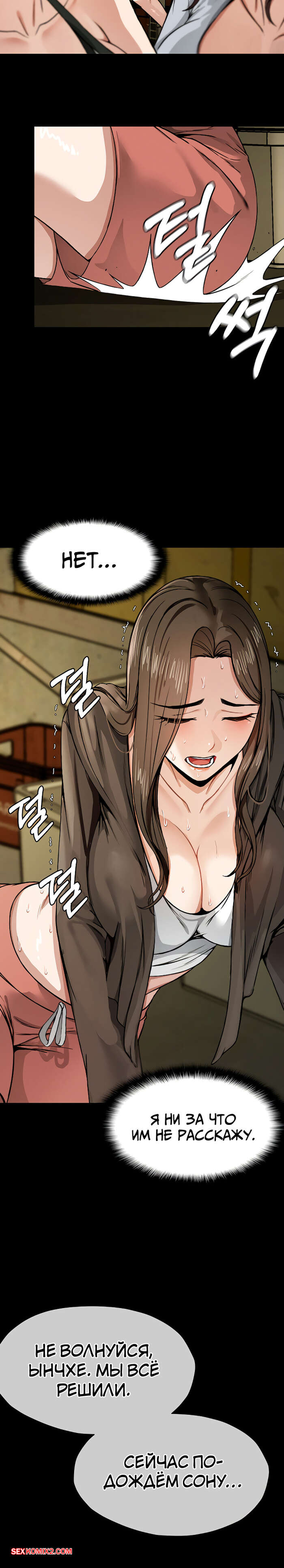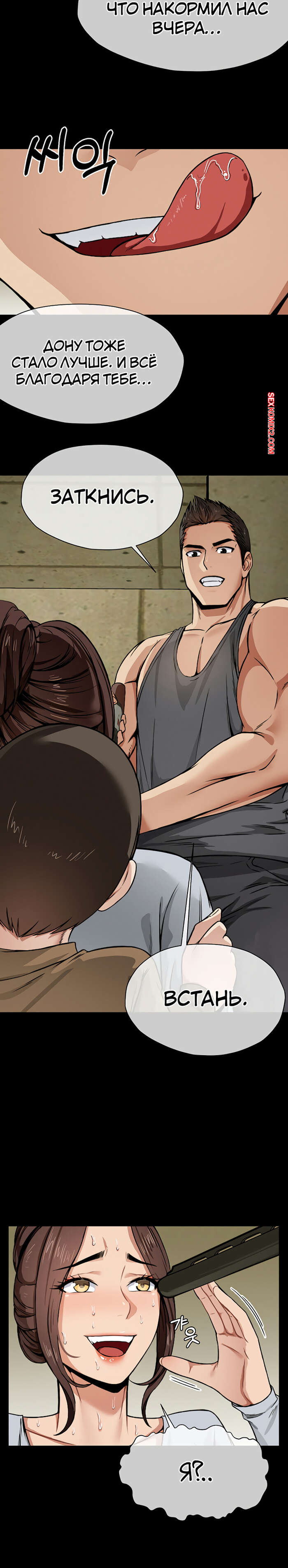 Порно комикс Рабы в зоне выживания. Часть 4 и 5 и 6. saengjonjiui noyedeul Возбудив красотку своим язычком, парень наконец достал свой член. Он трахает девушку в разных позах, заставляя ее кричать от удовольствия, после чего заполняет ее своей спермой.