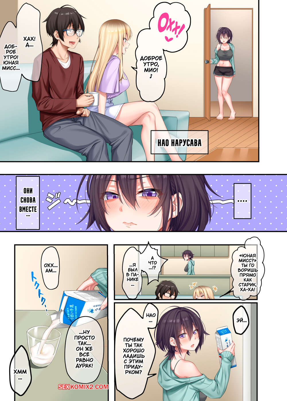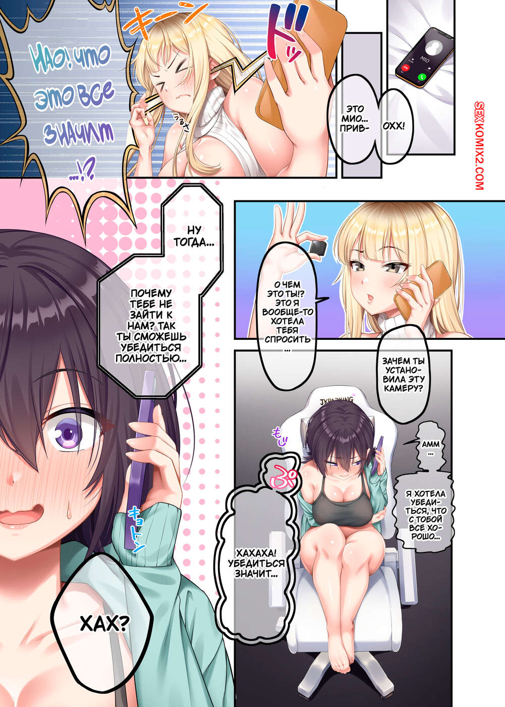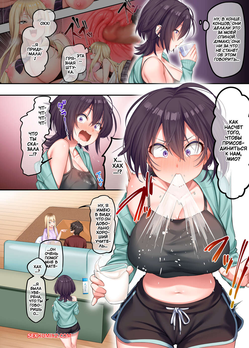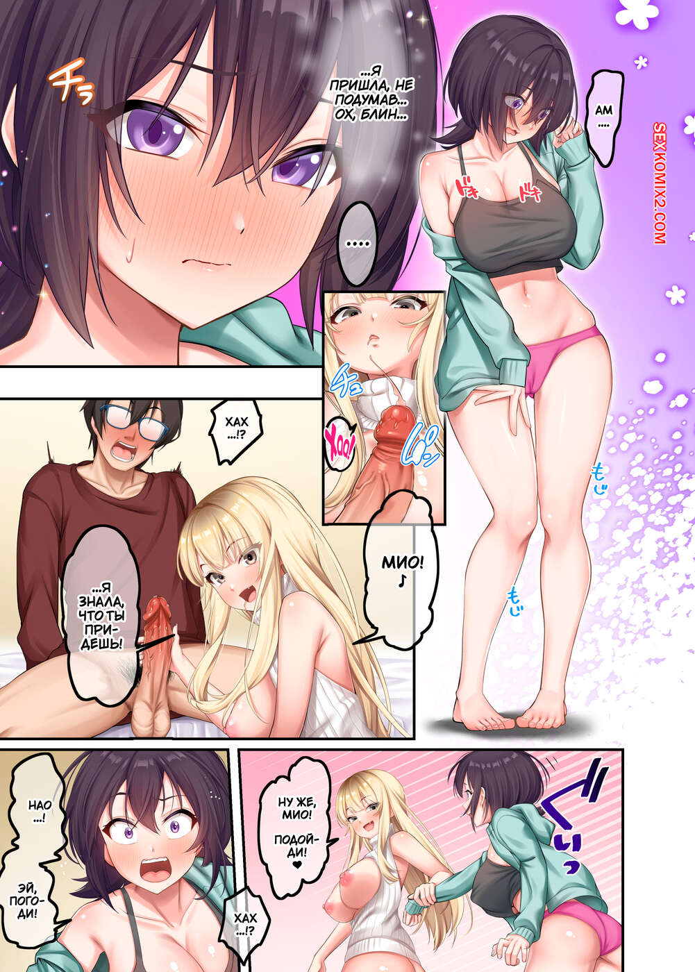 Порно комикс Домашние уроки с сексуальными Гяру. Часть 2. ONIBEN Katze Блондиночка надела сексуальный наряд, желая соблазнить соседского парня. Она стала ему отсасывать, после чего повела парня в комнату к своей сестренке, чтобы устроить групповуху.