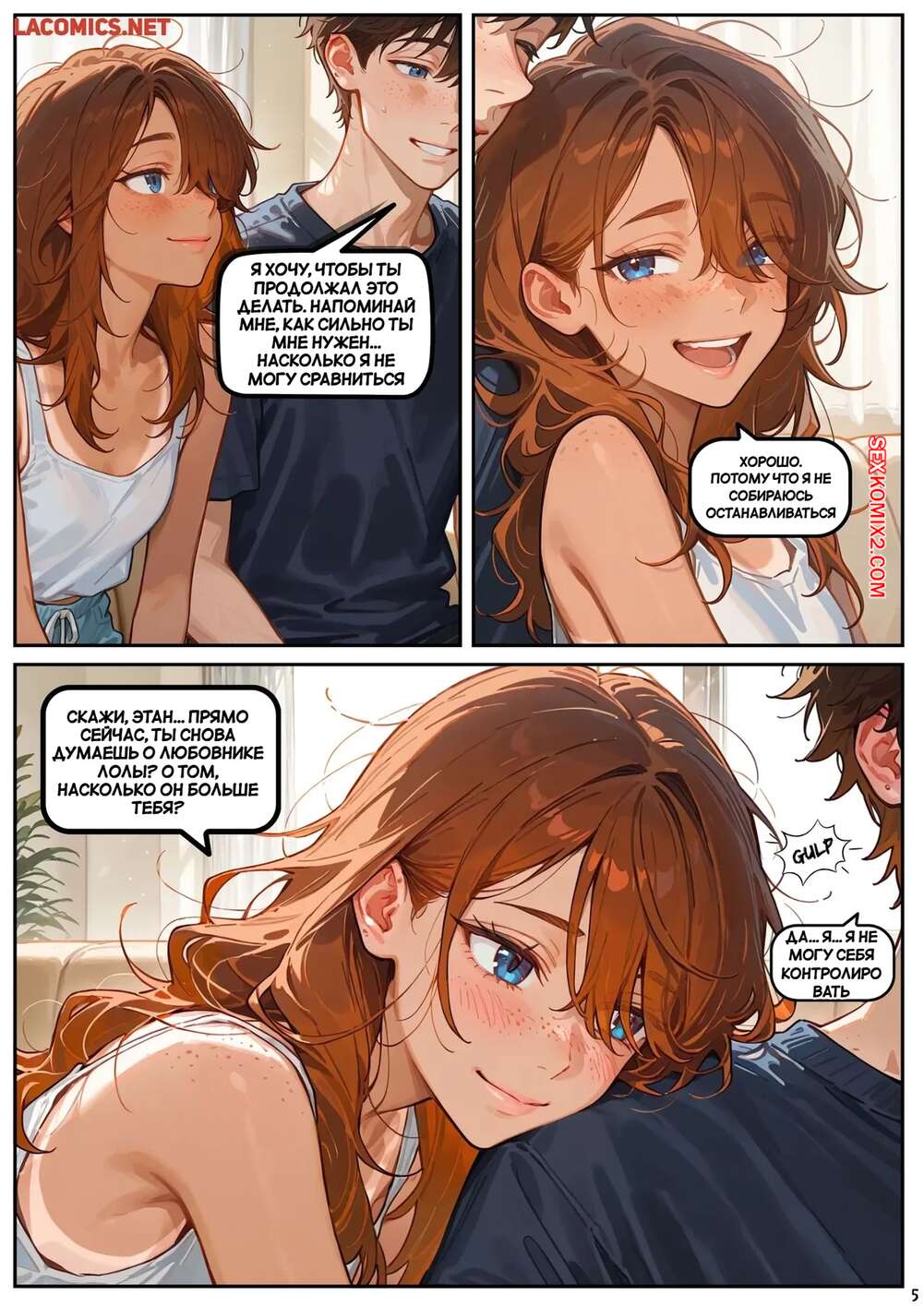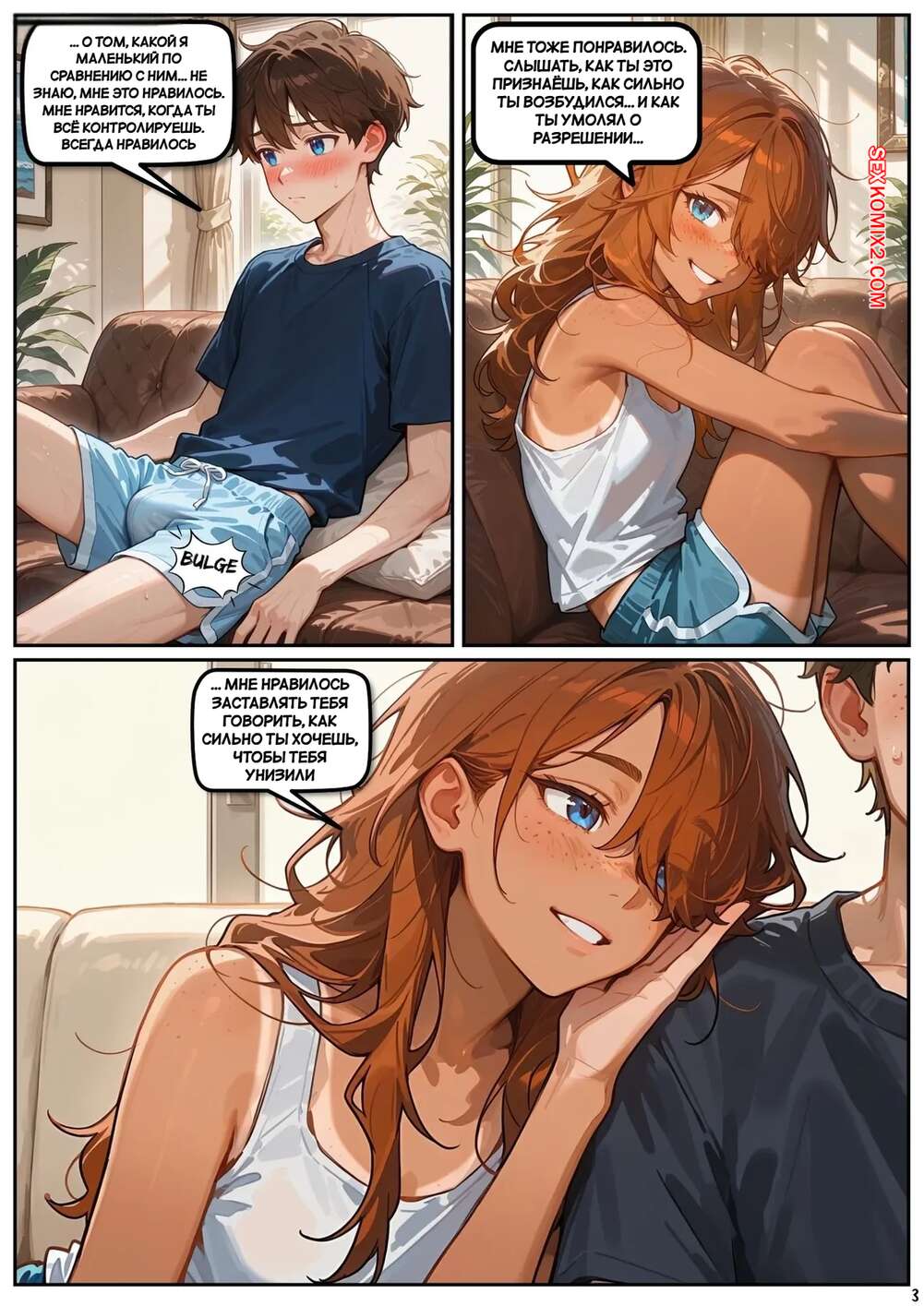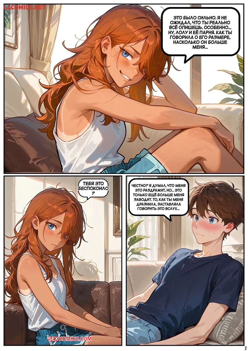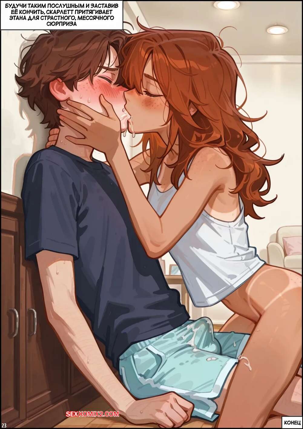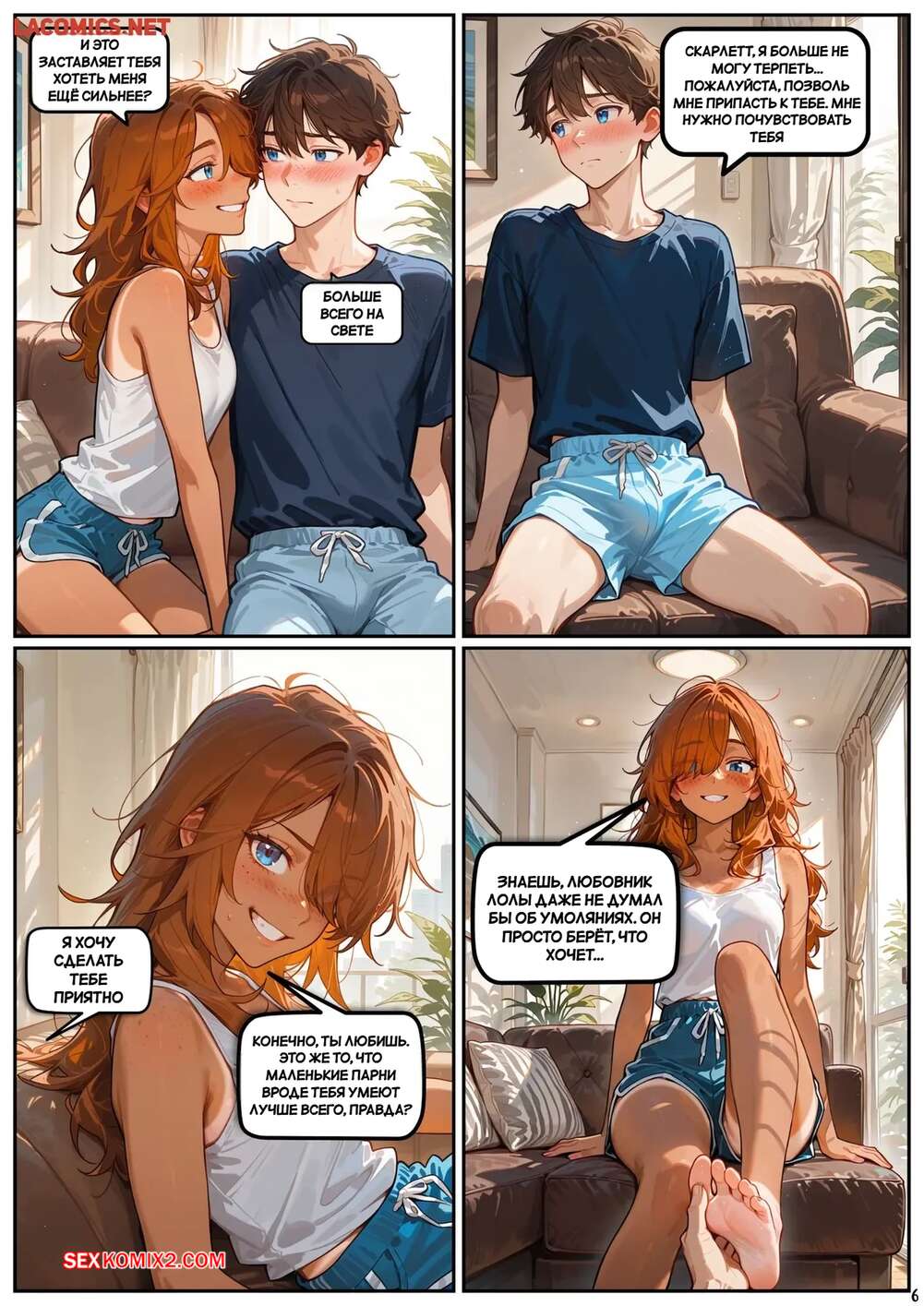 Порно комикс Скарлет Блейз. Часть 6. Маленькие удовольствия большие фантазии Рыжая малышка позвала к себе домой своего дружка и стала его соблазнять своими разговорчиками. Девушка стала массировать ножками хуй парня, после чего села ему на лицо и кончила от его язычка.