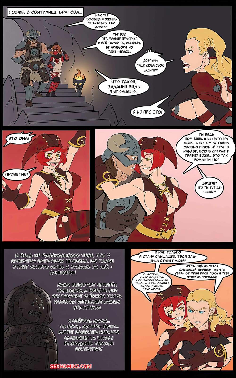 Порно комикс Драконорожденный и Тёмное Братство. Dragonbord and Dark Brotherhood. Markydaysaid. в фантастическом мире драконов каждый выживает как умеет, рыцари полагается на свою силу и навыки в бою. Но для сексуальных красоток достаточно всех побеждать своей красотой и обворожительной фигурой.