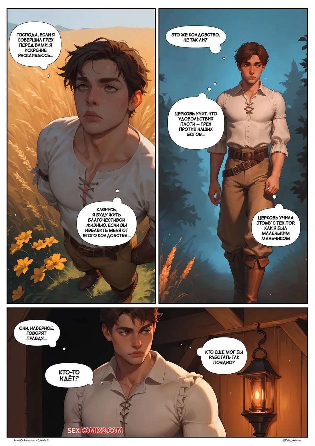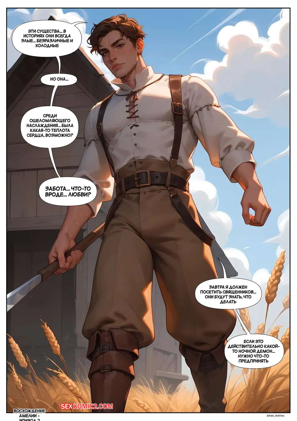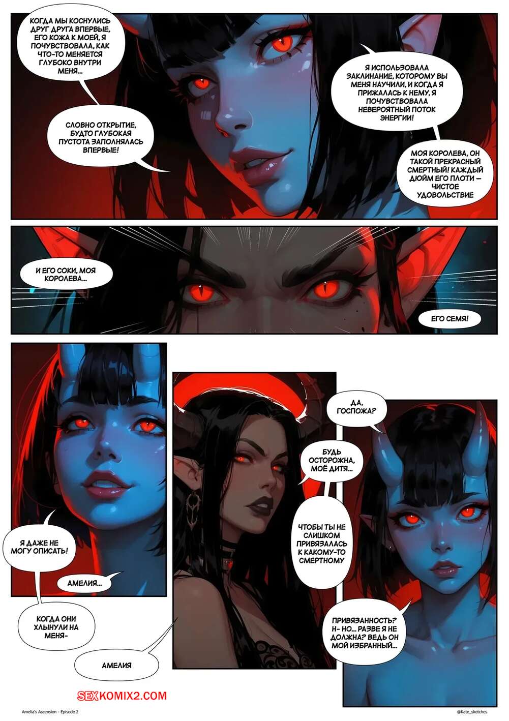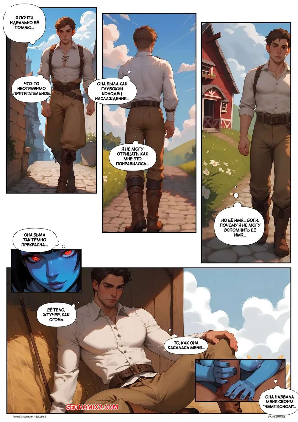 Порно комикс Восхождение Амелии. Часть 2. Amelias Ascension. Kate Sketches Парень проснулся с каменным стояком и отправился к своей рыжей подруге, чтобы она помогла ему расслабиться. Красотка раздвинула ножки и показала свою влажную пизденку, после чего позволила парню себя выебать.