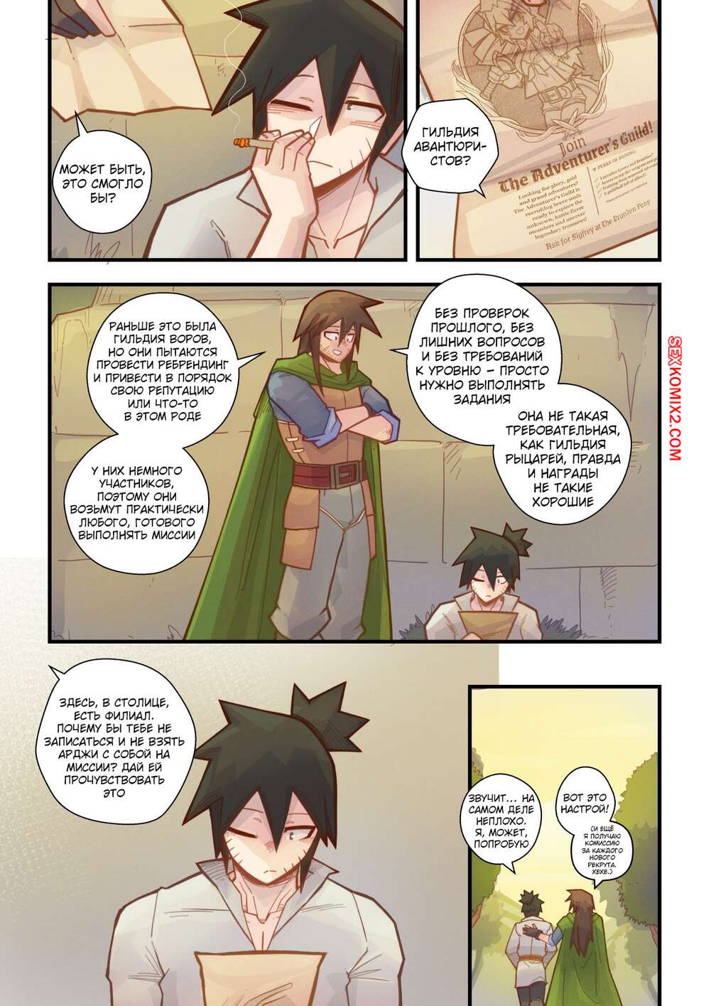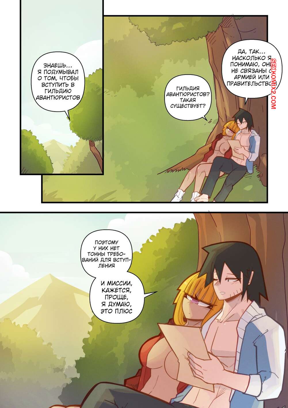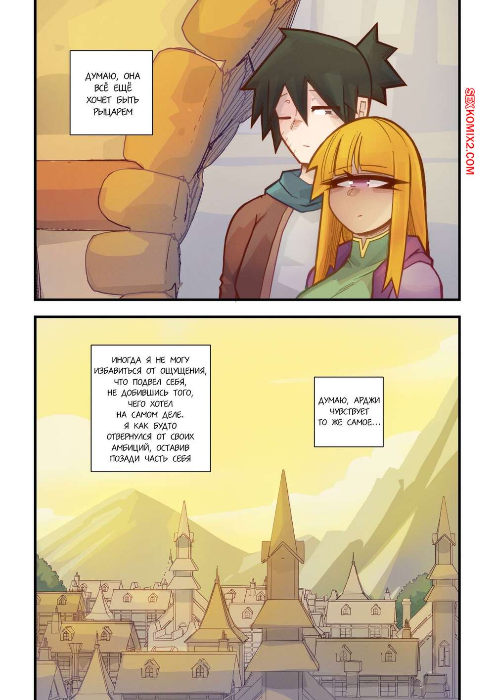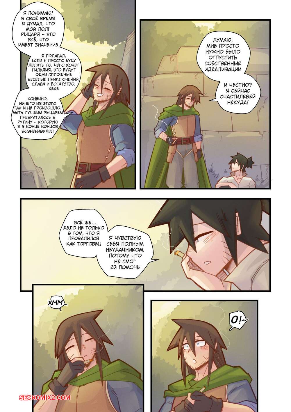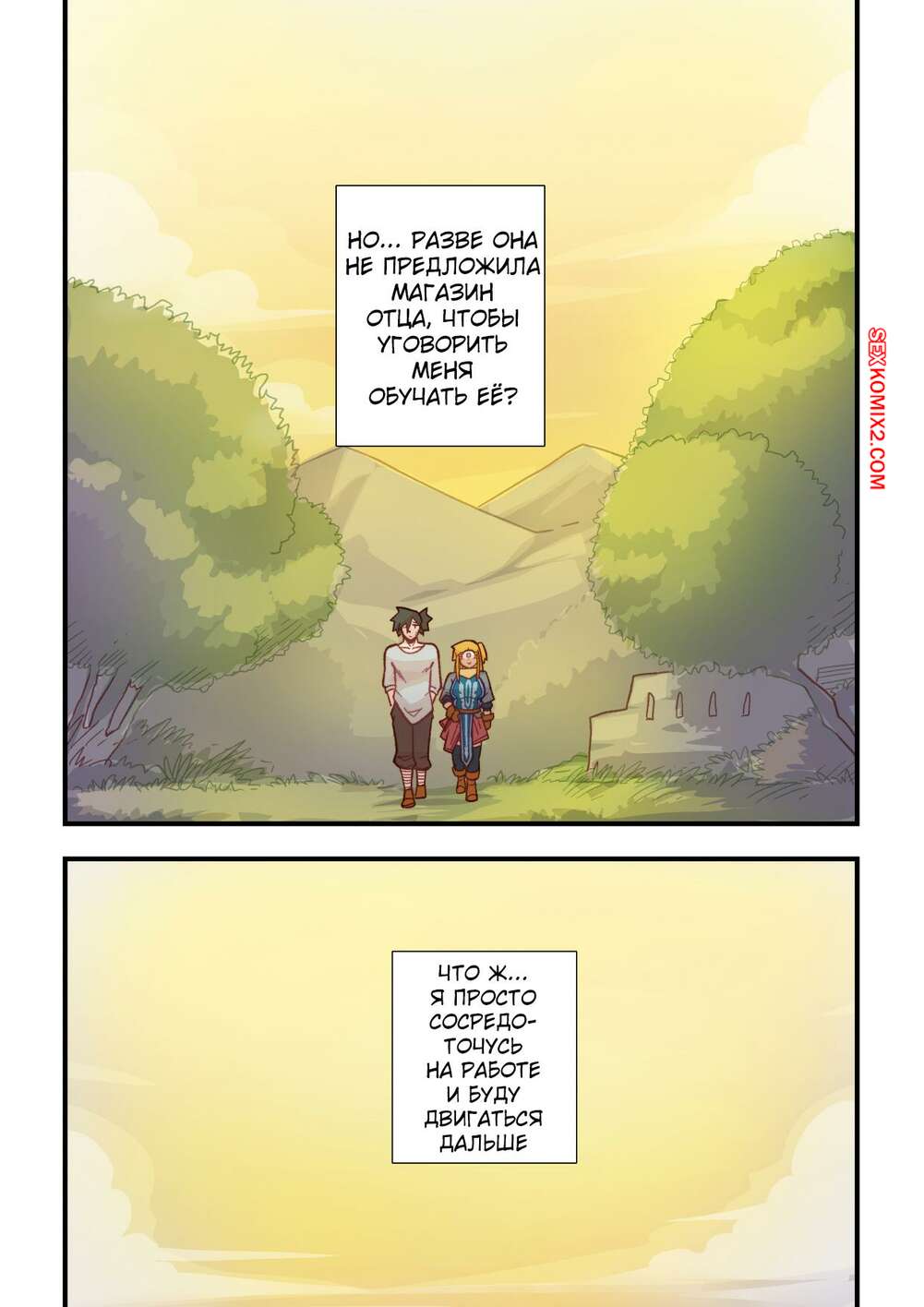 Порно комикс Ванильная фантазия. Часть 5. Vanilla Fantasy. Mr.E. В своих странствиях парень познакомился с одноглазой девушкой, она стала его оруженосцем. Со временем он влюбился в нее, после жаркой ночи секса они стали парой.