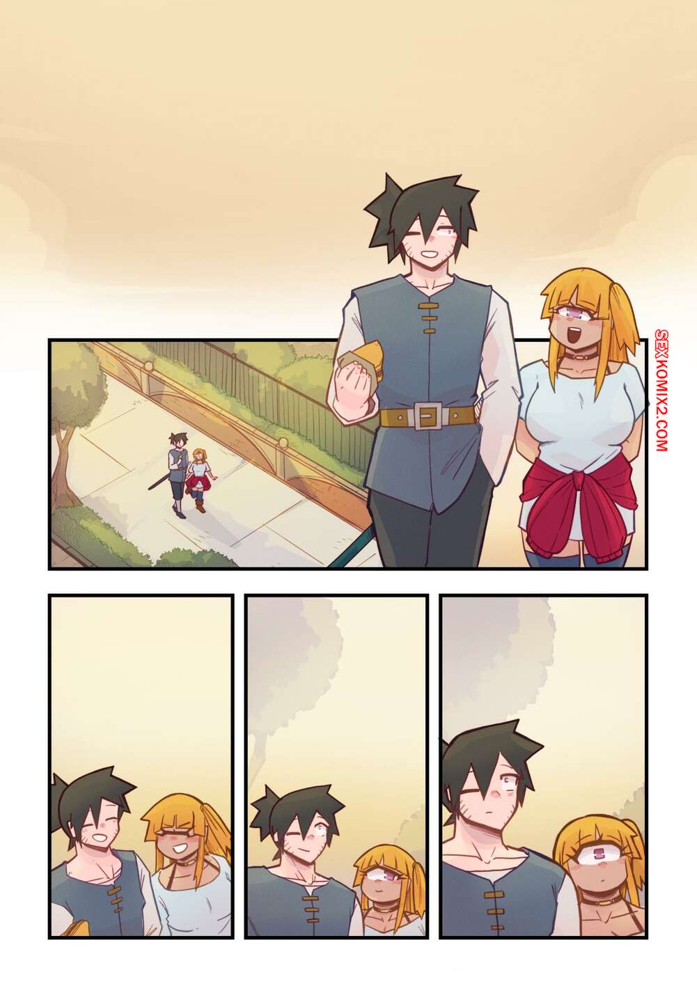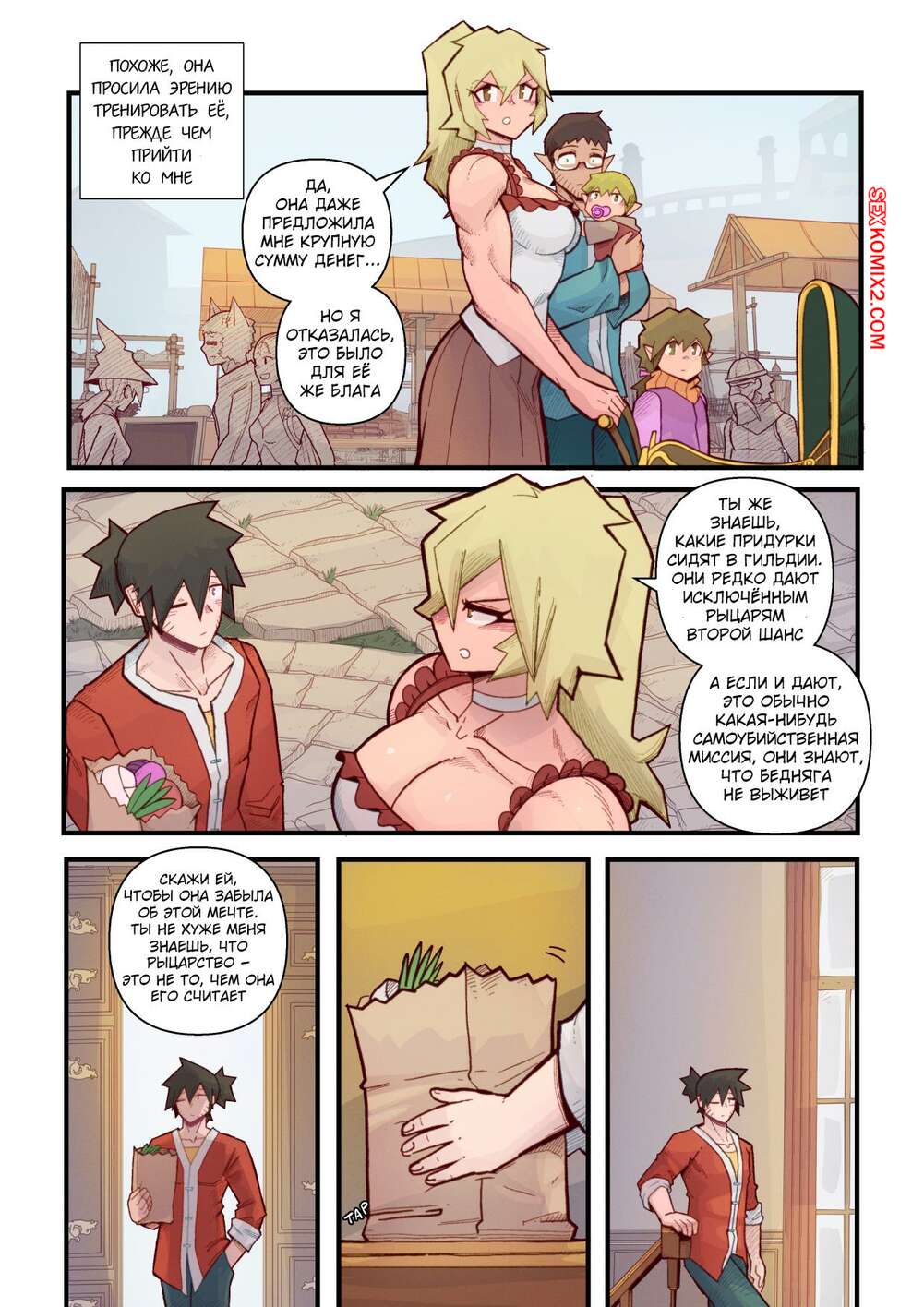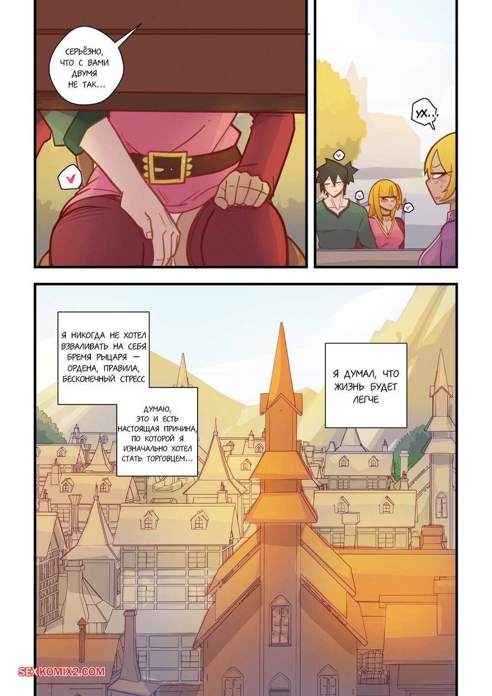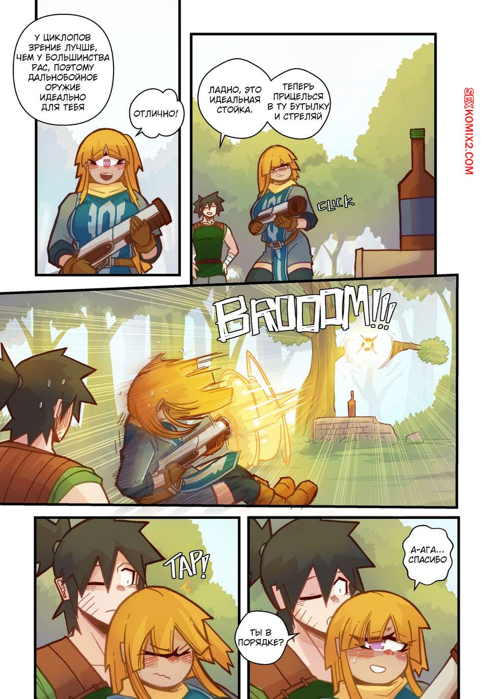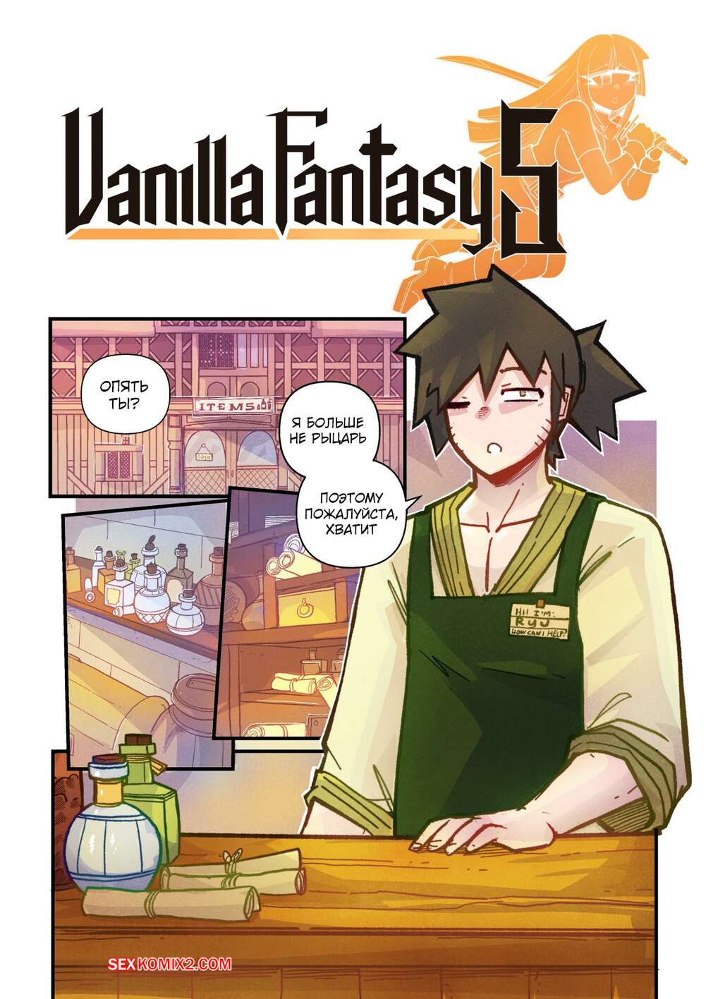 Порно комикс Ванильная фантазия. Часть 5. Vanilla Fantasy. Mr.E. В своих странствиях парень познакомился с одноглазой девушкой, она стала его оруженосцем. Со временем он влюбился в нее, после жаркой ночи секса они стали парой.