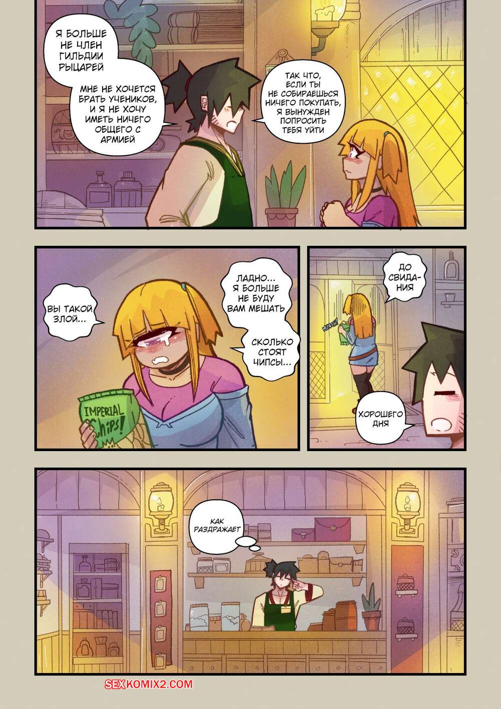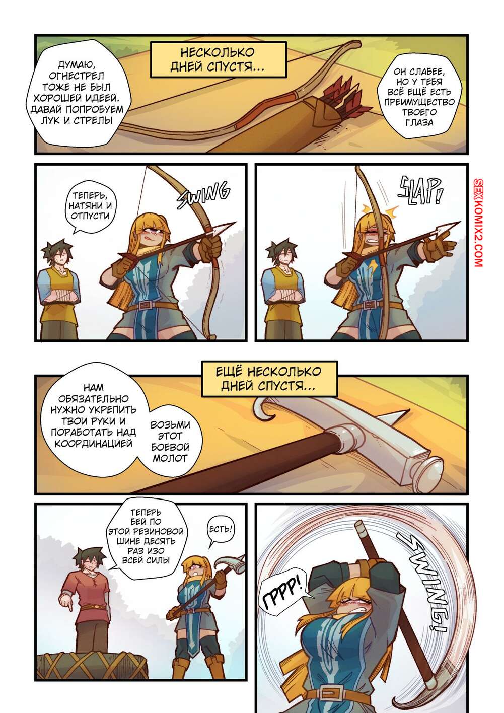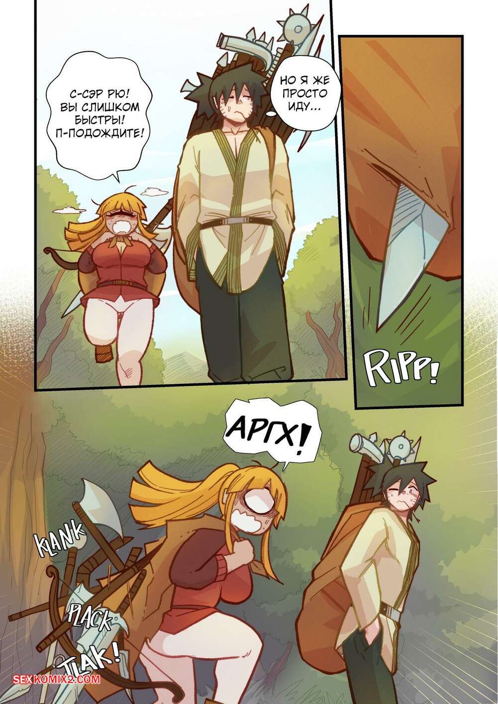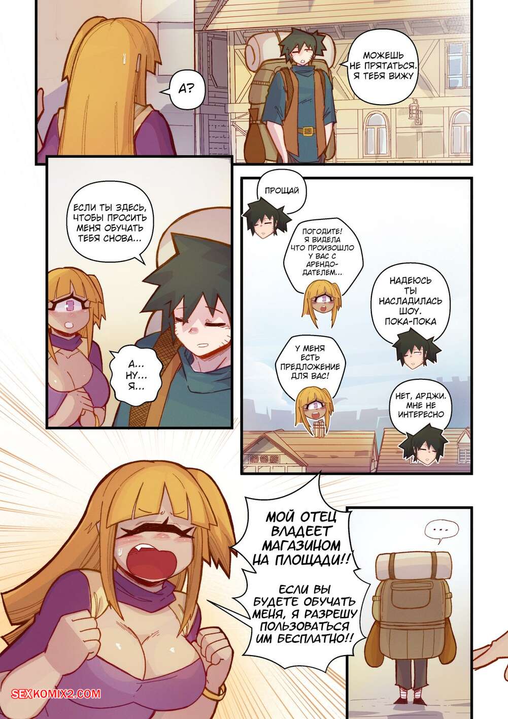 Порно комикс Ванильная фантазия. Часть 5. Vanilla Fantasy. Mr.E. В своих странствиях парень познакомился с одноглазой девушкой, она стала его оруженосцем. Со временем он влюбился в нее, после жаркой ночи секса они стали парой.
