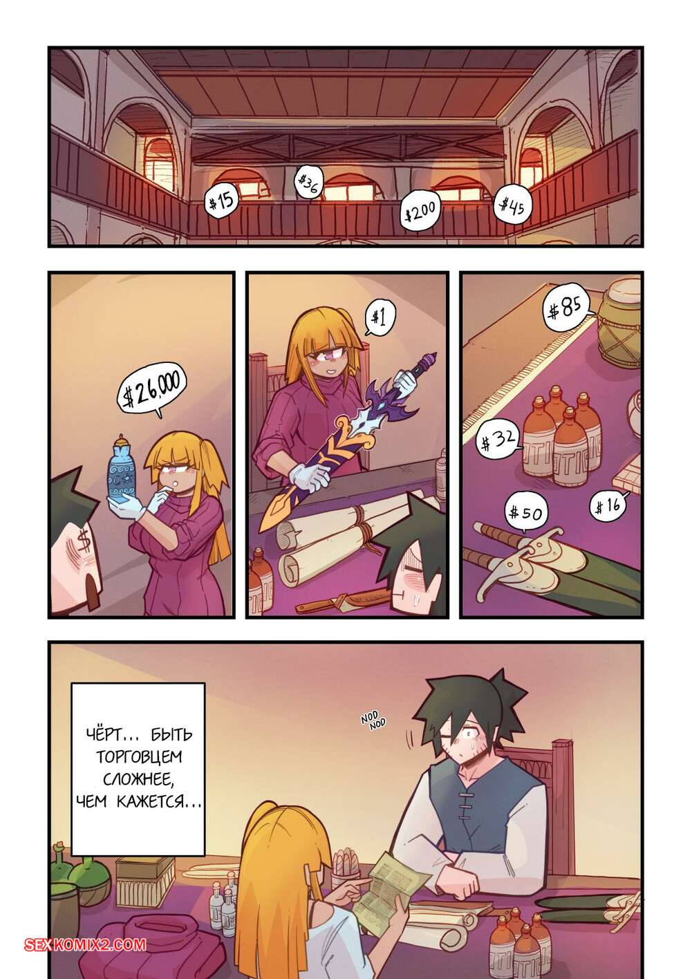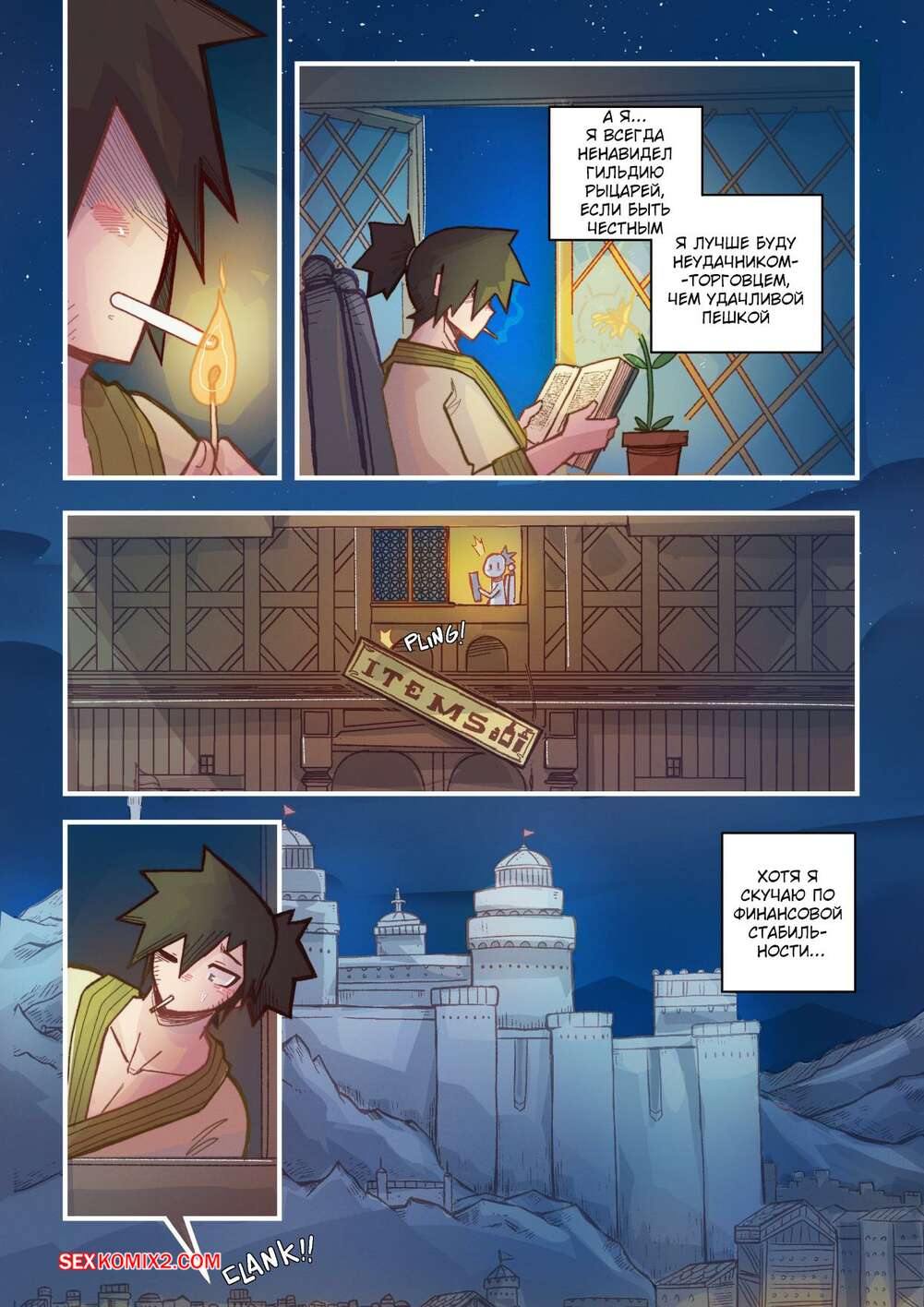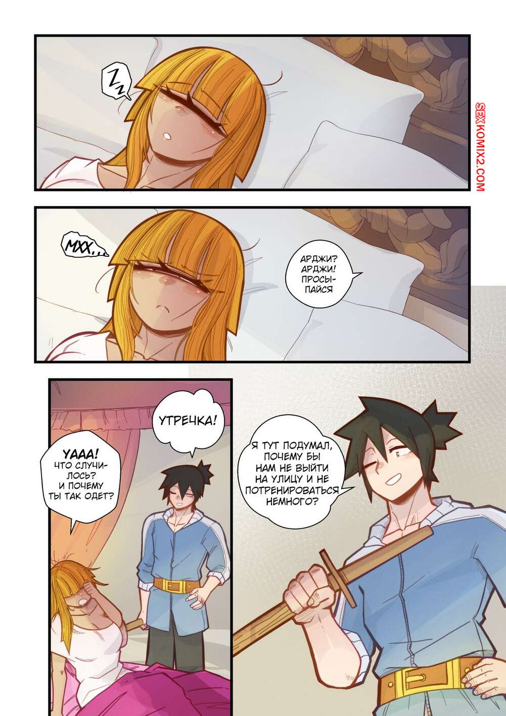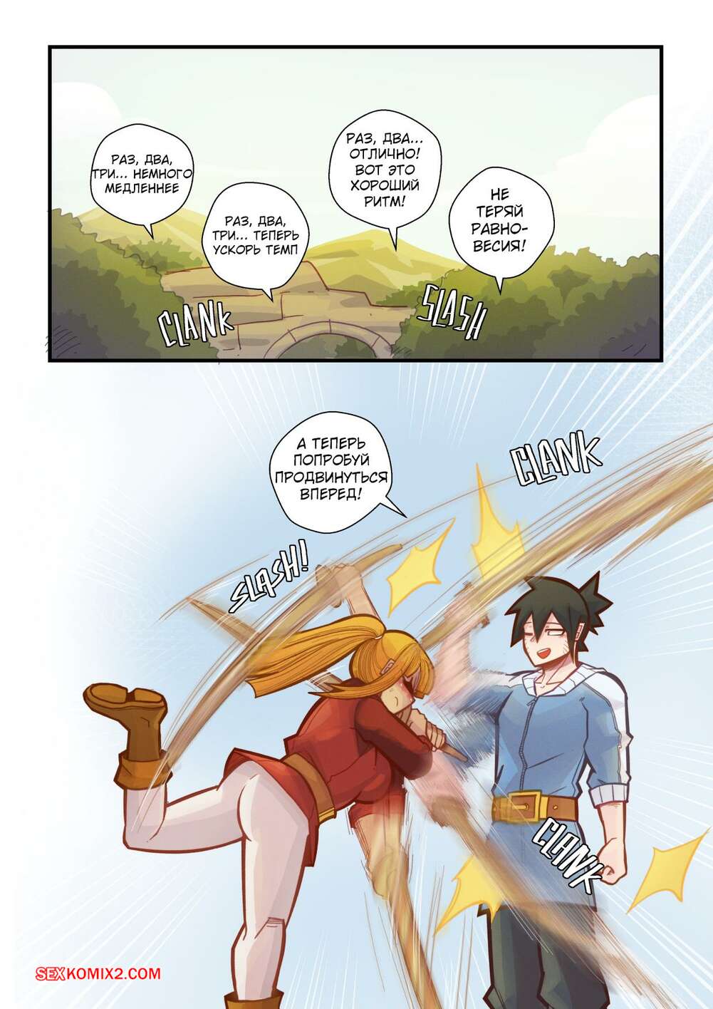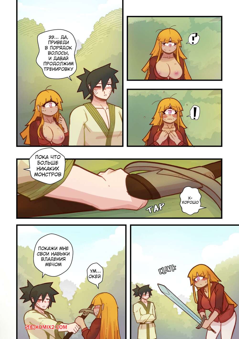 Порно комикс Ванильная фантазия. Часть 5. Vanilla Fantasy. Mr.E. В своих странствиях парень познакомился с одноглазой девушкой, она стала его оруженосцем. Со временем он влюбился в нее, после жаркой ночи секса они стали парой.