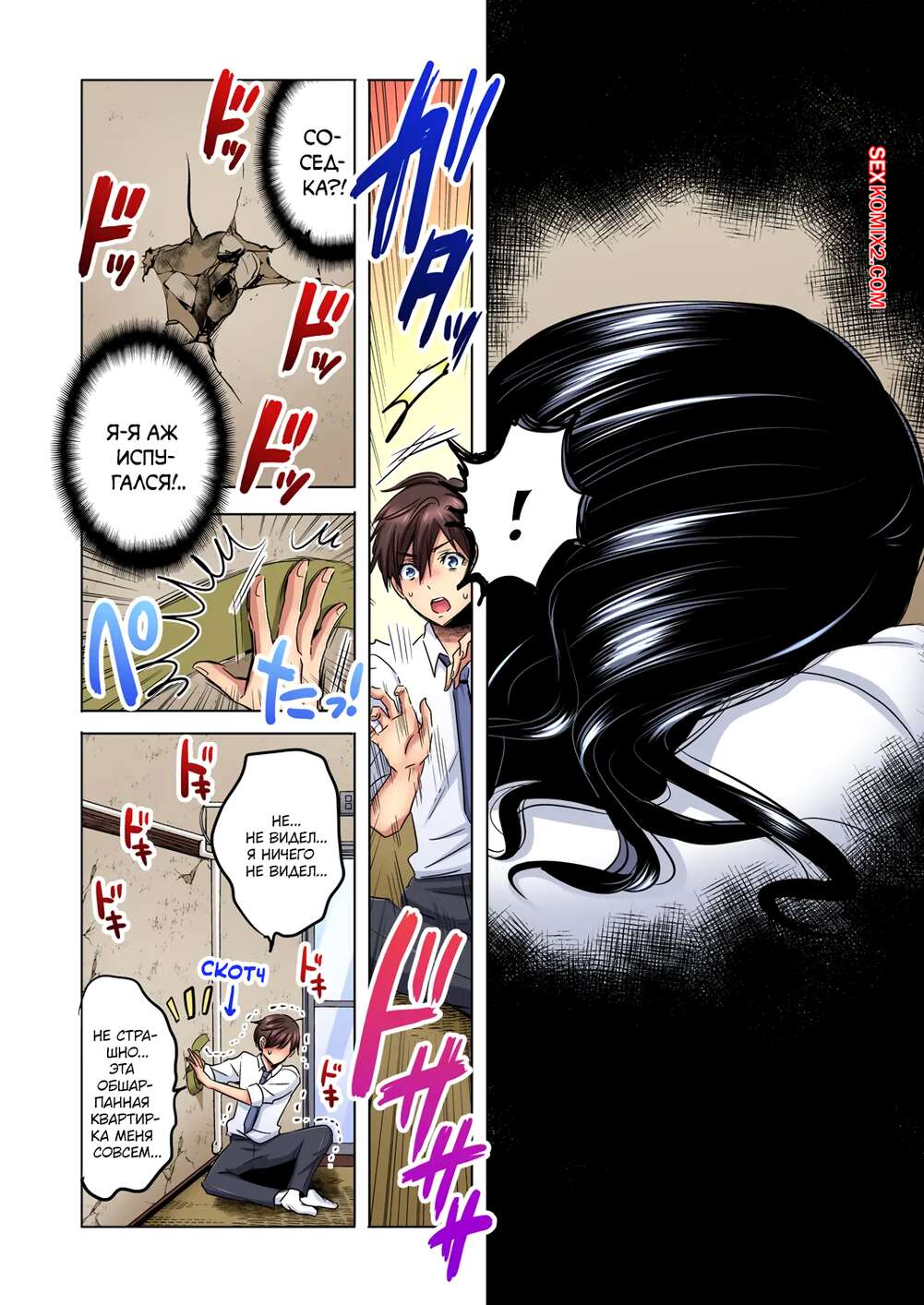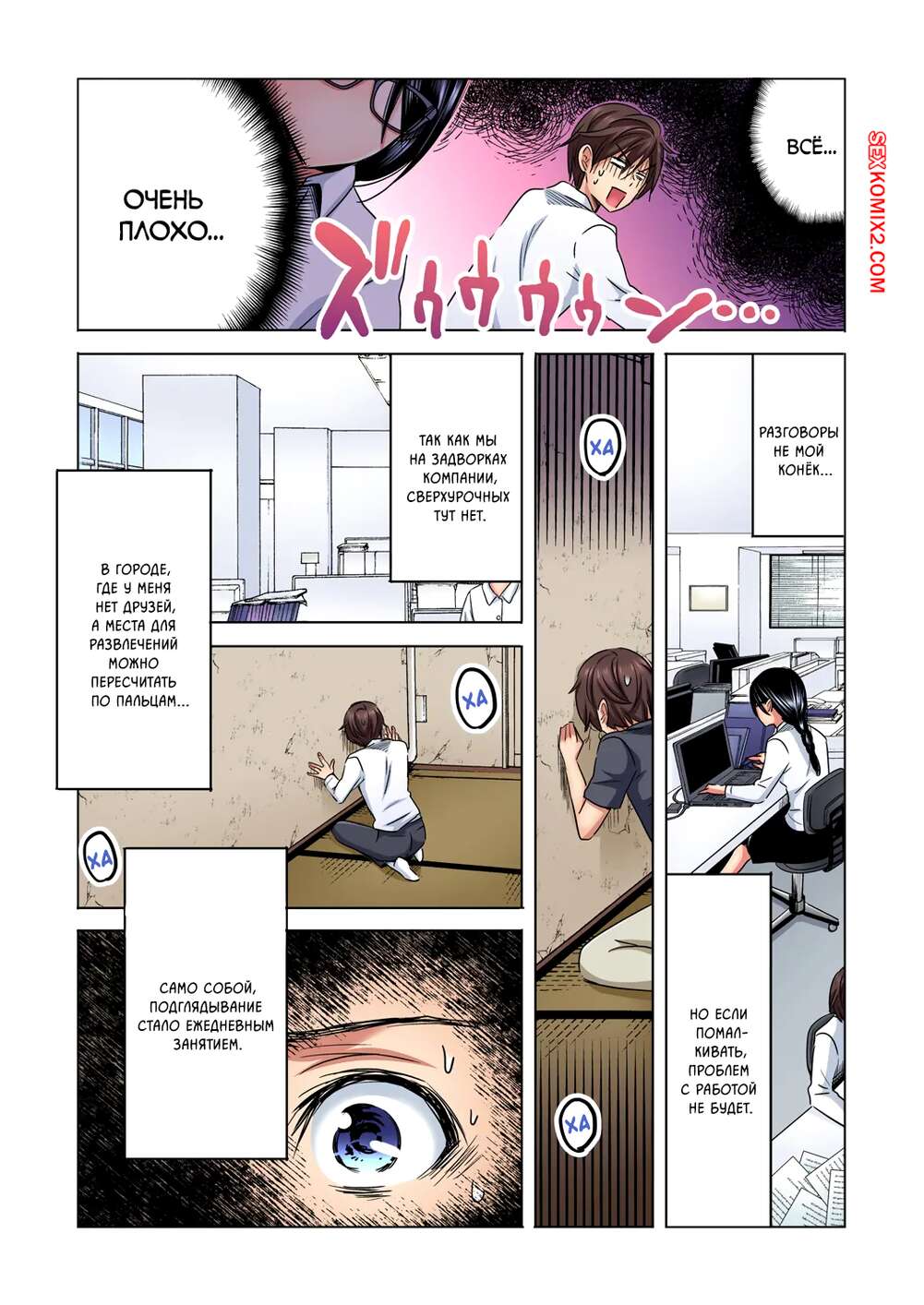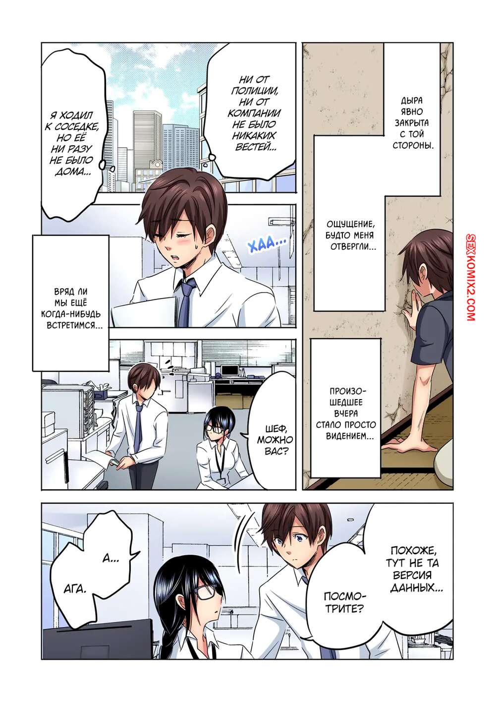 Порно комикс Шеф сделай мне приятно. Моя невзрачная соседка просто потрясающая. Sakura Syoji. Парень устроился на новую работу в офисе, но офис в очень старом здании, стены буквально разваливаются. От стены в его кабинете отвалился кусок и он увидел голую женщину и соседнего помещения.